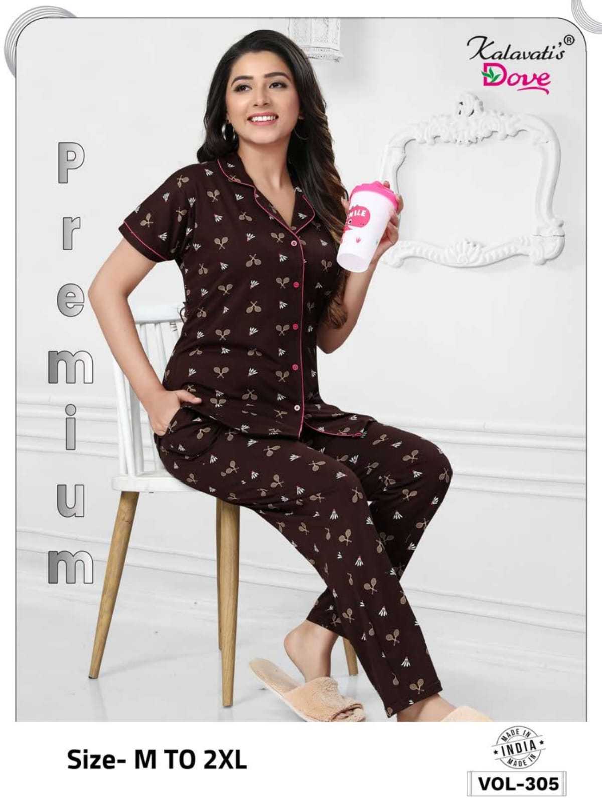 Looking for premium vol 305 by kalavati dove new lunch readymade night wear Full Catalouge at Best Price? Buy Now premium vol 305 by kalavati dove new lunch readymade night wear at Wholesale Rate of Rs 11520 with Total 24 Pcs from authroized dealer and supplier of Kalavatis Brand. Cost of Each piece is just only Rs 480 which is very low and affordable price to resale the product in your retail store. rrgandhi is Surat based Wholesale Supplier & Dealer of Kalavatis Brand. Click on Brand name to Know more about Brand's products.