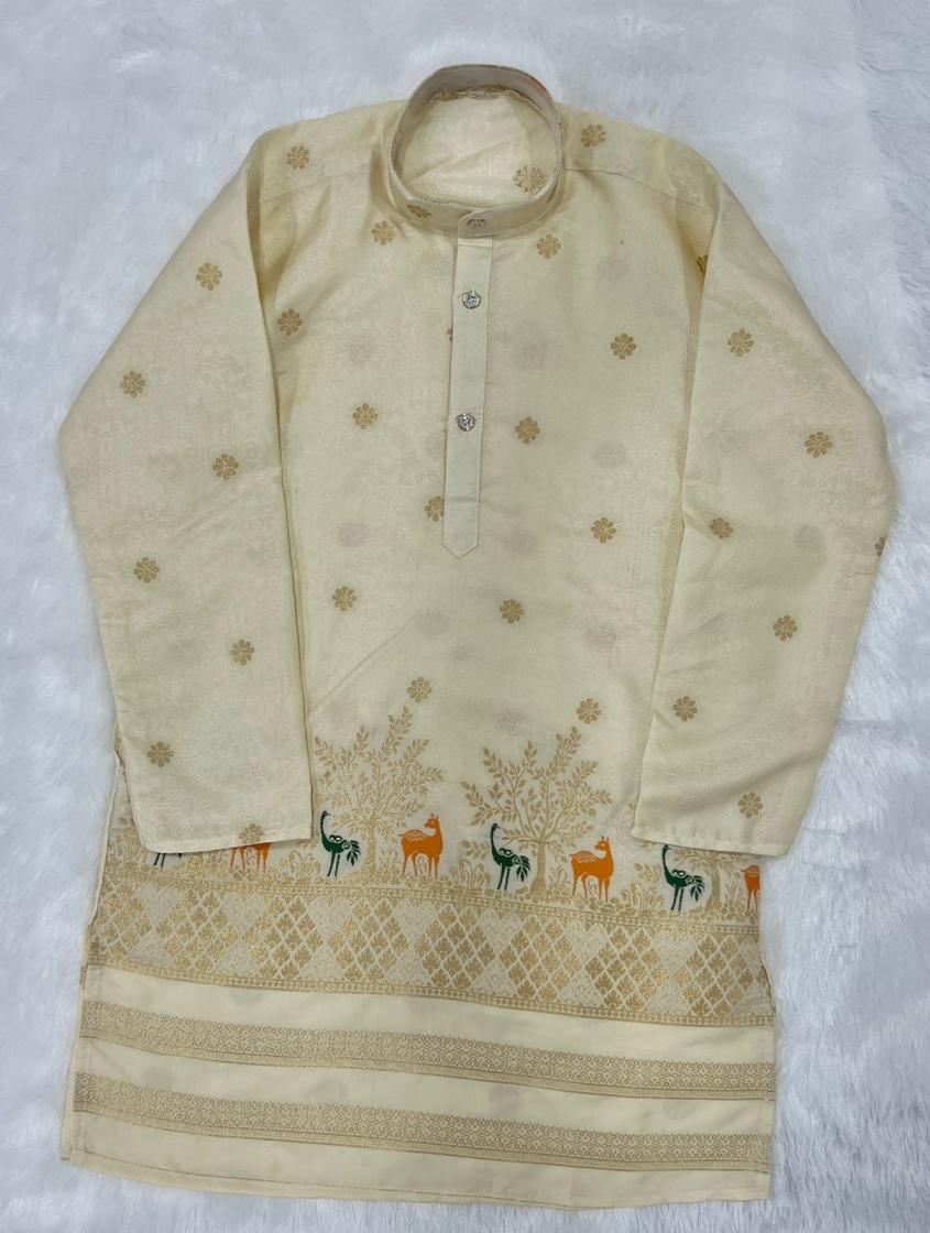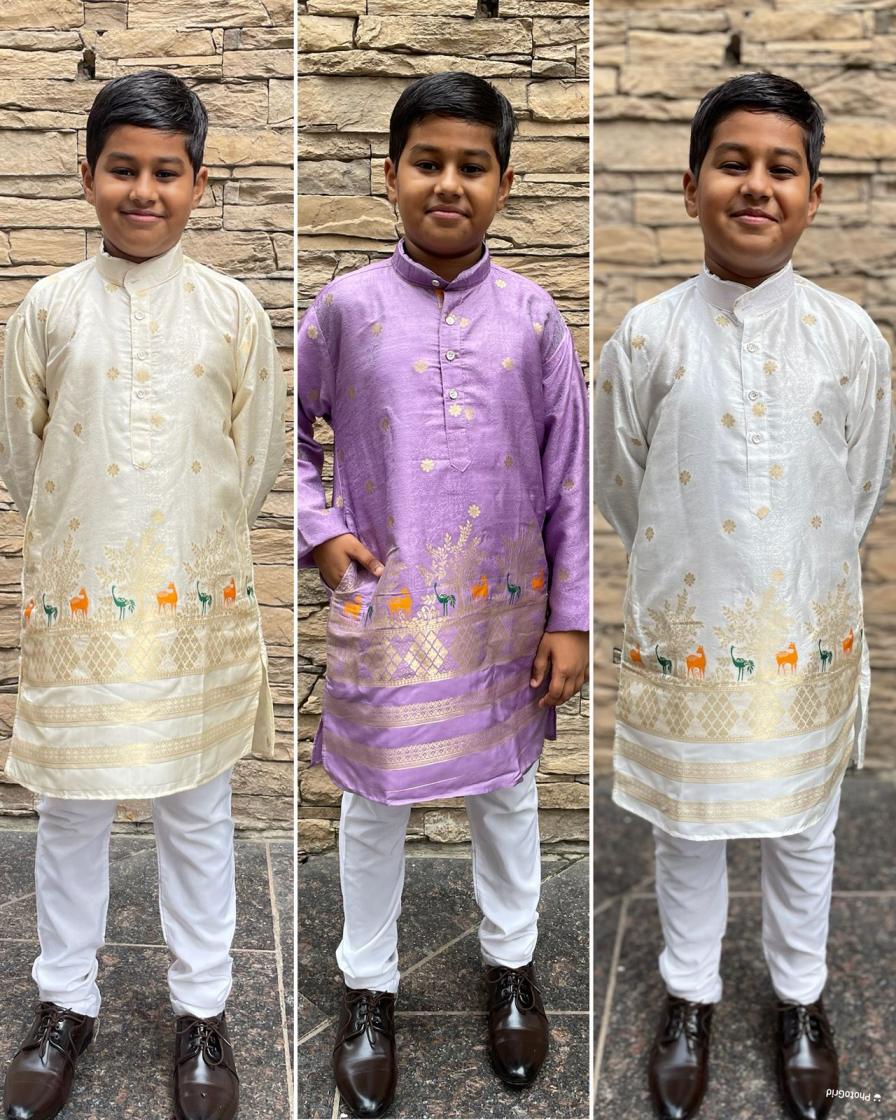 Looking for PRINCE VOL 2 SILK WITH JACQUARD STYLISH READYMADE KIDS KURTA PAJAMA ONLINE Full Catalouge at Best Price? Buy Now PRINCE VOL 2 SILK WITH JACQUARD STYLISH READYMADE KIDS KURTA PAJAMA ONLINE at Wholesale Rate of Rs 2010 with Total 3 Pcs from authroized dealer and supplier of P R Clothing Brand. Cost of Each piece is just only Rs 670 which is very low and affordable price to resale the product in your retail store. rrgandhi is Surat based Wholesale Supplier & Dealer of P R Clothing Brand. Click on Brand name to Know more about Brand's products.