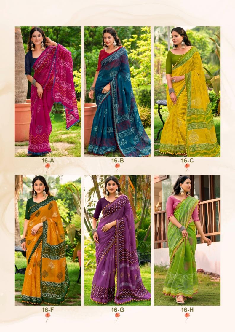 Looking for PUM PUM VOL 16 BY SR MUL MUL COTTON PRETTY LOOK SAREE Full Catalouge at Best Price? Buy Now PUM PUM VOL 16 BY SR MUL MUL COTTON PRETTY LOOK SAREE at Wholesale Rate of Rs 5500 with Total 10 Pcs from authroized dealer and supplier of SR Sarees Brand. Cost of Each piece is just only Rs 550 which is very low and affordable price to resale the product in your retail store. rrgandhi is Surat based Wholesale Supplier & Dealer of SR Sarees Brand. Click on Brand name to Know more about Brand's products.