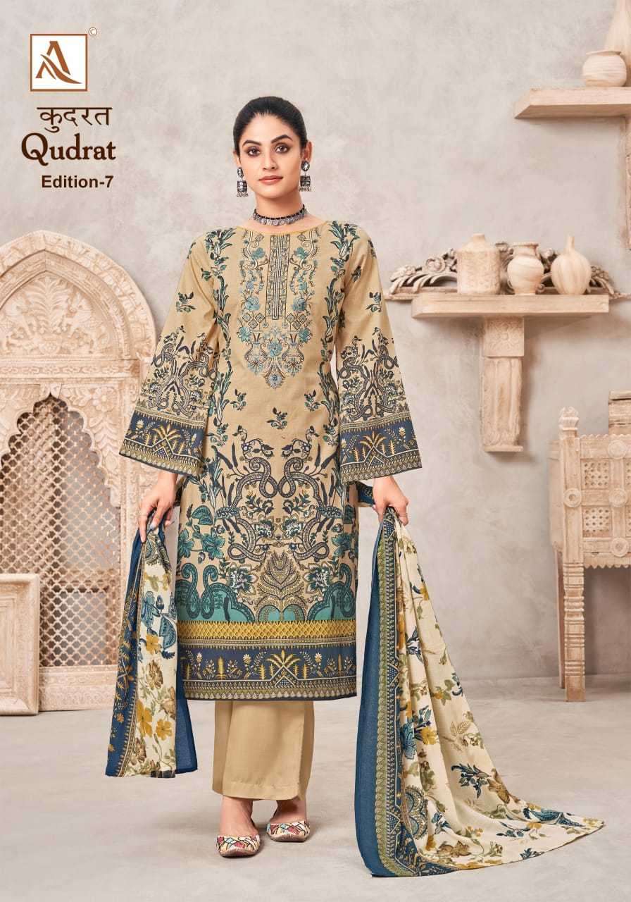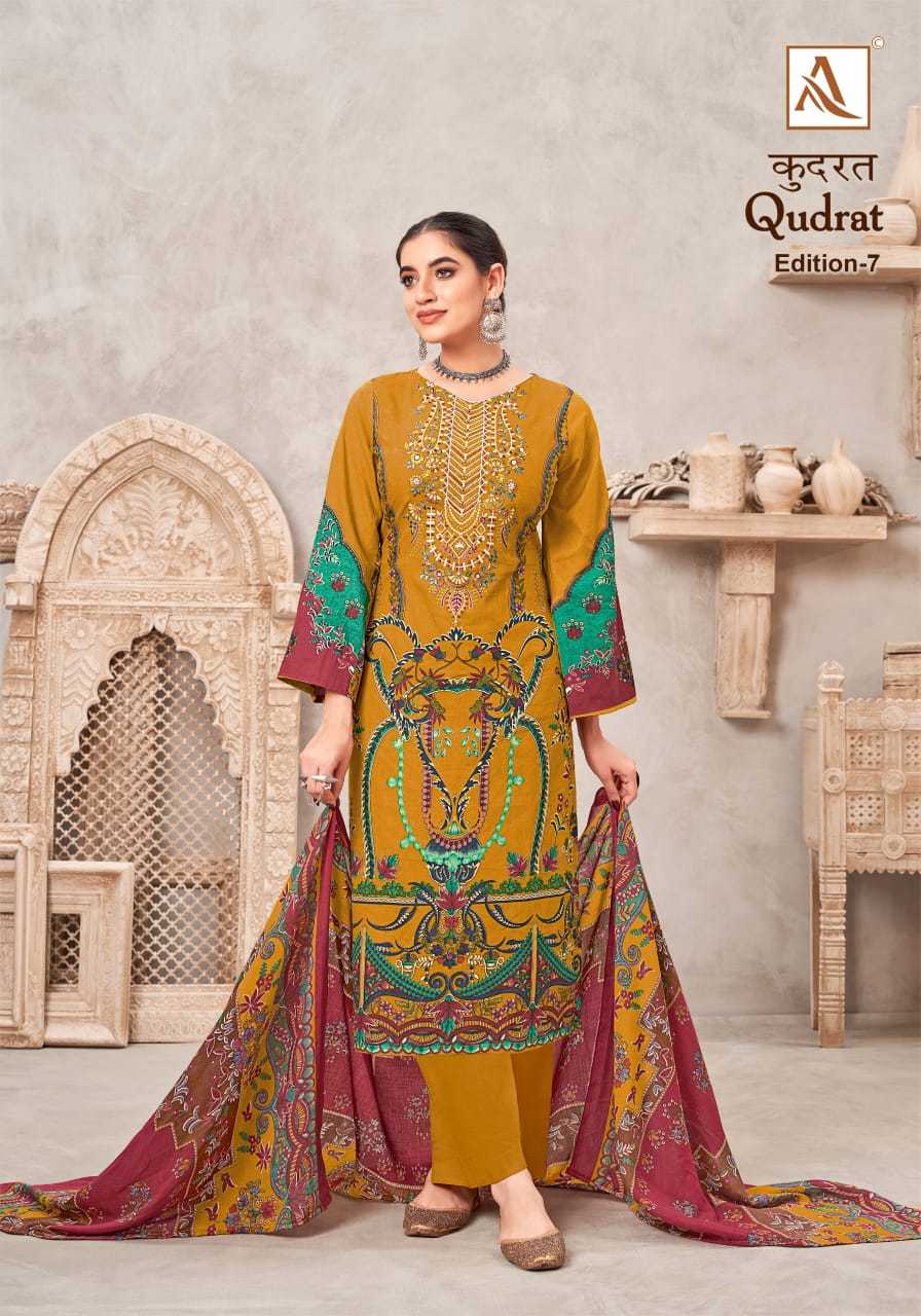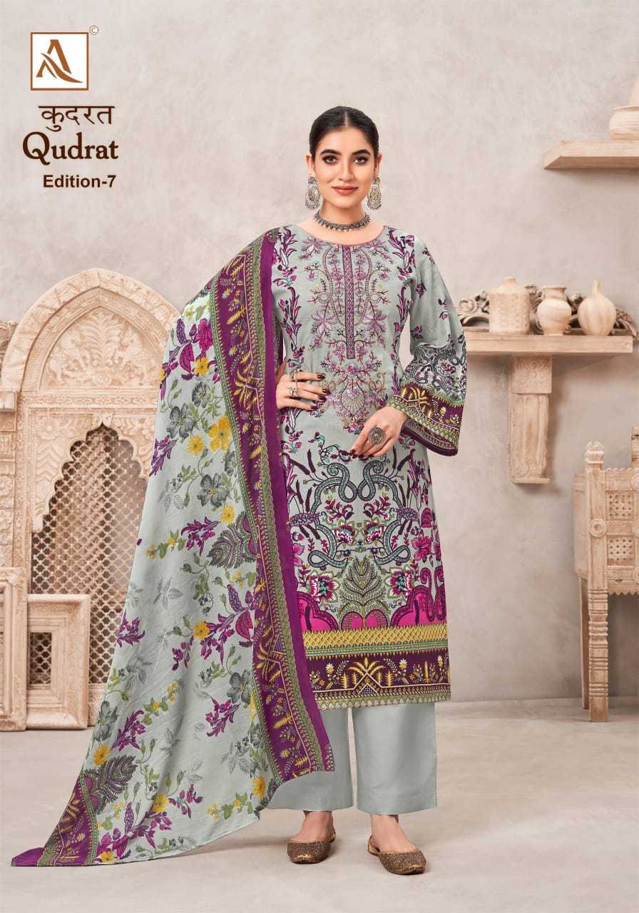 Looking for qudrat vol 7 by alok suit beautiful modern pakistani print salwar suit Full Catalouge at Best Price? Buy Now qudrat vol 7 by alok suit beautiful modern pakistani print salwar suit at Wholesale Rate of Rs 4720 with Total 8 Pcs from authroized dealer and supplier of Alok Suit Brand. Cost of Each piece is just only Rs 590 which is very low and affordable price to resale the product in your retail store. rrgandhi is Surat based Wholesale Supplier & Dealer of Alok Suit Brand. Click on Brand name to Know more about Brand's products.