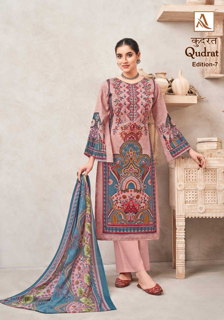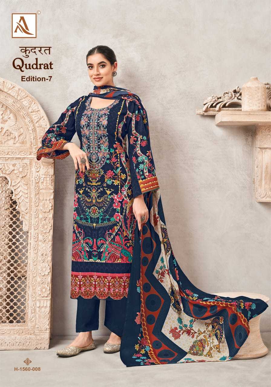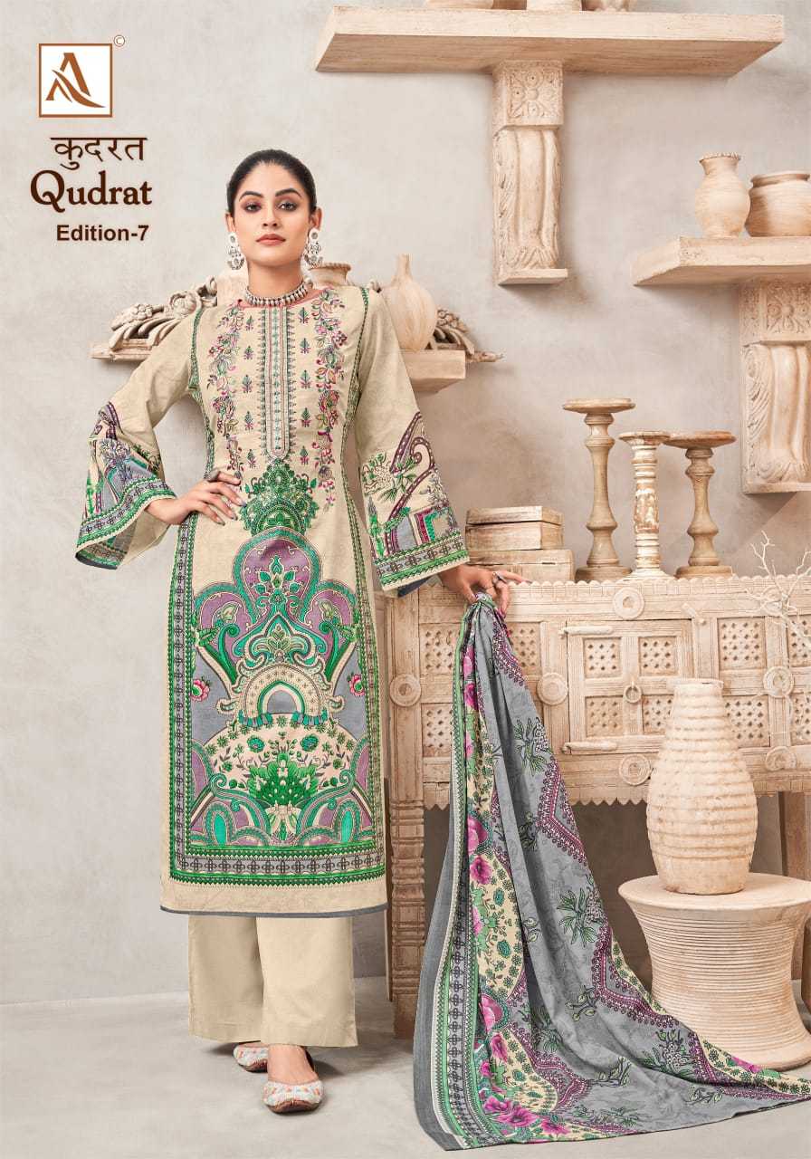 Looking for qudrat vol 7 by alok suit beautiful modern pakistani print salwar suit Full Catalouge at Best Price? Buy Now qudrat vol 7 by alok suit beautiful modern pakistani print salwar suit at Wholesale Rate of Rs 4720 with Total 8 Pcs from authroized dealer and supplier of Alok Suit Brand. Cost of Each piece is just only Rs 590 which is very low and affordable price to resale the product in your retail store. rrgandhi is Surat based Wholesale Supplier & Dealer of Alok Suit Brand. Click on Brand name to Know more about Brand's products.