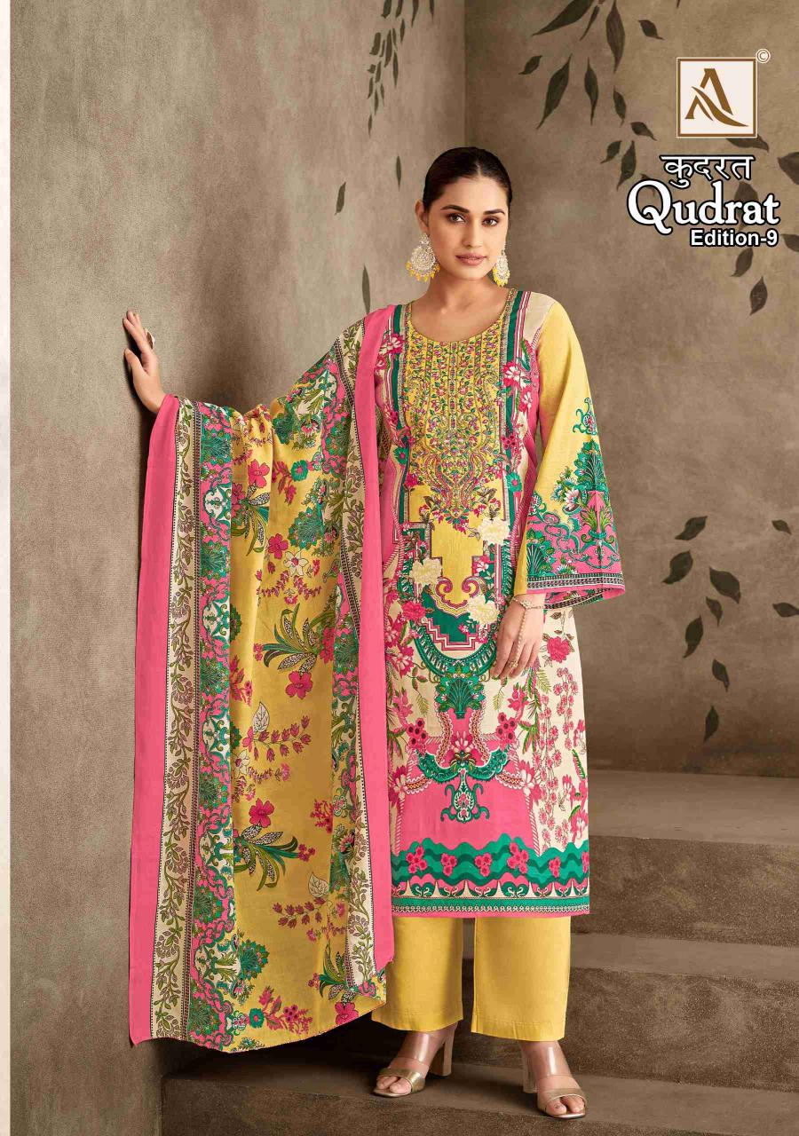 Looking for qudrat vol 9 by alok suit cotton printed fashionable pakistani salwar suits Full Catalouge at Best Price? Buy Now qudrat vol 9 by alok suit cotton printed fashionable pakistani salwar suits at Wholesale Rate of Rs 4720 with Total 8 Pcs from authroized dealer and supplier of Alok Suit Brand. Cost of Each piece is just only Rs 590 which is very low and affordable price to resale the product in your retail store. rrgandhi is Surat based Wholesale Supplier & Dealer of Alok Suit Brand. Click on Brand name to Know more about Brand's products.