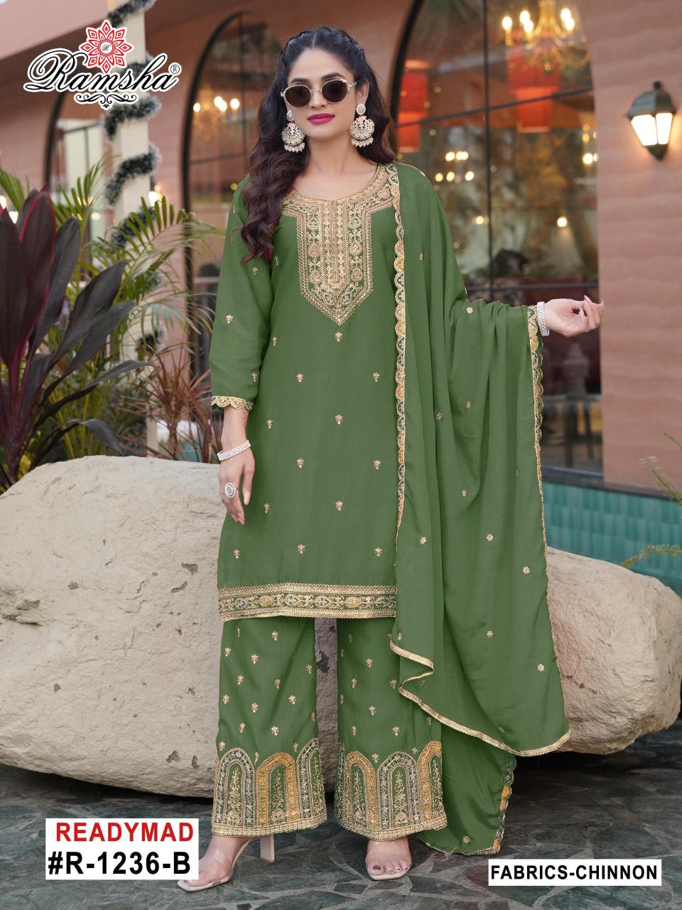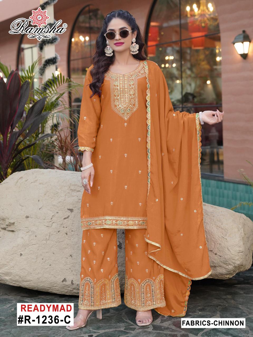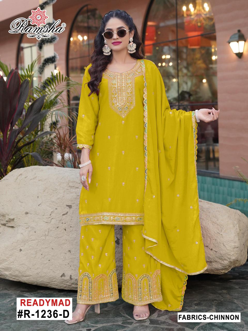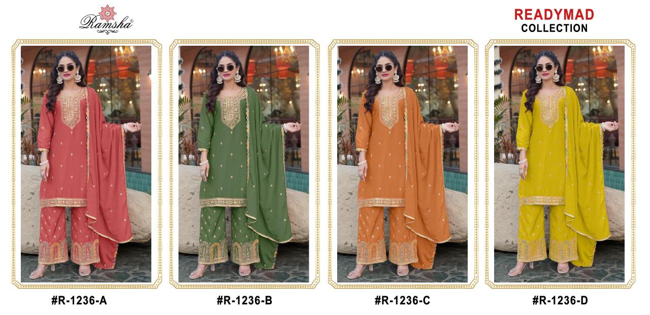 Looking for r 1236 nx by ramsha chinon designer full stitch plazzo 3pcs dress Full Catalouge at Best Price? Buy Now r 1236 nx by ramsha chinon designer full stitch plazzo 3pcs dress at Wholesale Rate of Rs 14000 with Total 8 Pcs from authroized dealer and supplier of Ramsha Brand. Cost of Each piece is just only Rs 1750 which is very low and affordable price to resale the product in your retail store. rrgandhi is Surat based Wholesale Supplier & Dealer of Ramsha Brand. Click on Brand name to Know more about Brand's products.