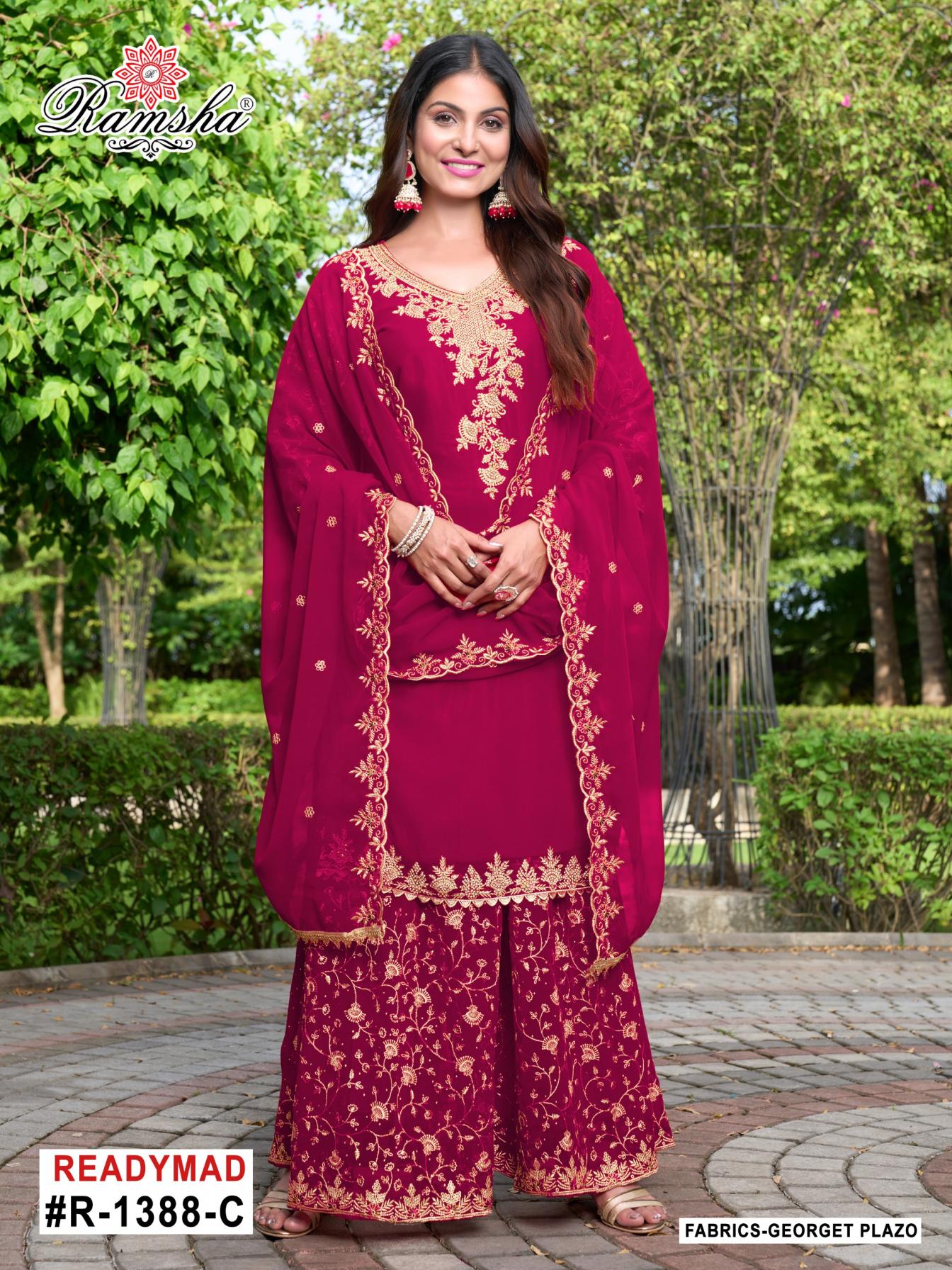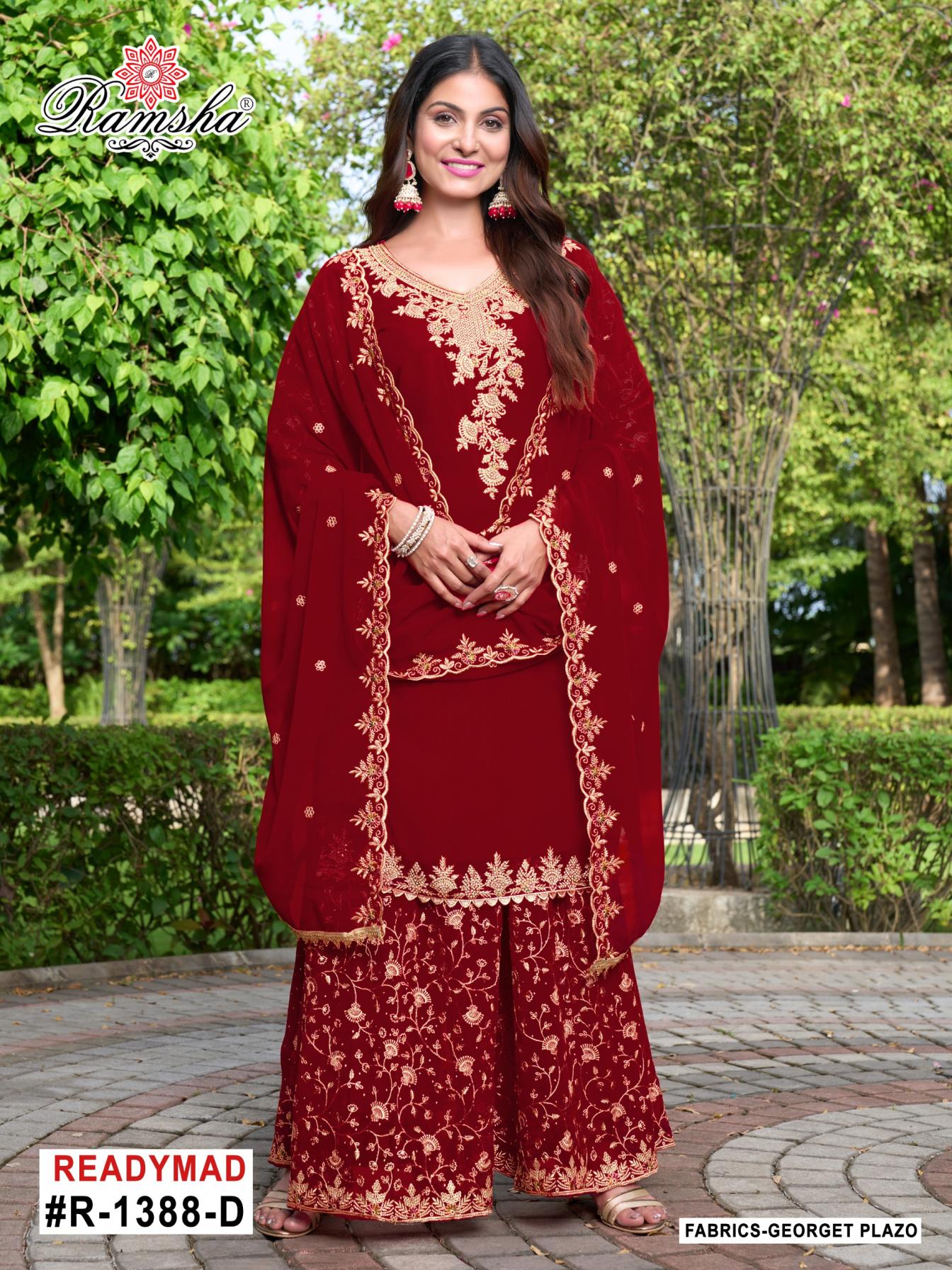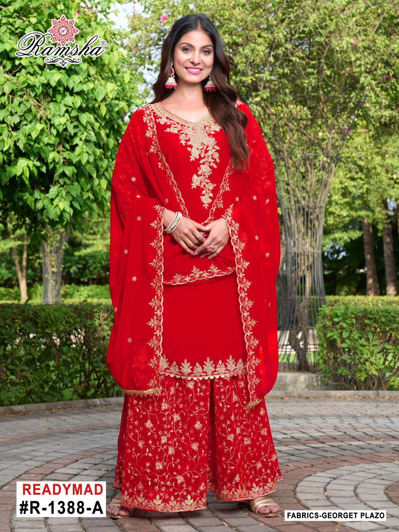 Looking for R 1388 NX BY RAMSHA READYMADE CLASSIC GEORGETTE PAKISTANI PLAZZO SUIT Full Catalouge at Best Price? Buy Now R 1388 NX BY RAMSHA READYMADE CLASSIC GEORGETTE PAKISTANI PLAZZO SUIT at Wholesale Rate of Rs 11600 with Total 8 Pcs from authroized dealer and supplier of Ramsha Brand. Cost of Each piece is just only Rs 1450 which is very low and affordable price to resale the product in your retail store. rrgandhi is Surat based Wholesale Supplier & Dealer of Ramsha Brand. Click on Brand name to Know more about Brand's products.