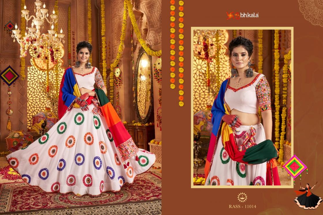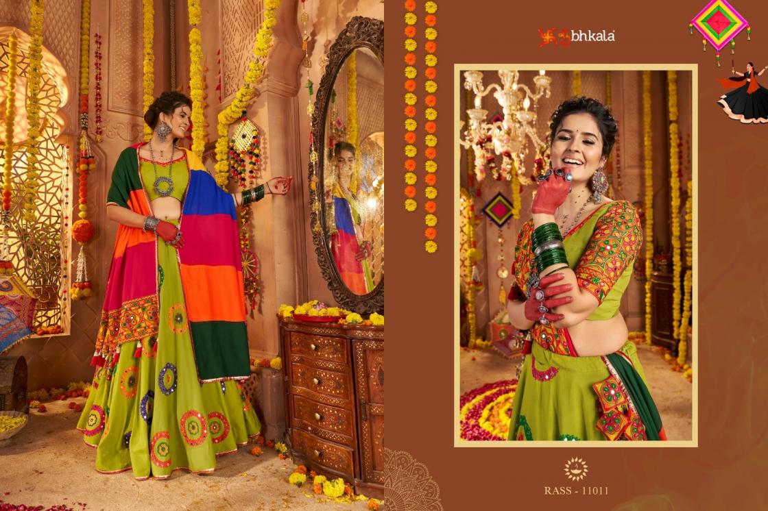Looking for RAAS VOL 20 BY SHUBHKALA FULL STITCH VISCOSE COTTON NAVRATRI LEHENGAS Full Catalouge at Best Price? Buy Now RAAS VOL 20 BY SHUBHKALA FULL STITCH VISCOSE COTTON NAVRATRI LEHENGAS at Wholesale Rate of Rs 13200 with Total 4 Pcs from authroized dealer and supplier of Shubh Kala Brand. Cost of Each piece is just only Rs 3300 which is very low and affordable price to resale the product in your retail store. rrgandhi is Surat based Wholesale Supplier & Dealer of Shubh Kala Brand. Click on Brand name to Know more about Brand's products.