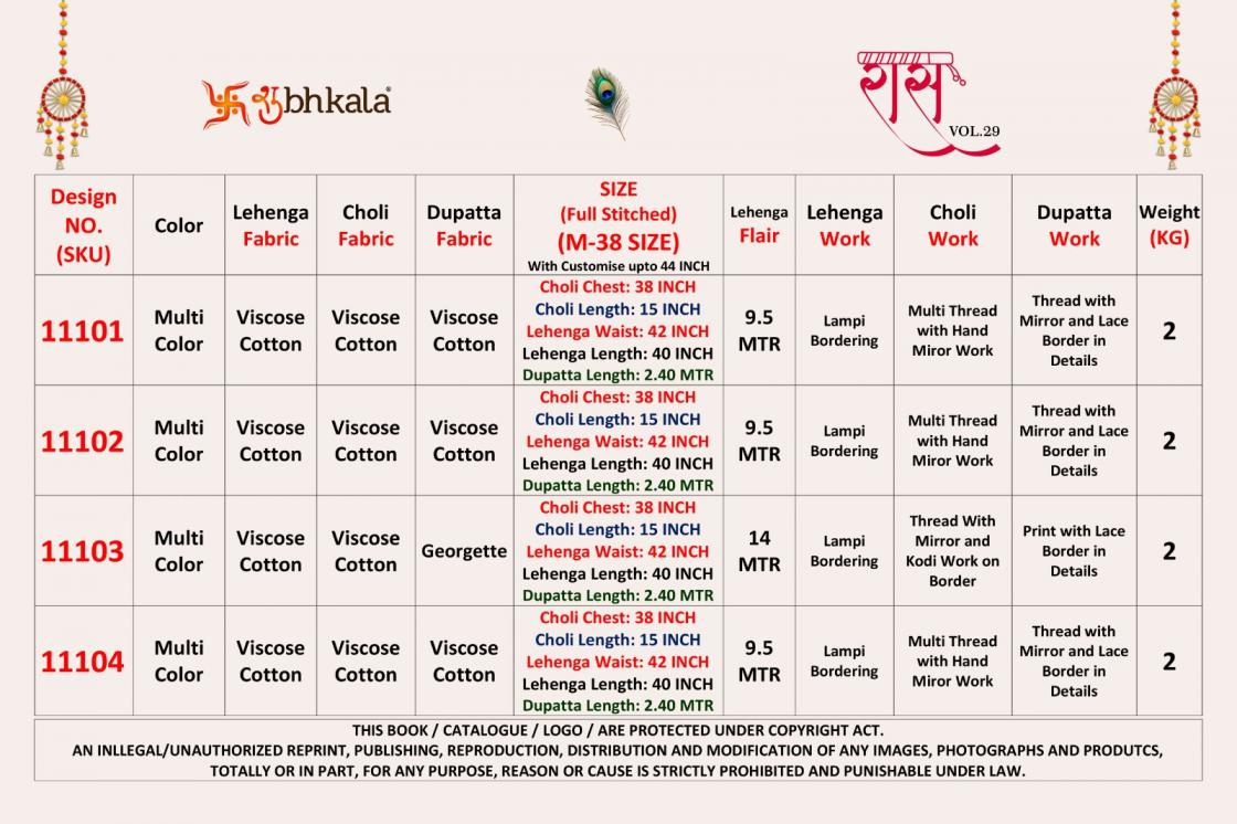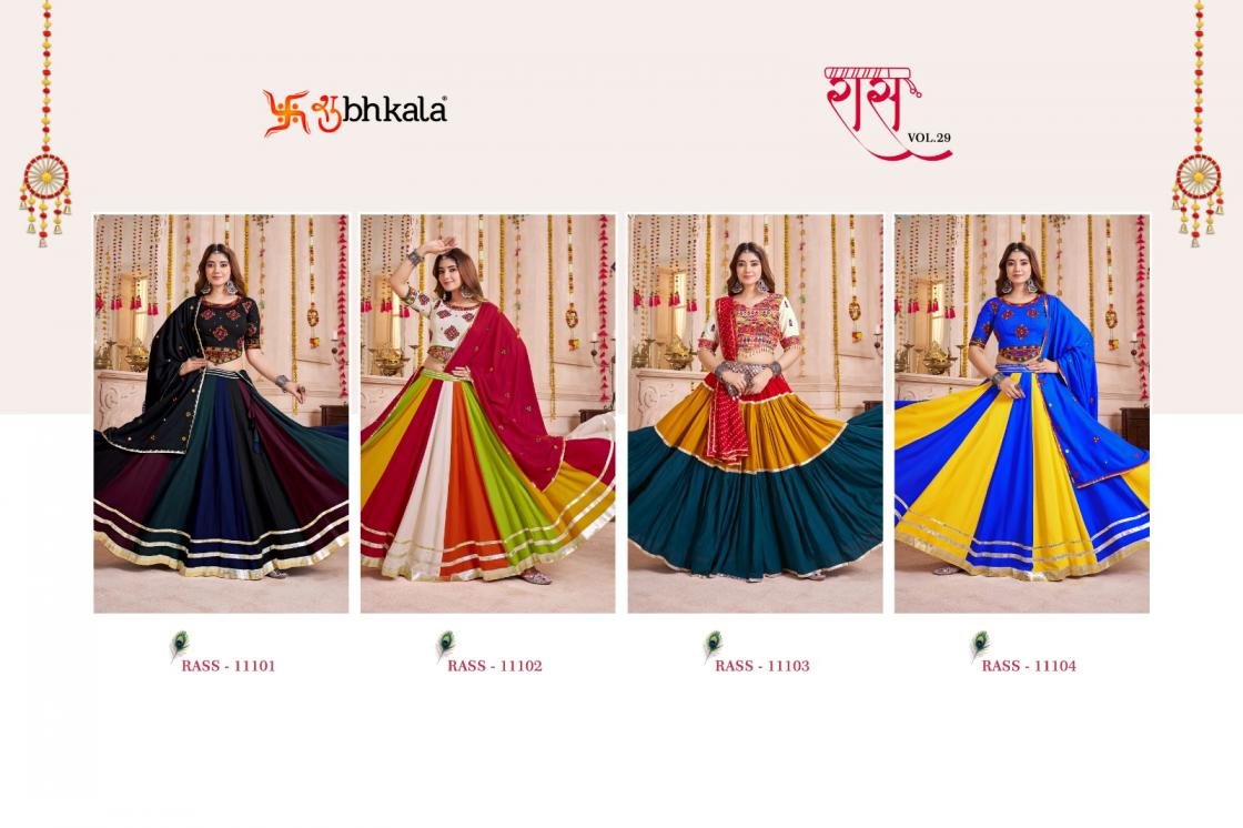 Looking for RAAS VOL 29 BY SHUBHKALA VISCOSE COTTON FULL STITCH NAVRATRI LEHENGAS EXPORTS Full Catalouge at Best Price? Buy Now RAAS VOL 29 BY SHUBHKALA VISCOSE COTTON FULL STITCH NAVRATRI LEHENGAS EXPORTS at Wholesale Rate of Rs 14000 with Total 4 Pcs from authroized dealer and supplier of Shubh Kala Brand. Cost of Each piece is just only Rs 3500 which is very low and affordable price to resale the product in your retail store. rrgandhi is Surat based Wholesale Supplier & Dealer of Shubh Kala Brand. Click on Brand name to Know more about Brand's products.