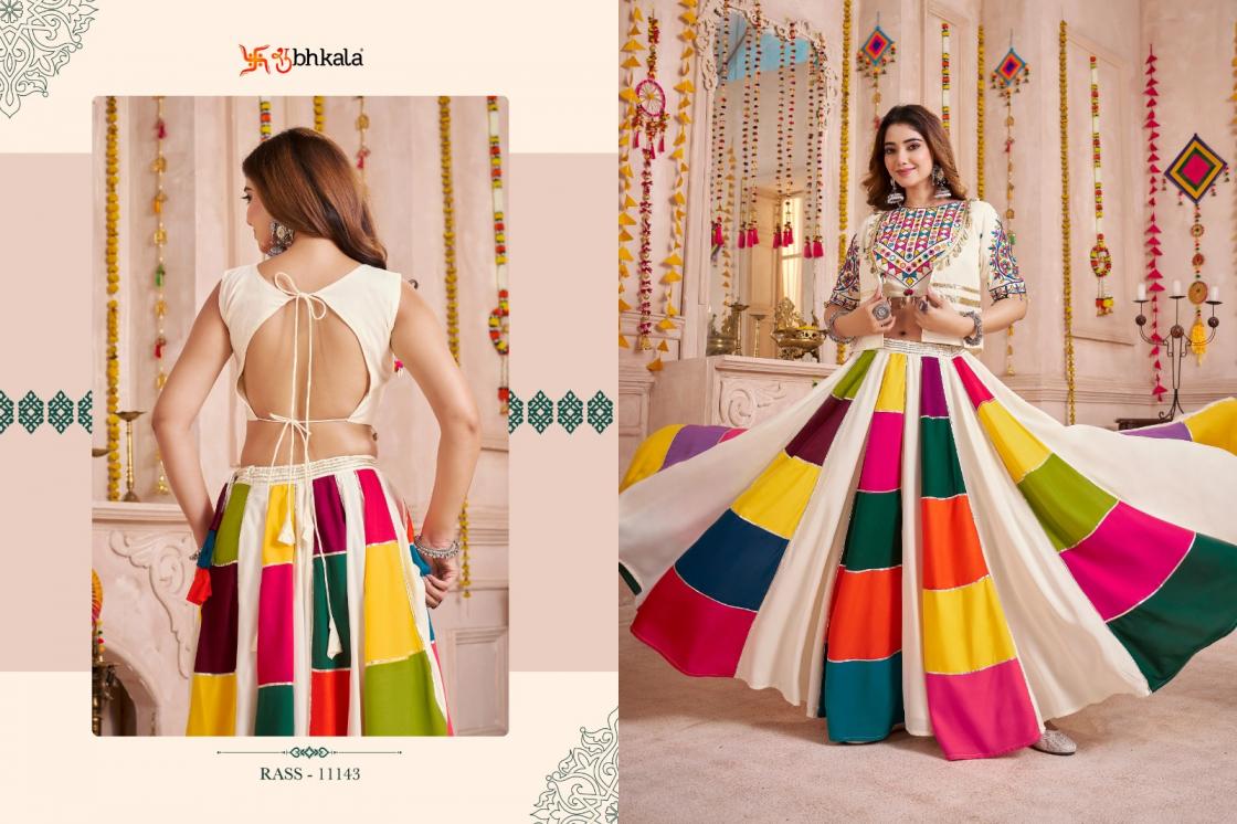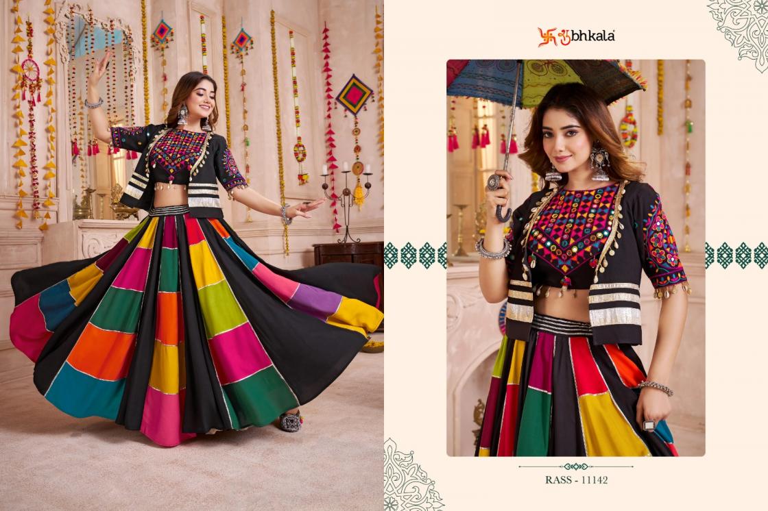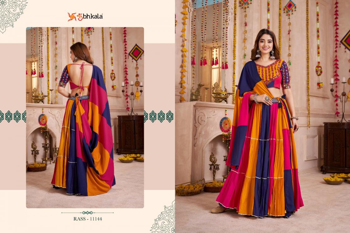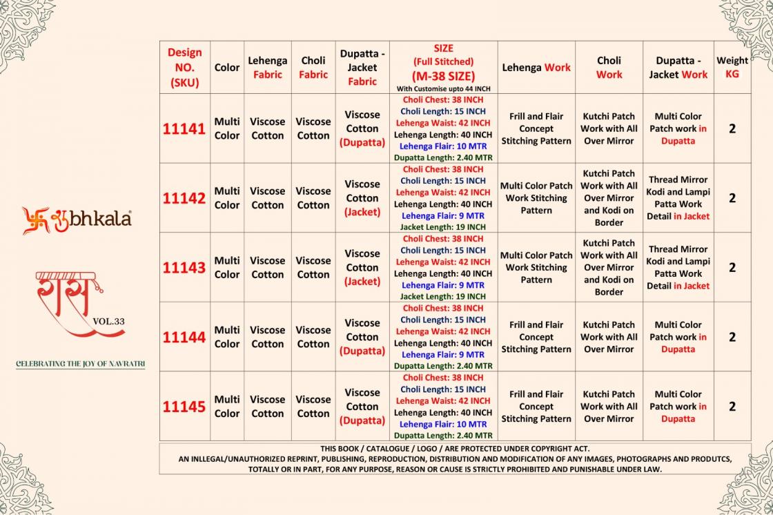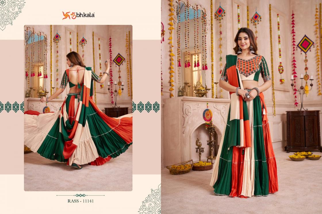 Looking for RAAS VOL 33 SHUBHKALA VISCOSE COTTON FULL STITCH NAVRATRI LEHENGAS Full Catalouge at Best Price? Buy Now RAAS VOL 33 SHUBHKALA VISCOSE COTTON FULL STITCH NAVRATRI LEHENGAS at Wholesale Rate of Rs 16500 with Total 5 Pcs from authroized dealer and supplier of Shubh Kala Brand. Cost of Each piece is just only Rs 3300 which is very low and affordable price to resale the product in your retail store. rrgandhi is Surat based Wholesale Supplier & Dealer of Shubh Kala Brand. Click on Brand name to Know more about Brand's products.