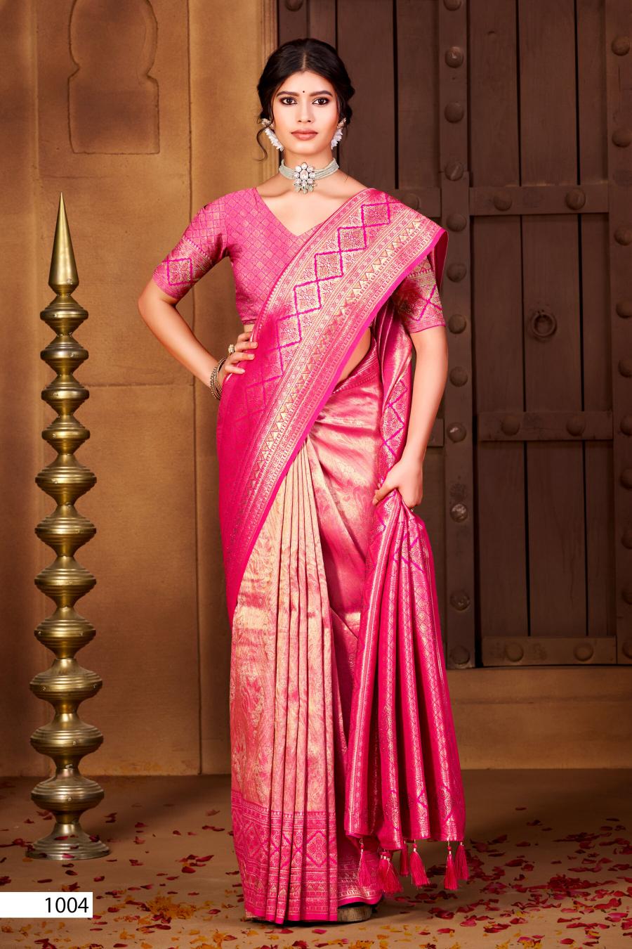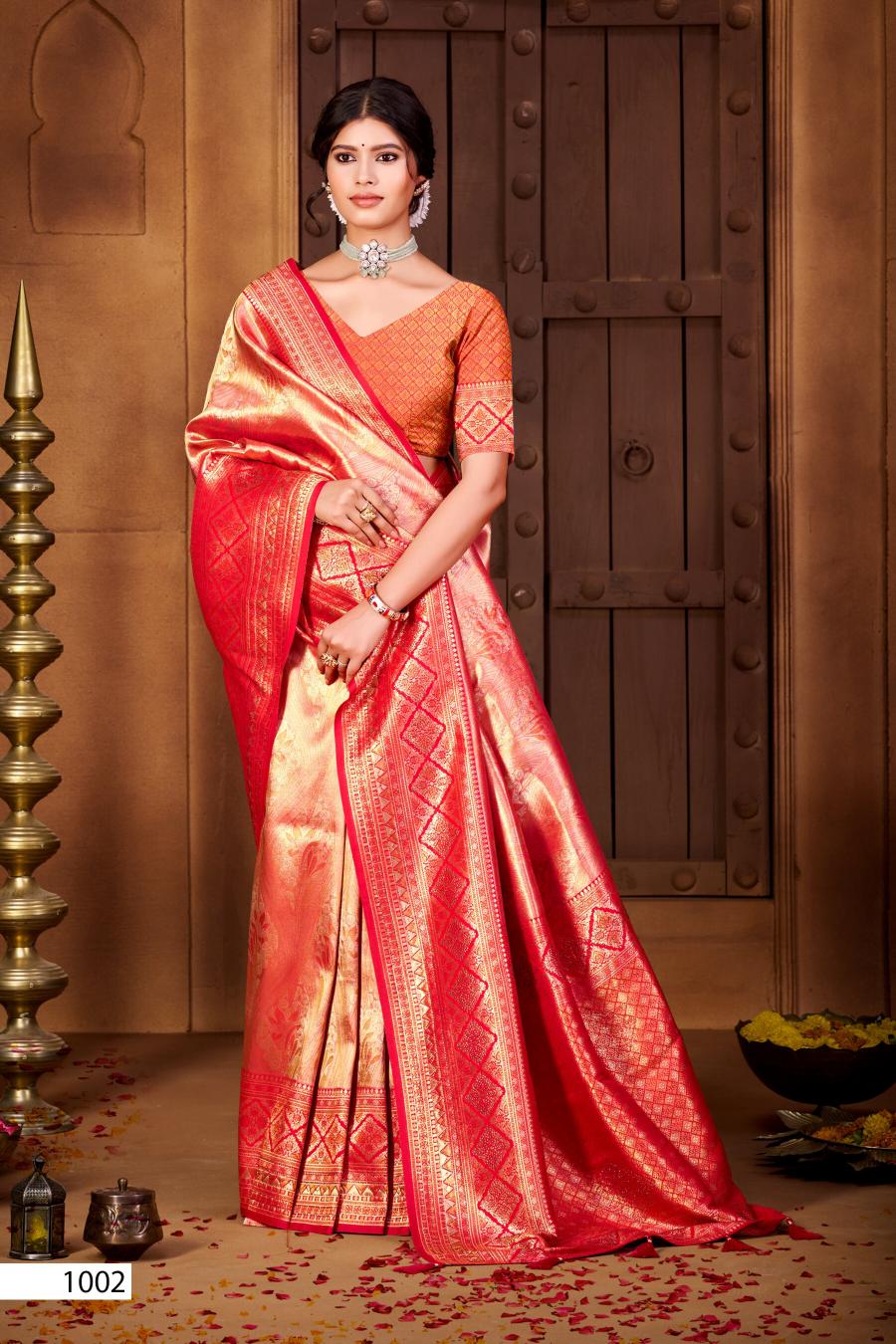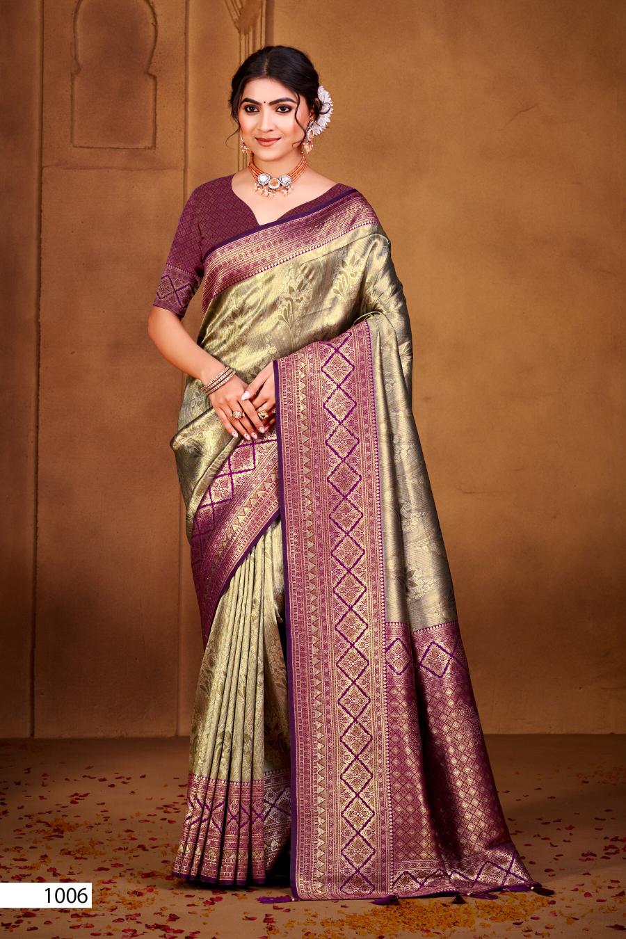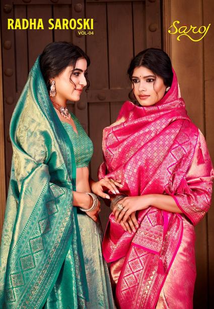 Looking for Radha Swarovski Saroj vol.1 Tissue silk saree Full Catalouge at Best Price? Buy Now Radha Swarovski Saroj vol.1 Tissue silk saree at Wholesale Rate of Rs 8850 with Total 6 Pcs from authroized dealer and supplier of Saroj Textiles Brand. Cost of Each piece is just only Rs 1475 which is very low and affordable price to resale the product in your retail store. rrgandhi is Surat based Wholesale Supplier & Dealer of Saroj Textiles Brand. Click on Brand name to Know more about Brand's products.