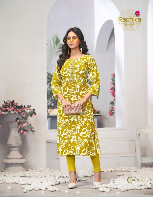 Looking for radhika lifestyle alisha vol 2 fully stitch rayon print stylish plus size long kurtis Full Catalouge at Best Price? Buy Now radhika lifestyle alisha vol 2 fully stitch rayon print stylish plus size long kurtis at Wholesale Rate of Rs 1715 with Total 7 Pcs from authroized dealer and supplier of Radhika Lifestyle Brand. Cost of Each piece is just only Rs 245 which is very low and affordable price to resale the product in your retail store. rrgandhi is Surat based Wholesale Supplier & Dealer of Radhika Lifestyle Brand. Click on Brand name to Know more about Brand's products.