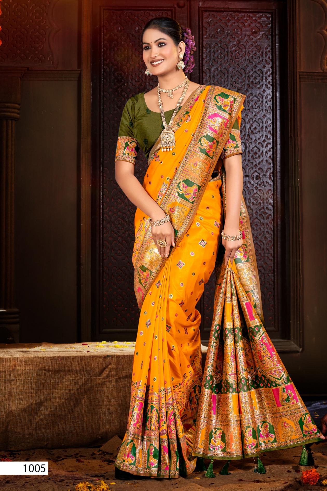 Looking for Rainaa Silk Saroj vol.3 50*600 silk saree Full Catalouge at Best Price? Buy Now Rainaa Silk Saroj vol.3 50*600 silk saree at Wholesale Rate of Rs 5450 with Total 5 Pcs from authroized dealer and supplier of Saroj Textiles Brand. Cost of Each piece is just only Rs 1090 which is very low and affordable price to resale the product in your retail store. rrgandhi is Surat based Wholesale Supplier & Dealer of Saroj Textiles Brand. Click on Brand name to Know more about Brand's products.