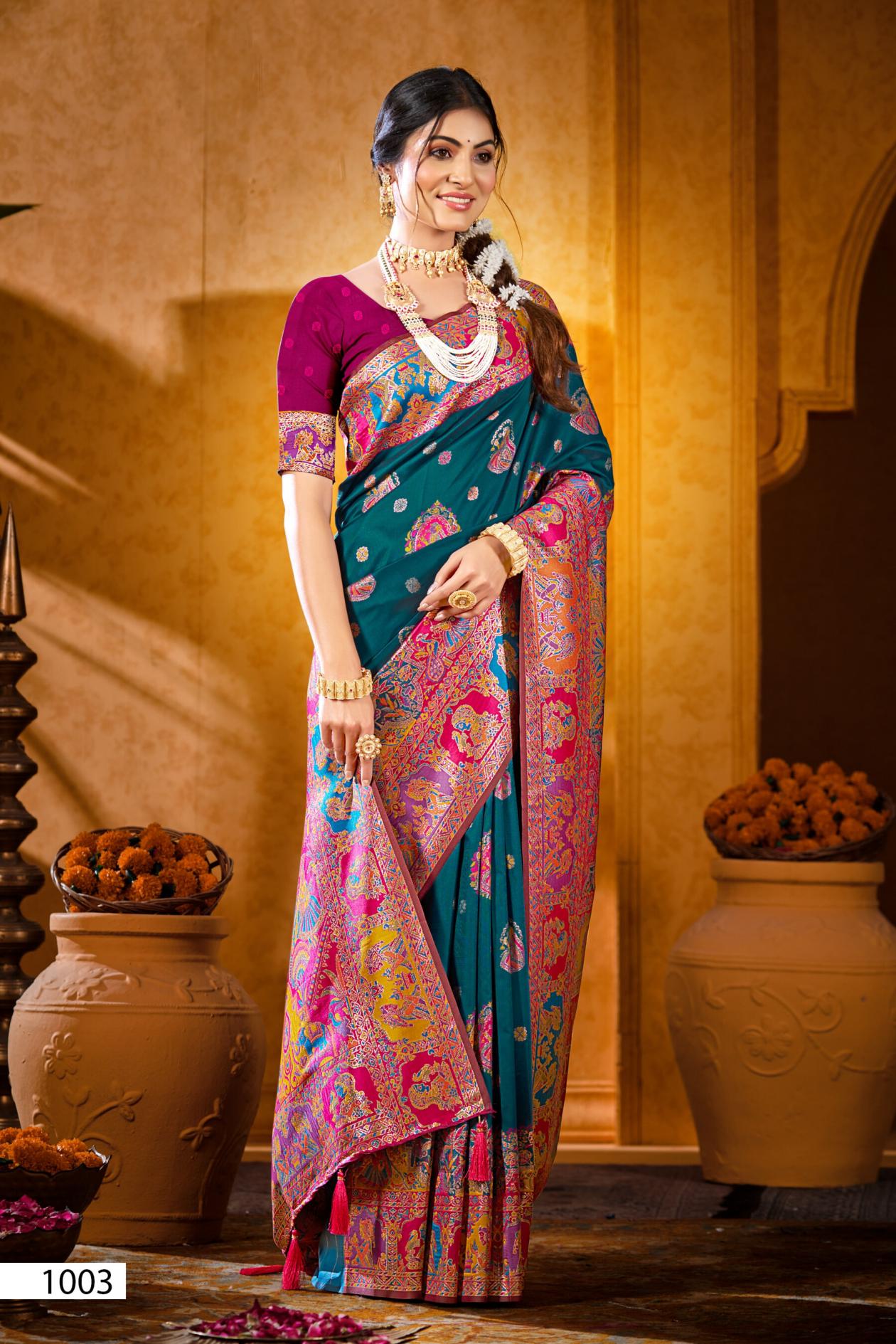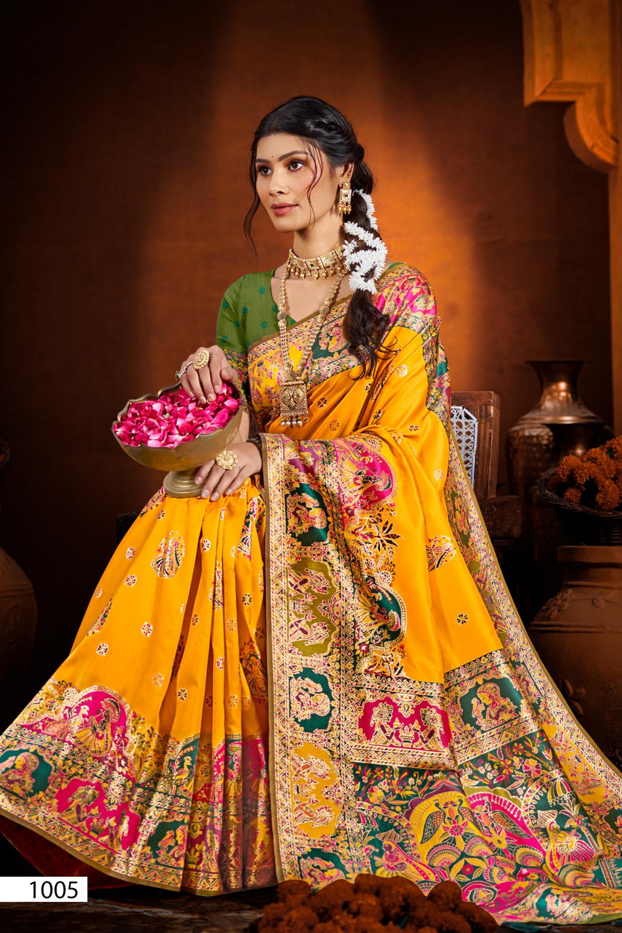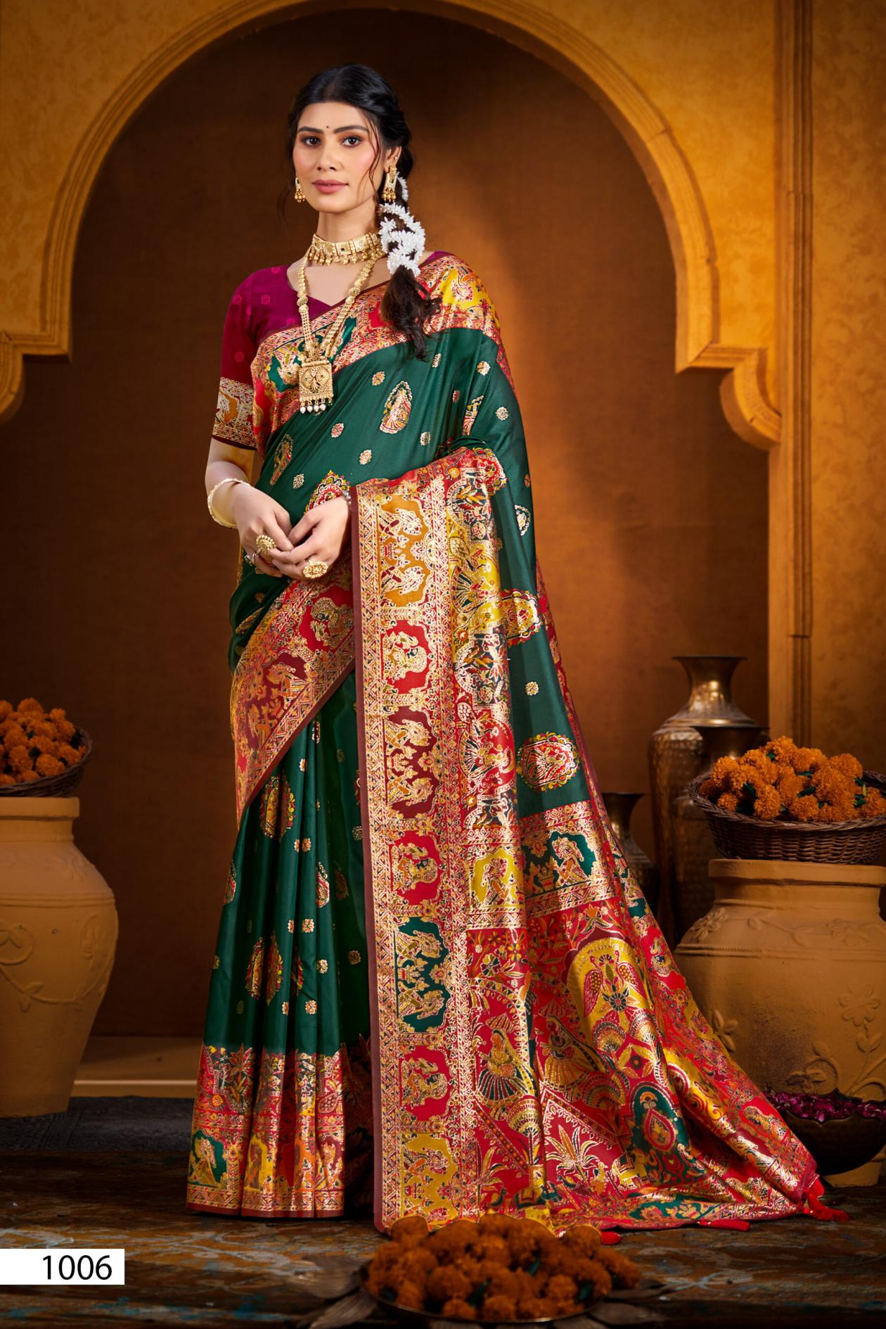 Looking for Rainaa Silk Saroj vol.6 50*600 silk saree Full Catalouge at Best Price? Buy Now Rainaa Silk Saroj vol.6 50*600 silk saree at Wholesale Rate of Rs 5450 with Total 5 Pcs from authroized dealer and supplier of Saroj Textiles Brand. Cost of Each piece is just only Rs 1090 which is very low and affordable price to resale the product in your retail store. rrgandhi is Surat based Wholesale Supplier & Dealer of Saroj Textiles Brand. Click on Brand name to Know more about Brand's products.