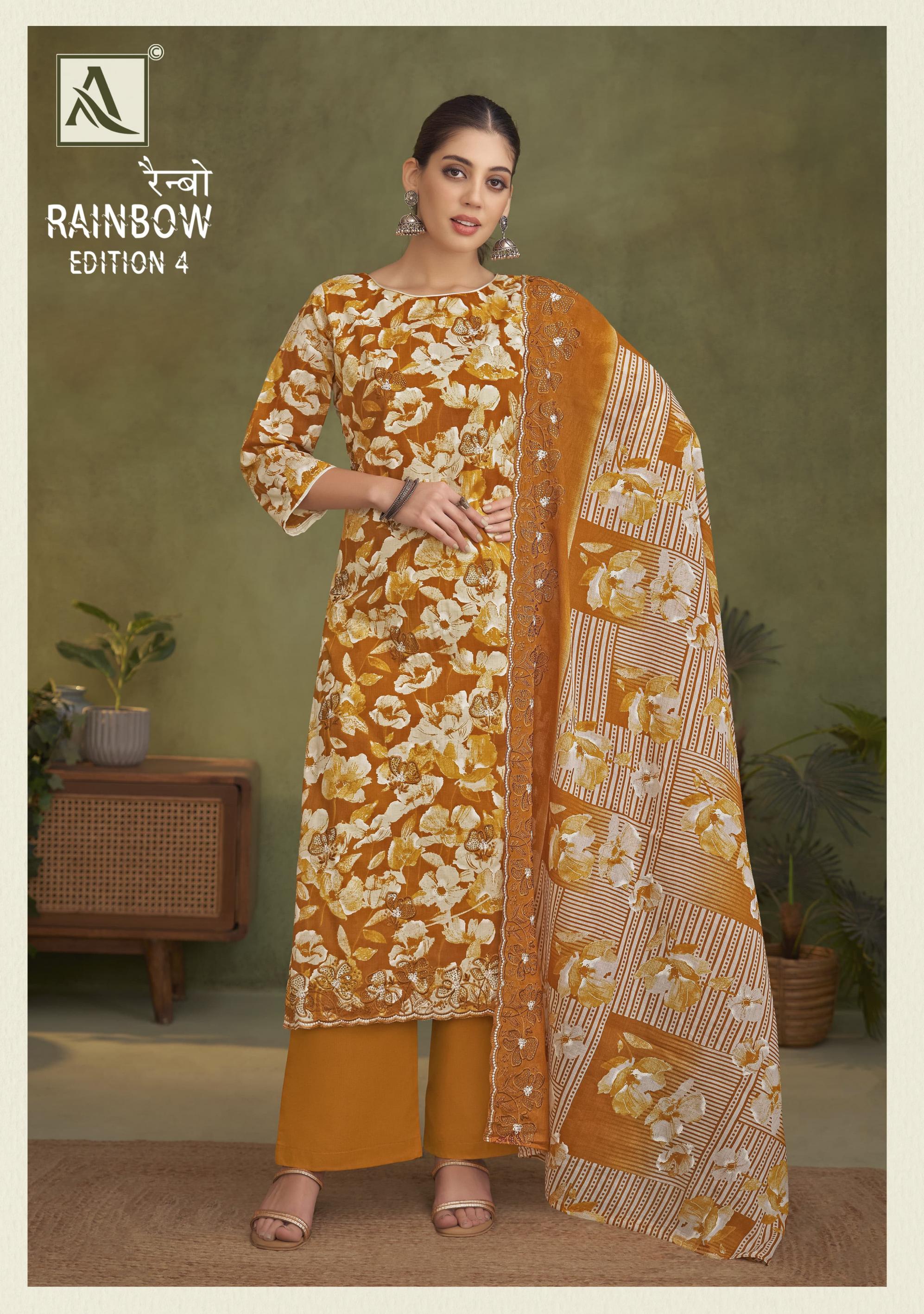 Looking for RAINBOW VOL 4 BY ALOK COTTON PAKISTANI PRINT 3PCS DRESS Full Catalouge at Best Price? Buy Now RAINBOW VOL 4 BY ALOK COTTON PAKISTANI PRINT 3PCS DRESS at Wholesale Rate of Rs 5394 with Total 6 Pcs from authroized dealer and supplier of Alok Suit Brand. Cost of Each piece is just only Rs 899 which is very low and affordable price to resale the product in your retail store. rrgandhi is Surat based Wholesale Supplier & Dealer of Alok Suit Brand. Click on Brand name to Know more about Brand's products.