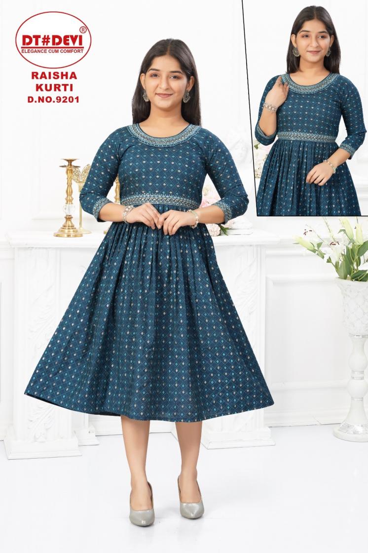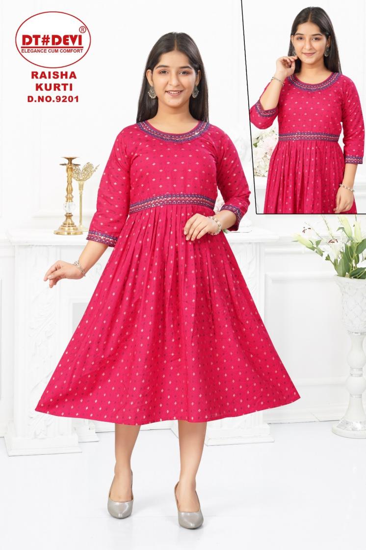 Looking for RAISHA 9021 BY DT DEV VETICAN STYLISH READYMADE COMBO KIDS KURTIS Full Catalouge at Best Price? Buy Now RAISHA 9021 BY DT DEV VETICAN STYLISH READYMADE COMBO KIDS KURTIS at Wholesale Rate of Rs 4095 with Total 9 Pcs from authroized dealer and supplier of Dt Devi Brand. Cost of Each piece is just only Rs 455 which is very low and affordable price to resale the product in your retail store. rrgandhi is Surat based Wholesale Supplier & Dealer of Dt Devi Brand. Click on Brand name to Know more about Brand's products.