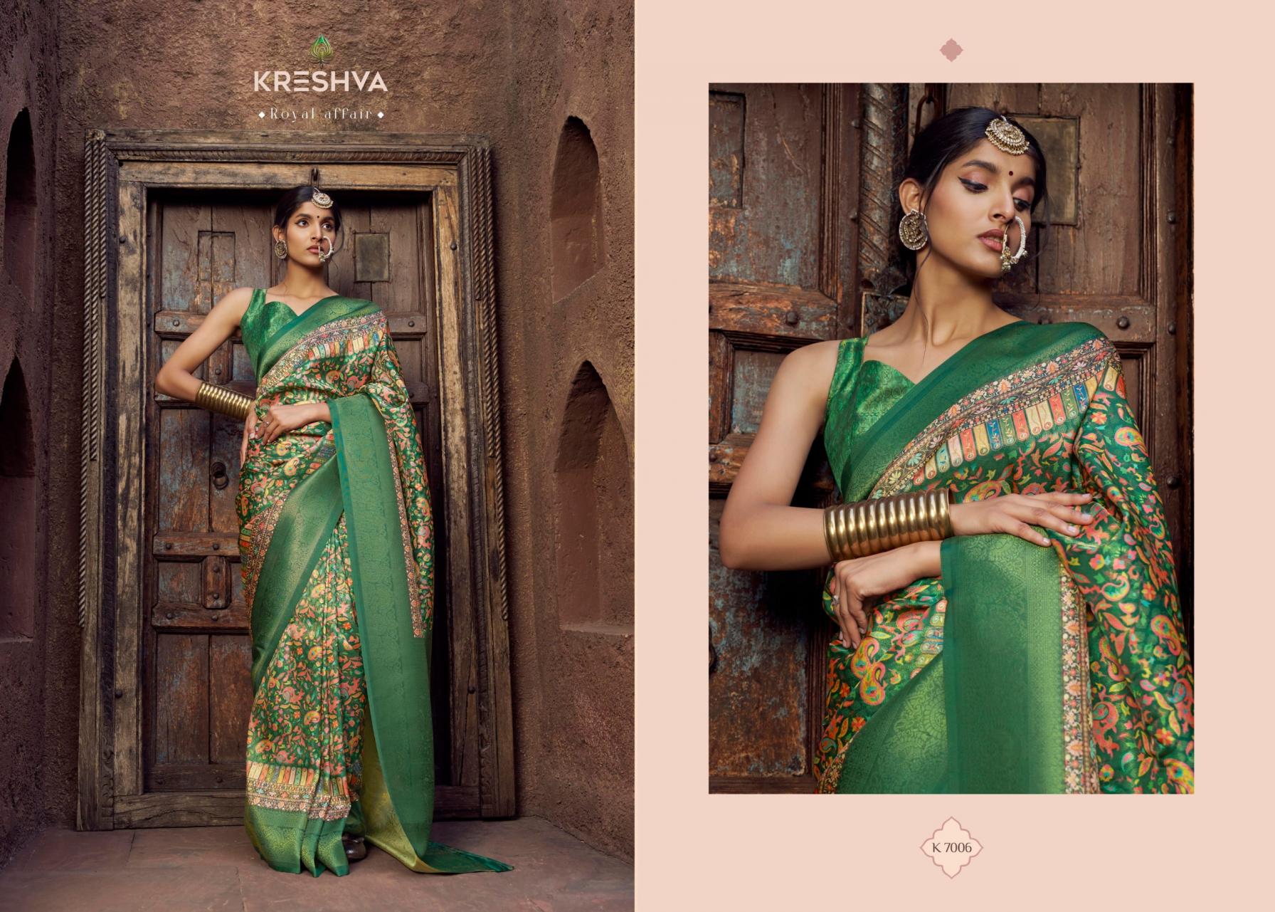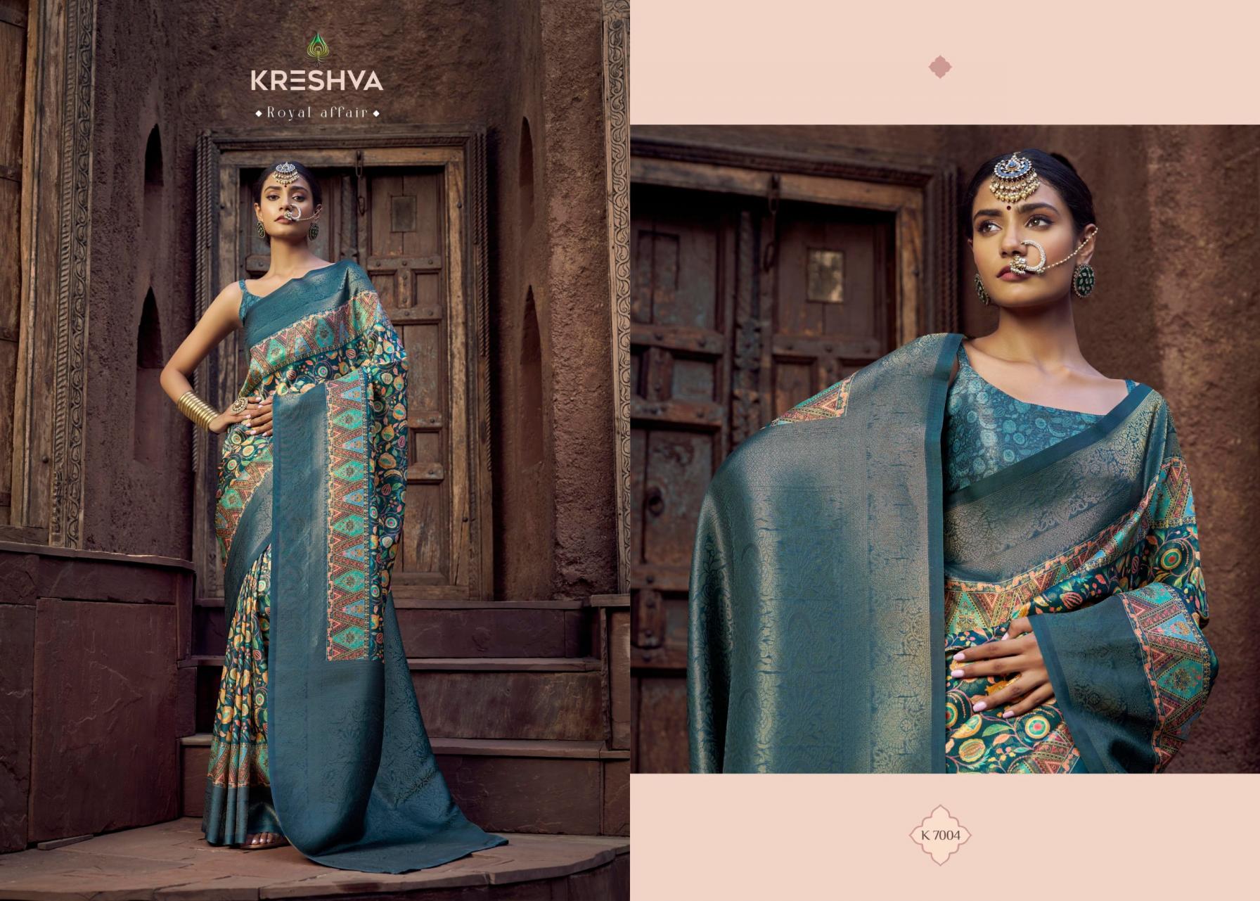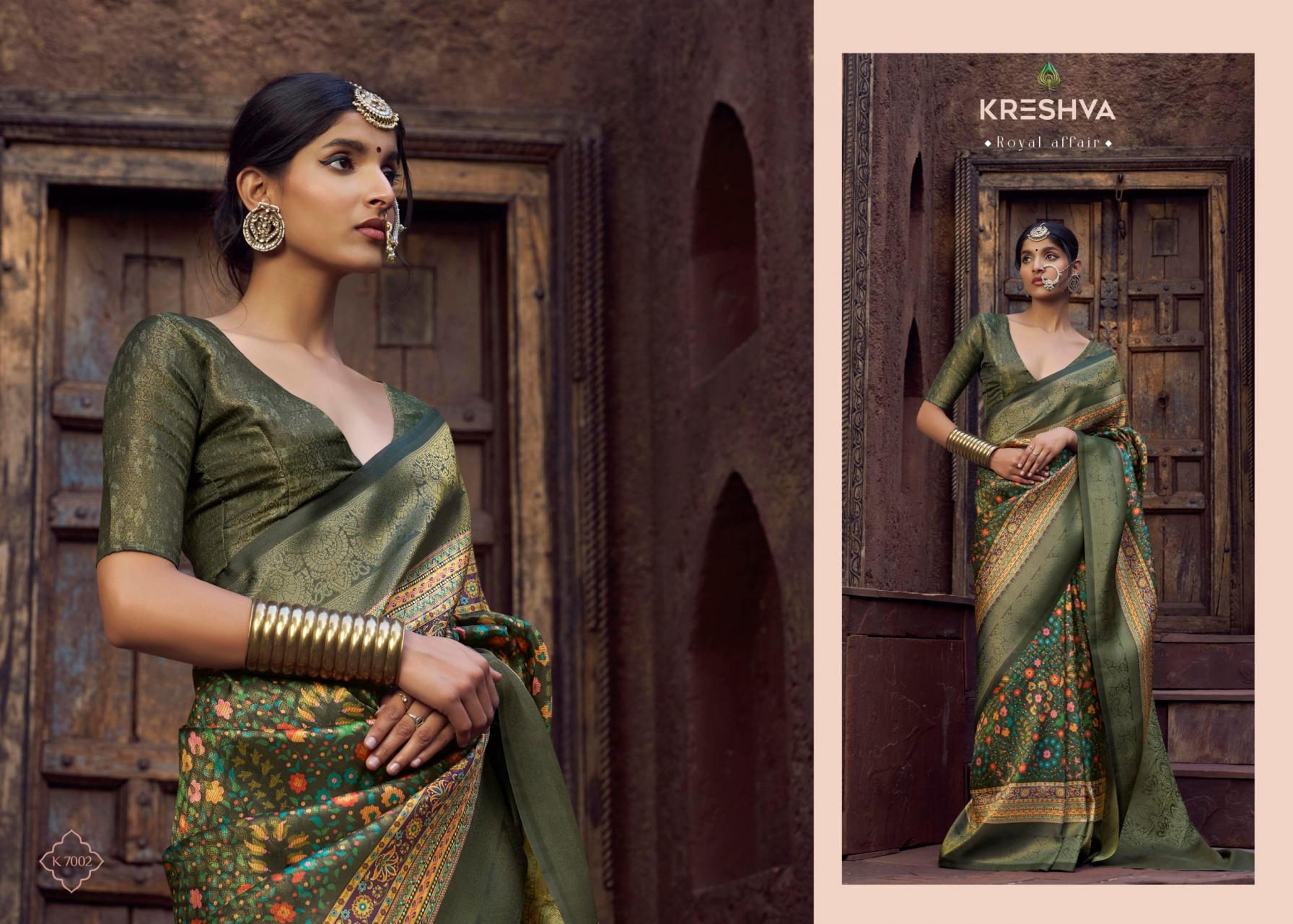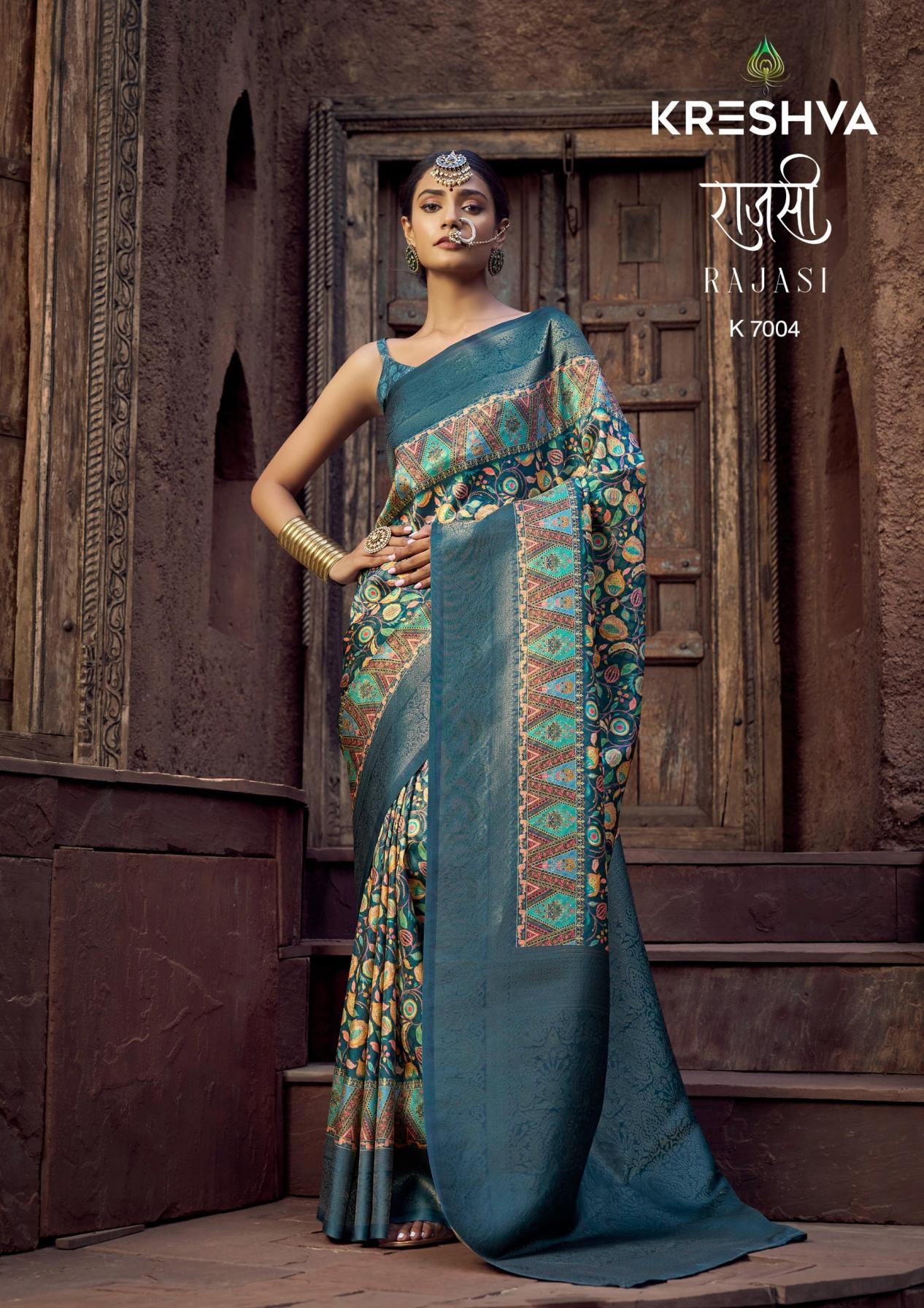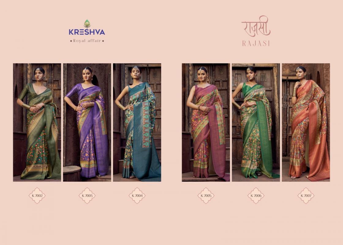 Looking for RAJASI BY KRESHVA PRESENTS CARNIVAL WEAR CLASSY SAREE Full Catalouge at Best Price? Buy Now RAJASI BY KRESHVA PRESENTS CARNIVAL WEAR CLASSY SAREE at Wholesale Rate of Rs 4770 with Total 6 Pcs from authroized dealer and supplier of Kreshva Brand. Cost of Each piece is just only Rs 795 which is very low and affordable price to resale the product in your retail store. rrgandhi is Surat based Wholesale Supplier & Dealer of Kreshva Brand. Click on Brand name to Know more about Brand's products.