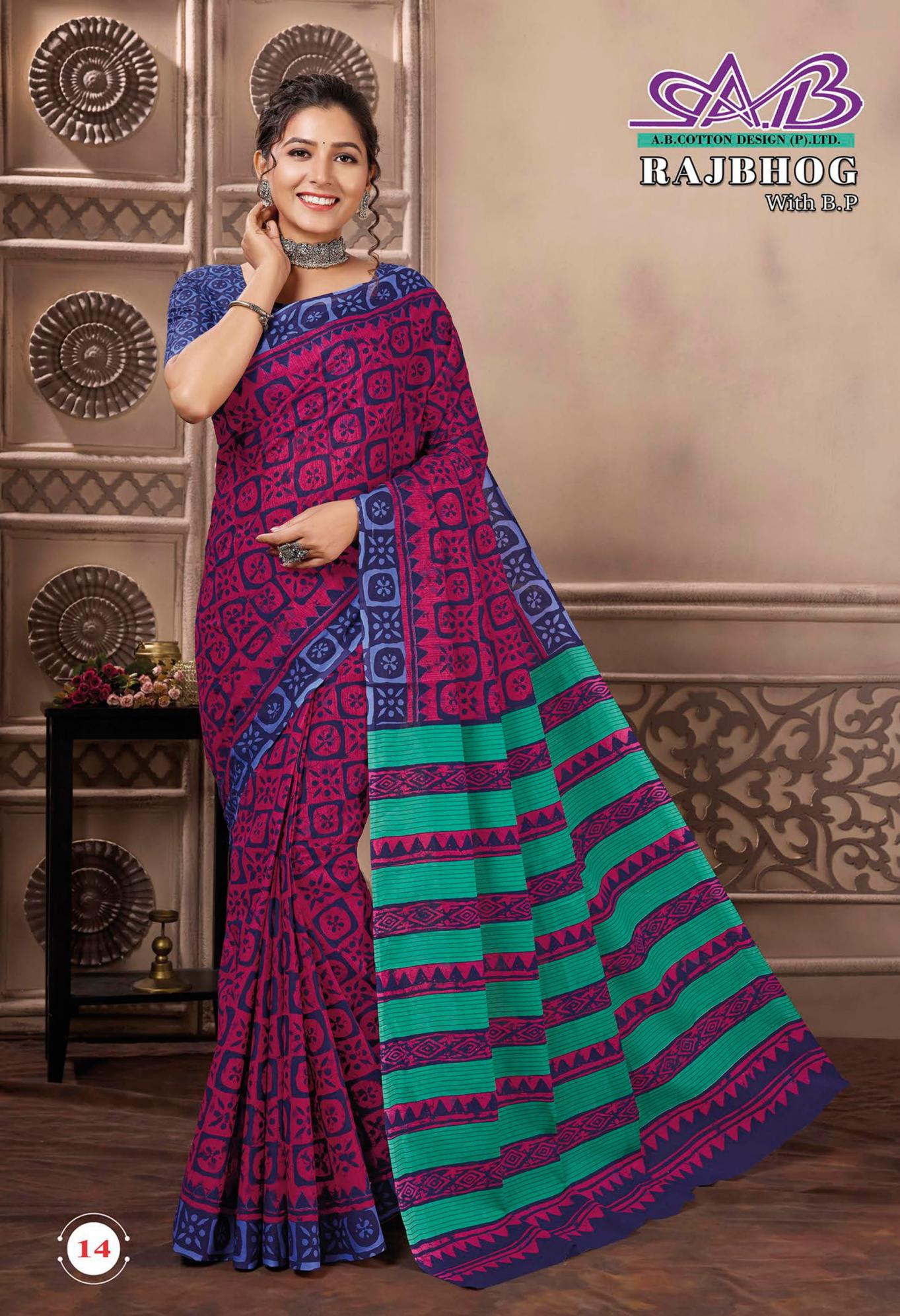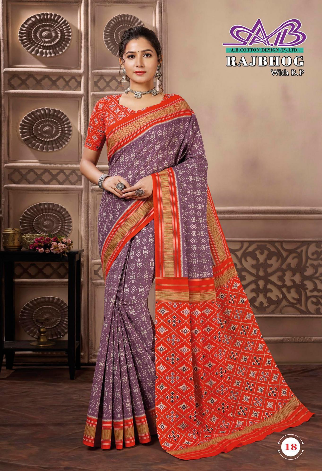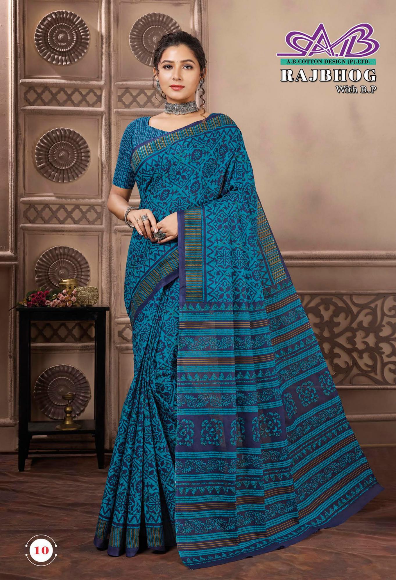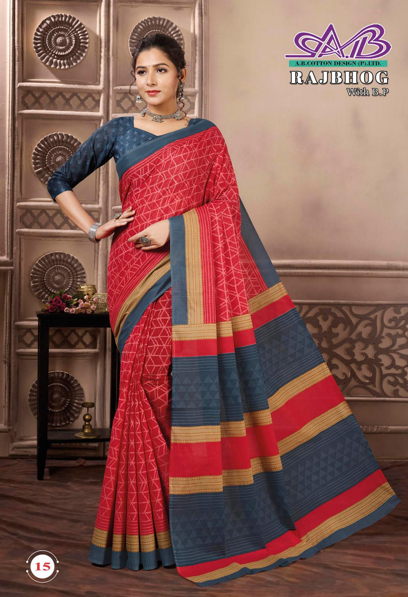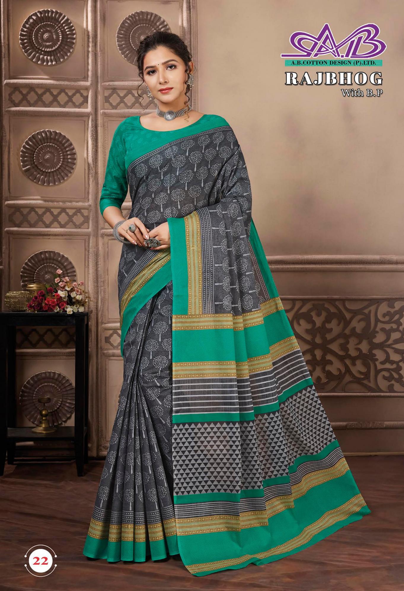 Looking for RAJBHOG BY AB MALAI COTTON PRETTY LOOK SAREES Full Catalouge at Best Price? Buy Now RAJBHOG BY AB MALAI COTTON PRETTY LOOK SAREES at Wholesale Rate of Rs 7910 with Total 14 Pcs from authroized dealer and supplier of A B Cotton Design Brand. Cost of Each piece is just only Rs 565 which is very low and affordable price to resale the product in your retail store. rrgandhi is Surat based Wholesale Supplier & Dealer of A B Cotton Design Brand. Click on Brand name to Know more about Brand's products.