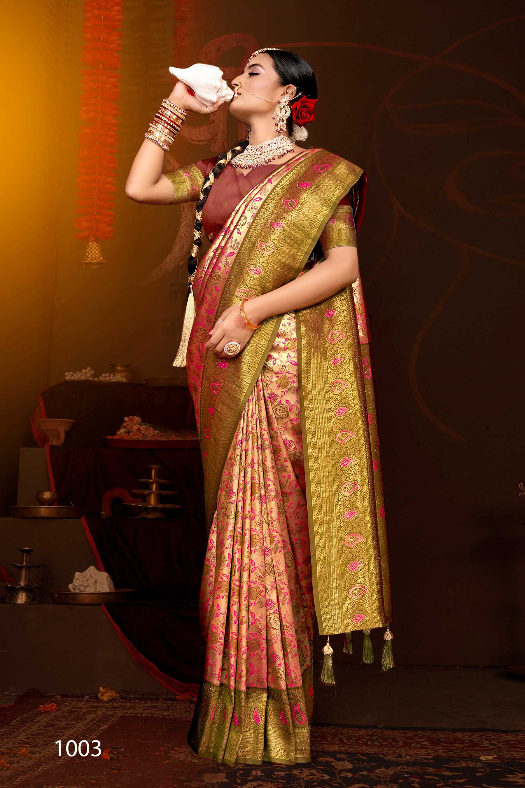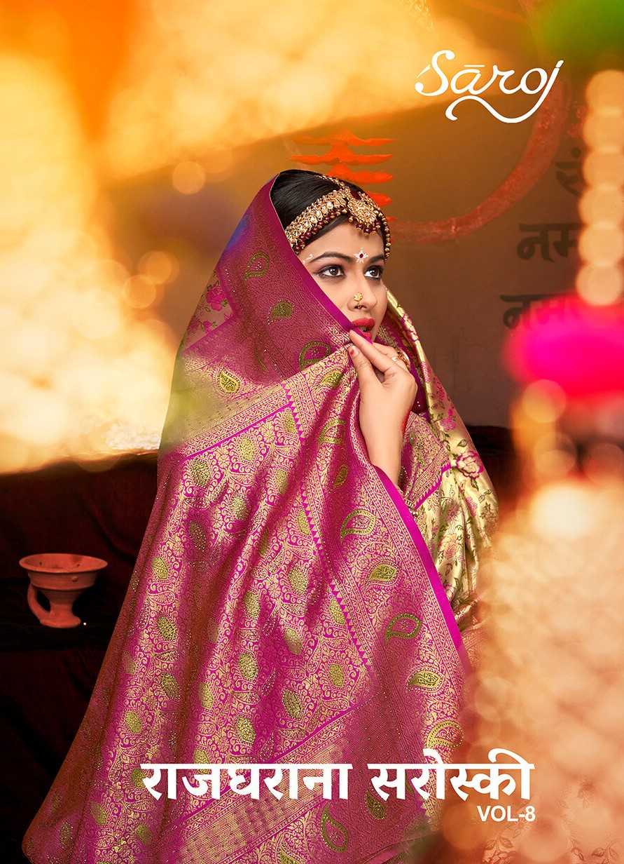 Looking for Rajgharana Saroj Vol - 8 Jari jacquard saree collection Full Catalouge at Best Price? Buy Now Rajgharana Saroj Vol - 8 Jari jacquard saree collection at Wholesale Rate of Rs 6680 with Total 4 Pcs from authroized dealer and supplier of Brand. Cost of Each piece is just only Rs 1670 which is very low and affordable price to resale the product in your retail store. rrgandhi is Surat based Wholesale Supplier & Dealer of Brand. Click on Brand name to Know more about Brand's products.