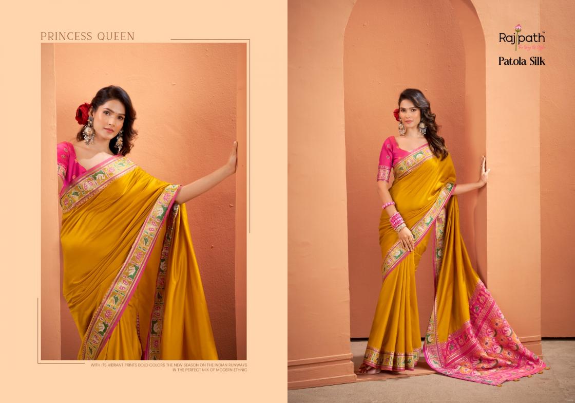 Looking for RAJPATH VRUNDAVAN SILK PATOLA WEAVING BEST SAREE ONLINE Full Catalouge at Best Price? Buy Now RAJPATH VRUNDAVAN SILK PATOLA WEAVING BEST SAREE ONLINE at Wholesale Rate of Rs 6570 with Total 6 Pcs from authroized dealer and supplier of Rajpath Brand. Cost of Each piece is just only Rs 1095 which is very low and affordable price to resale the product in your retail store. rrgandhi is Surat based Wholesale Supplier & Dealer of Rajpath Brand. Click on Brand name to Know more about Brand's products.