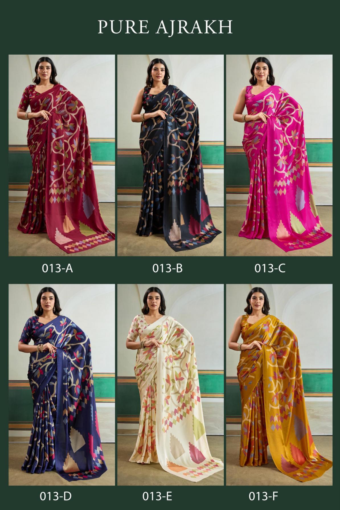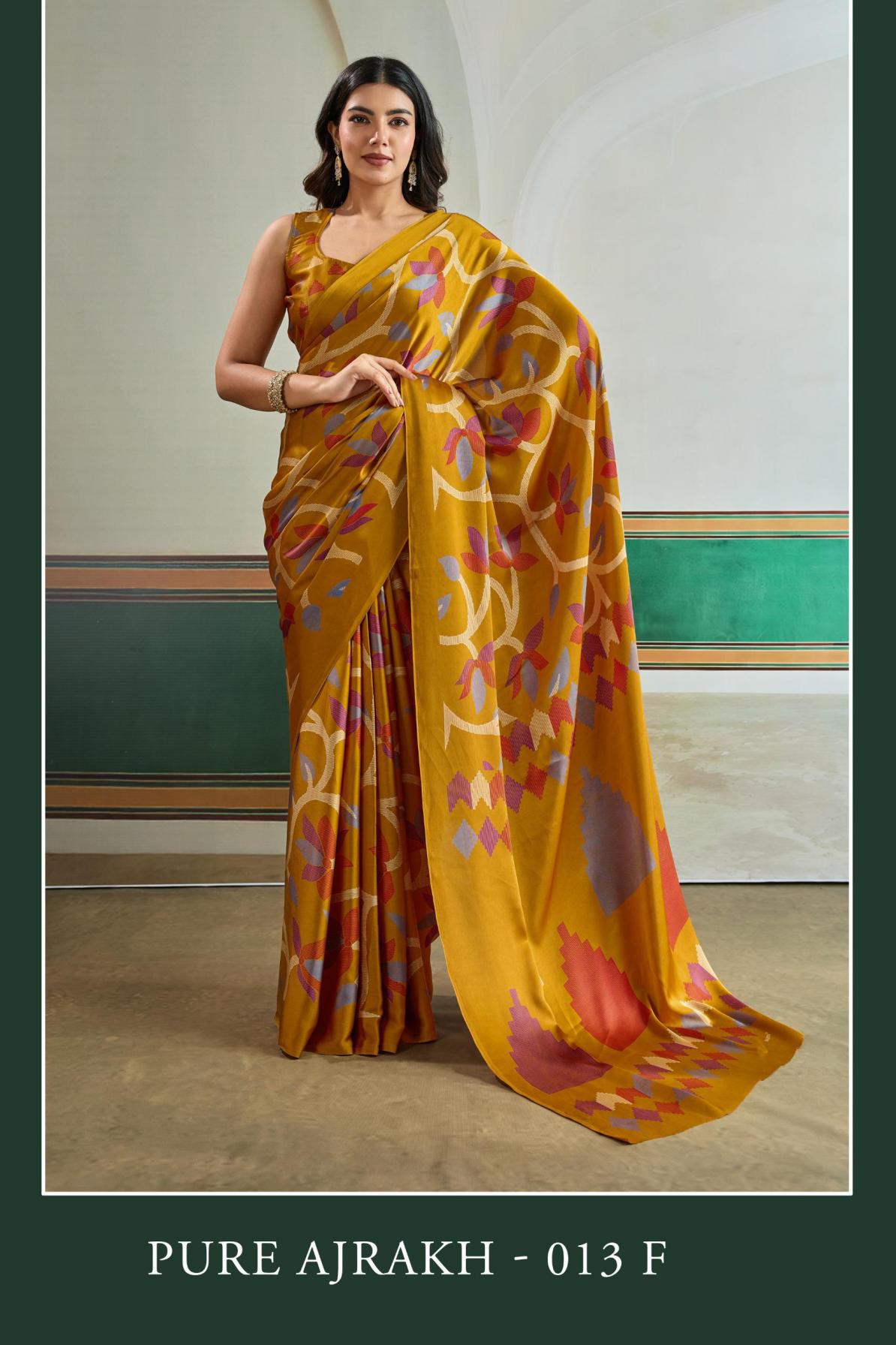 Looking for RAJTEX PURE AJRAKH 013 MODAL SATIN PRINTED AMAZING SAREES Full Catalouge at Best Price? Buy Now RAJTEX PURE AJRAKH 013 MODAL SATIN PRINTED AMAZING SAREES at Wholesale Rate of Rs 3330 with Total 6 Pcs from authroized dealer and supplier of Rajtex Brand. Cost of Each piece is just only Rs 555 which is very low and affordable price to resale the product in your retail store. rrgandhi is Surat based Wholesale Supplier & Dealer of Rajtex Brand. Click on Brand name to Know more about Brand's products.