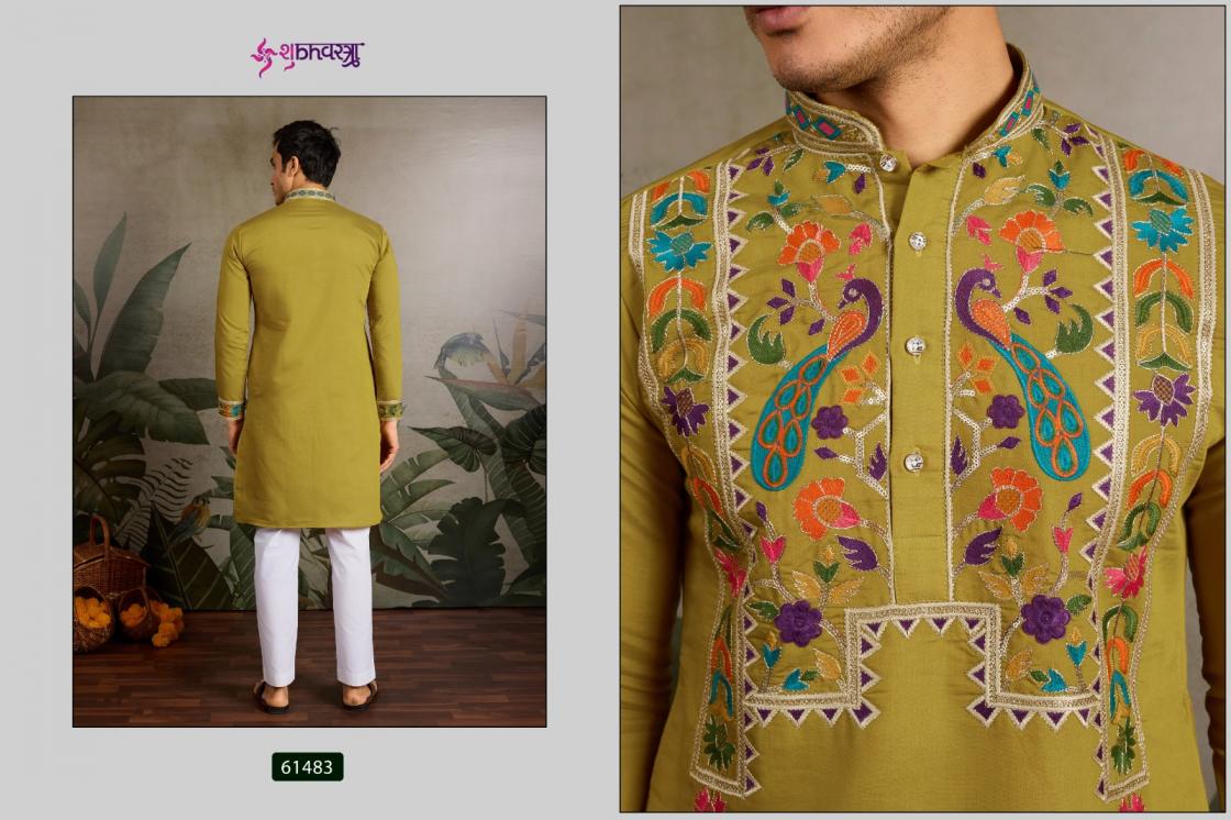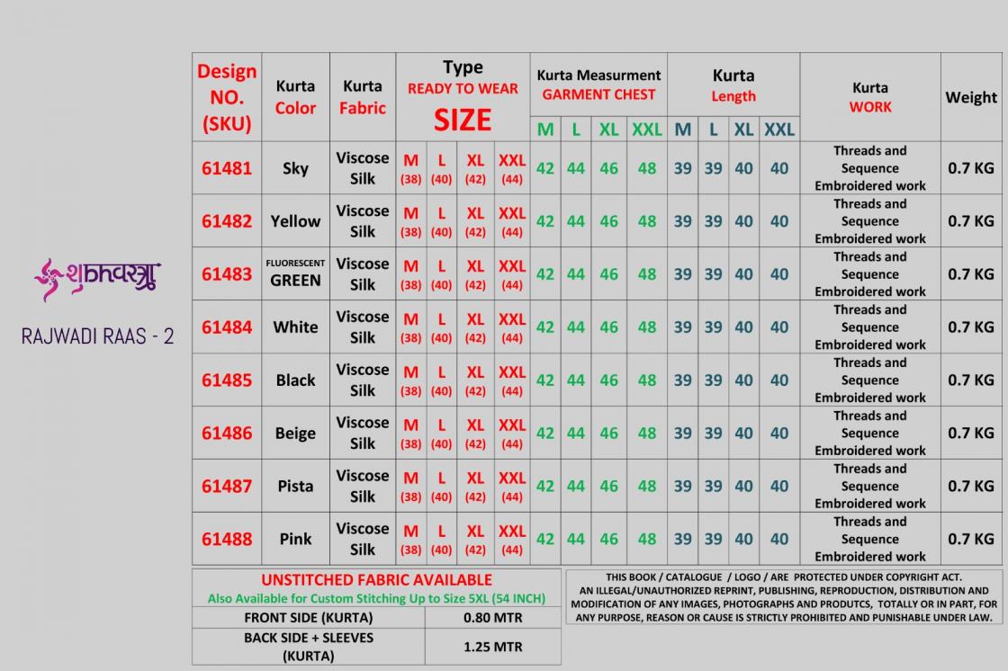 Looking for RAJWADI RAAS VOL 2 BY SHUBHVASTRA VISCOSE SILK FULL STITCH MENS KURTA EXPORTS Full Catalouge at Best Price? Buy Now RAJWADI RAAS VOL 2 BY SHUBHVASTRA VISCOSE SILK FULL STITCH MENS KURTA EXPORTS at Wholesale Rate of Rs 9200 with Total 8 Pcs from authroized dealer and supplier of Shubh Vastra Brand. Cost of Each piece is just only Rs 1150 which is very low and affordable price to resale the product in your retail store. rrgandhi is Surat based Wholesale Supplier & Dealer of Shubh Vastra Brand. Click on Brand name to Know more about Brand's products.