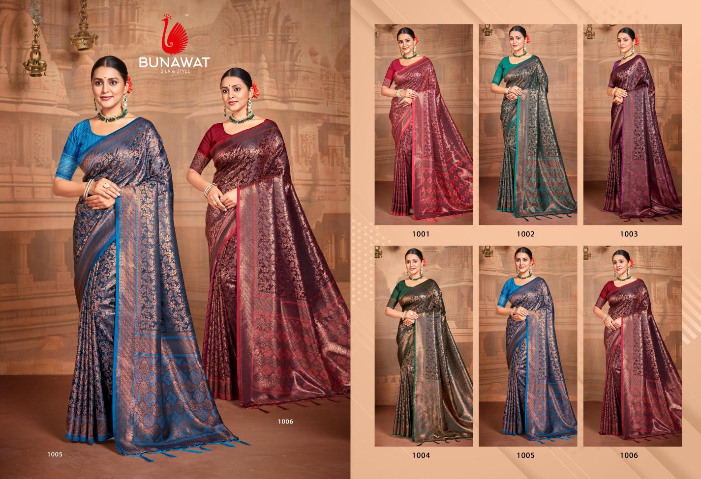 Looking for Rajwadi Vol-19 By Bunawat Heavy Silk Sarees Collection For Party Full Catalouge at Best Price? Buy Now Rajwadi Vol-19 By Bunawat Heavy Silk Sarees Collection For Party at Wholesale Rate of Rs 6840 with Total 6 Pcs from authroized dealer and supplier of Bunawat Brand. Cost of Each piece is just only Rs 1140 which is very low and affordable price to resale the product in your retail store. rrgandhi is Surat based Wholesale Supplier & Dealer of Bunawat Brand. Click on Brand name to Know more about Brand's products.