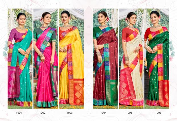 Looking for RALEMPIRE SILK BY BUNAWAT WEDDING FESTIVAL WEAR SILK FABRIC SAREE COLLECTION Full Catalouge at Best Price? Buy Now RALEMPIRE SILK BY BUNAWAT WEDDING FESTIVAL WEAR SILK FABRIC SAREE COLLECTION at Wholesale Rate of Rs 8550 with Total 6 Pcs from authroized dealer and supplier of Bunawat Brand. Cost of Each piece is just only Rs 1425 which is very low and affordable price to resale the product in your retail store. rrgandhi is Surat based Wholesale Supplier & Dealer of Bunawat Brand. Click on Brand name to Know more about Brand's products.