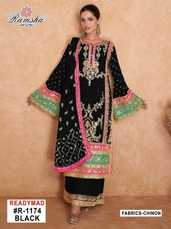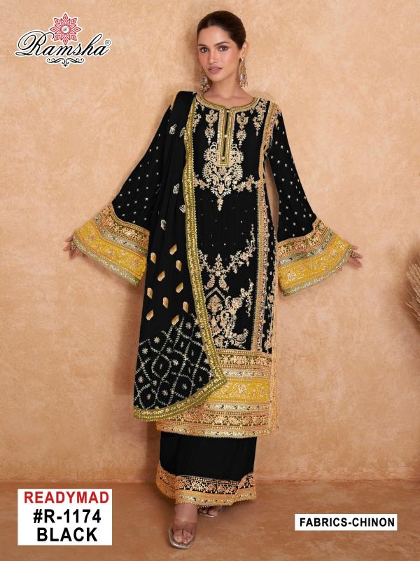 Looking for ramsha r 1174 nx black embroidery work chinon pakistani fullstitch dress Full Catalouge at Best Price? Buy Now ramsha r 1174 nx black embroidery work chinon pakistani fullstitch dress at Wholesale Rate of Rs 14800 with Total 8 Pcs from authroized dealer and supplier of Ramsha Brand. Cost of Each piece is just only Rs 1850 which is very low and affordable price to resale the product in your retail store. rrgandhi is Surat based Wholesale Supplier & Dealer of Ramsha Brand. Click on Brand name to Know more about Brand's products.