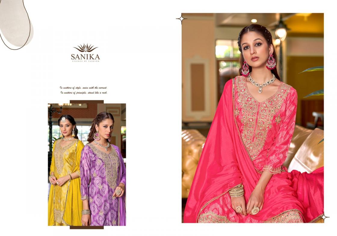 Looking for RANG RAZIA BY SANIKA FASHION CHINON SILK READYMADE PLAZZO SUITS Full Catalouge at Best Price? Buy Now RANG RAZIA BY SANIKA FASHION CHINON SILK READYMADE PLAZZO SUITS at Wholesale Rate of Rs 7196 with Total 4 Pcs from authroized dealer and supplier of sanika fashion Brand. Cost of Each piece is just only Rs 1799 which is very low and affordable price to resale the product in your retail store. rrgandhi is Surat based Wholesale Supplier & Dealer of sanika fashion Brand. Click on Brand name to Know more about Brand's products.