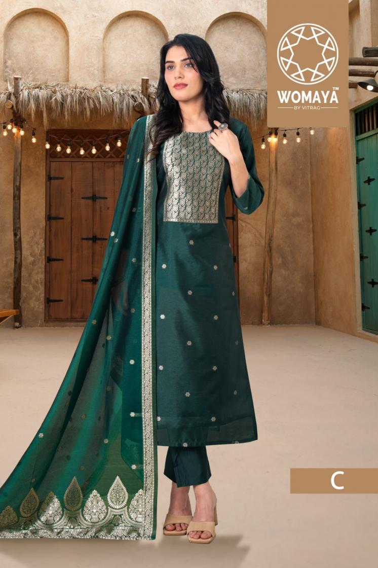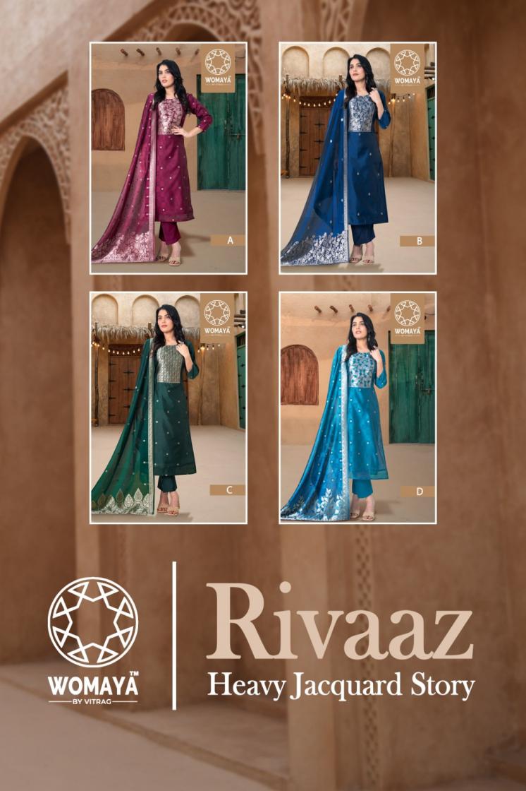 Looking for RIVAAZ HEAVY JACQUARD STORY BY WOMAYA PRETTY FULL STITCH COMBO SUITS Full Catalouge at Best Price? Buy Now RIVAAZ HEAVY JACQUARD STORY BY WOMAYA PRETTY FULL STITCH COMBO SUITS at Wholesale Rate of Rs 27900 with Total 20 Pcs from authroized dealer and supplier of Womaya Kurtis Brand. Cost of Each piece is just only Rs 1395 which is very low and affordable price to resale the product in your retail store. rrgandhi is Surat based Wholesale Supplier & Dealer of Womaya Kurtis Brand. Click on Brand name to Know more about Brand's products.