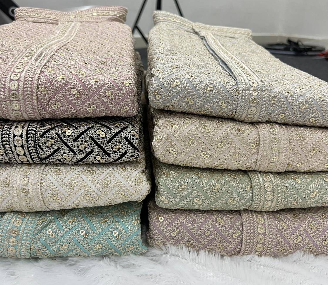 Looking for RIWAAZ VOL 2 READYMADE RAYON SEQUINS WORK MENS & KIDS KUTRA Full Catalouge at Best Price? Buy Now RIWAAZ VOL 2 READYMADE RAYON SEQUINS WORK MENS & KIDS KUTRA at Wholesale Rate of Rs 8000 with Total 8 Pcs from authroized dealer and supplier of P R Clothing Brand. Cost of Each piece is just only Rs 1000 which is very low and affordable price to resale the product in your retail store. rrgandhi is Surat based Wholesale Supplier & Dealer of P R Clothing Brand. Click on Brand name to Know more about Brand's products.