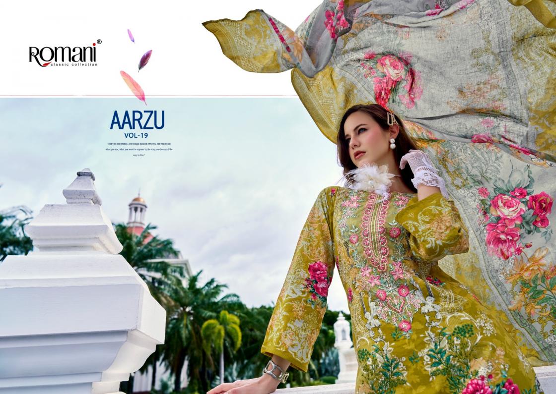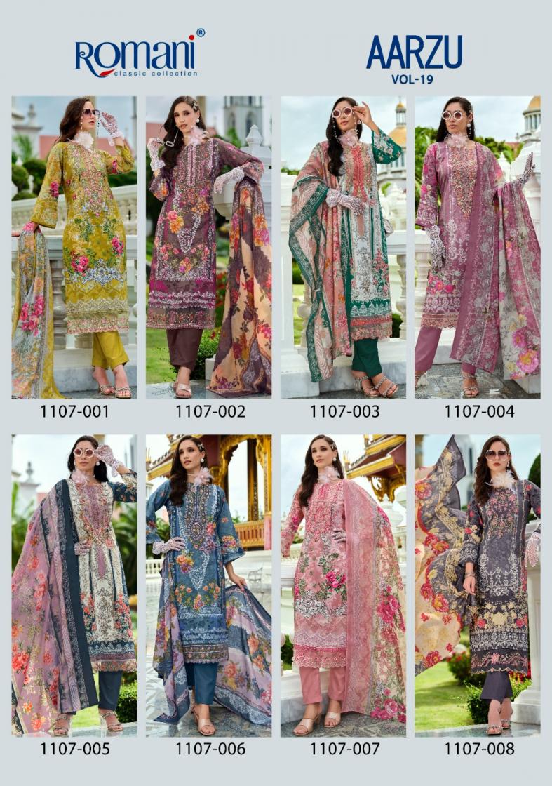 Looking for ROMANI AARZU VOL 19 FULL STITCH COTTON MODERN PAKISTANI PLUS SIZE 3PCS DRESS Full Catalouge at Best Price? Buy Now ROMANI AARZU VOL 19 FULL STITCH COTTON MODERN PAKISTANI PLUS SIZE 3PCS DRESS at Wholesale Rate of Rs 6328 with Total 8 Pcs from authroized dealer and supplier of Romani Brand. Cost of Each piece is just only Rs 791 which is very low and affordable price to resale the product in your retail store. rrgandhi is Surat based Wholesale Supplier & Dealer of Romani Brand. Click on Brand name to Know more about Brand's products.