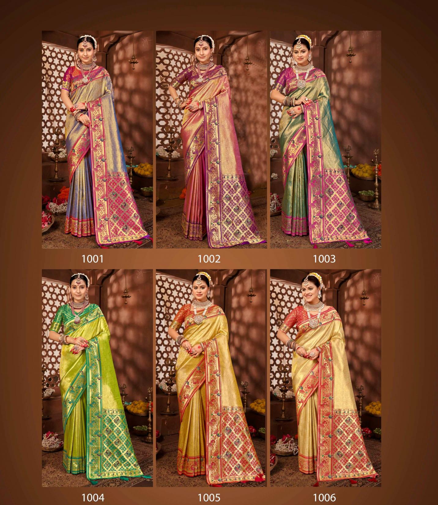 Looking for Roomani Silk Sarovski Saroj vol.2 Premium tissue silk saree Full Catalouge at Best Price? Buy Now Roomani Silk Sarovski Saroj vol.2 Premium tissue silk saree at Wholesale Rate of Rs 12300 with Total 6 Pcs from authroized dealer and supplier of Saroj Textiles Brand. Cost of Each piece is just only Rs 2050 which is very low and affordable price to resale the product in your retail store. rrgandhi is Surat based Wholesale Supplier & Dealer of Saroj Textiles Brand. Click on Brand name to Know more about Brand's products.
