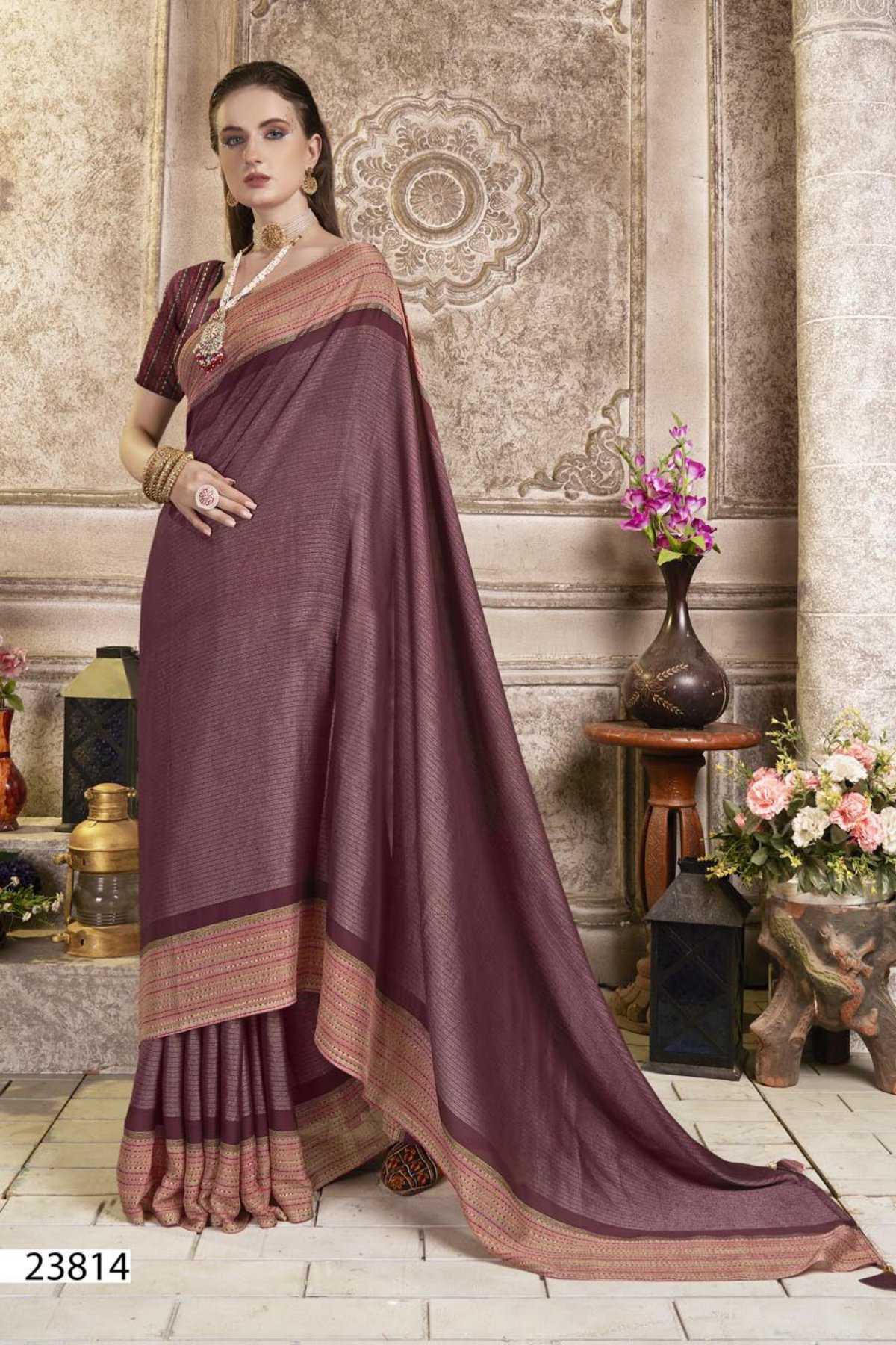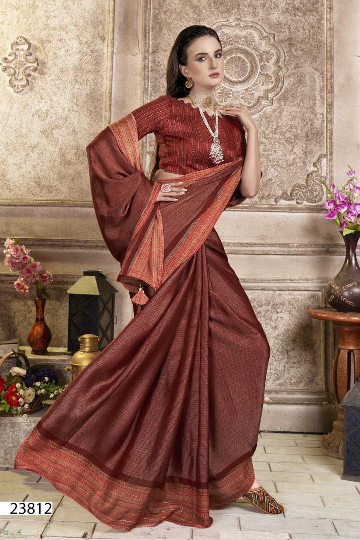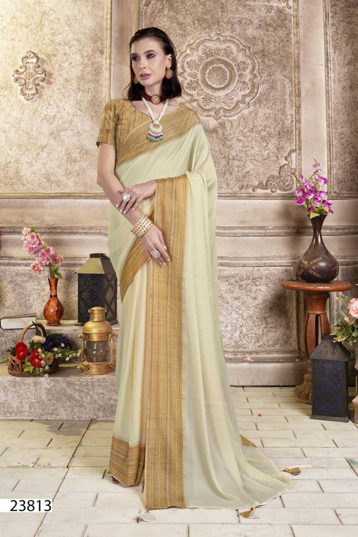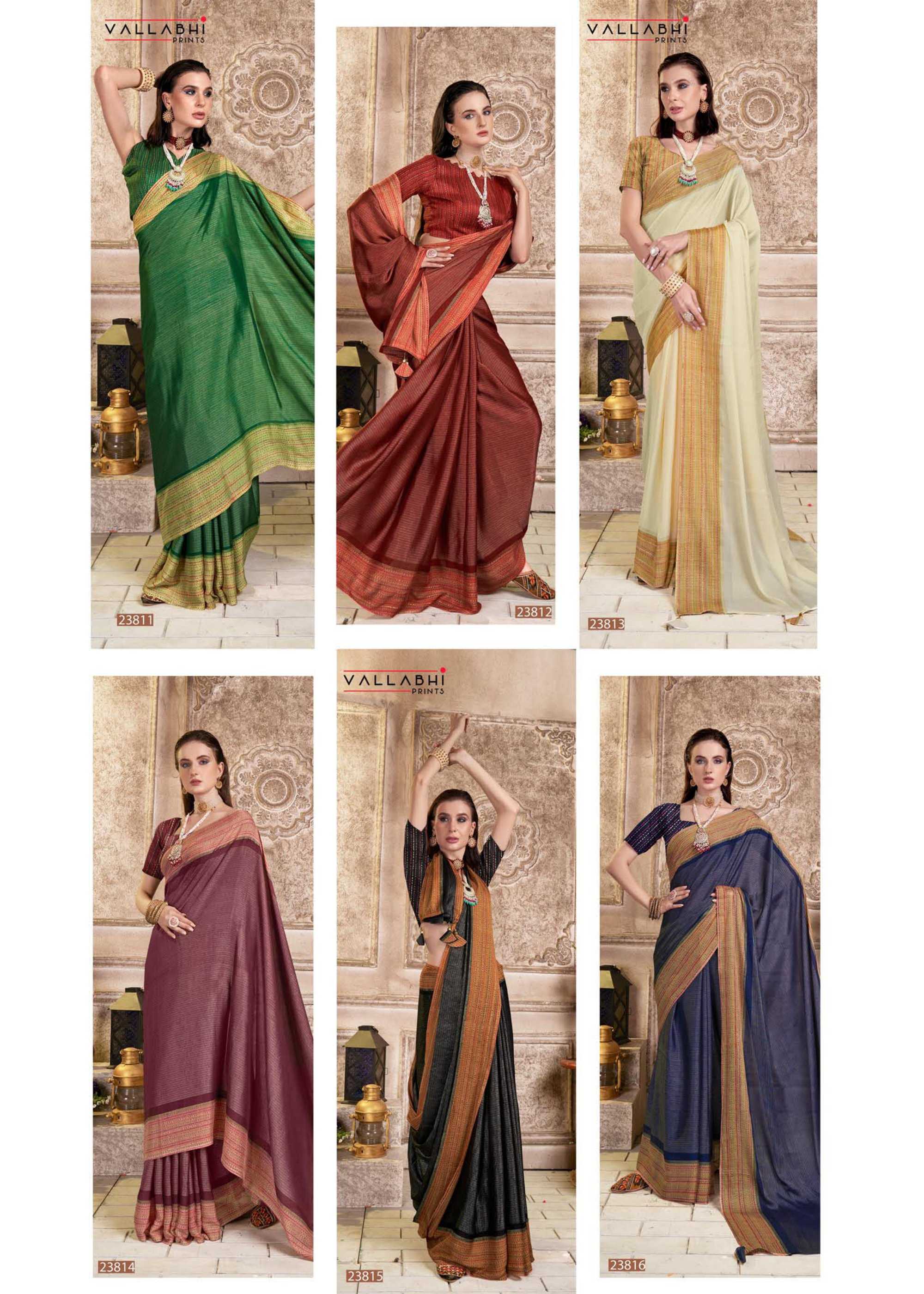 Looking for rosalie by vallabhi prints 23811-23816 series classy look designer brasso saree supplier Full Catalouge at Best Price? Buy Now rosalie by vallabhi prints 23811-23816 series classy look designer brasso saree supplier at Wholesale Rate of Rs 5100 with Total 6 Pcs from authroized dealer and supplier of Vallabhi Prints Brand. Cost of Each piece is just only Rs 850 which is very low and affordable price to resale the product in your retail store. rrgandhi is Surat based Wholesale Supplier & Dealer of Vallabhi Prints Brand. Click on Brand name to Know more about Brand's products.