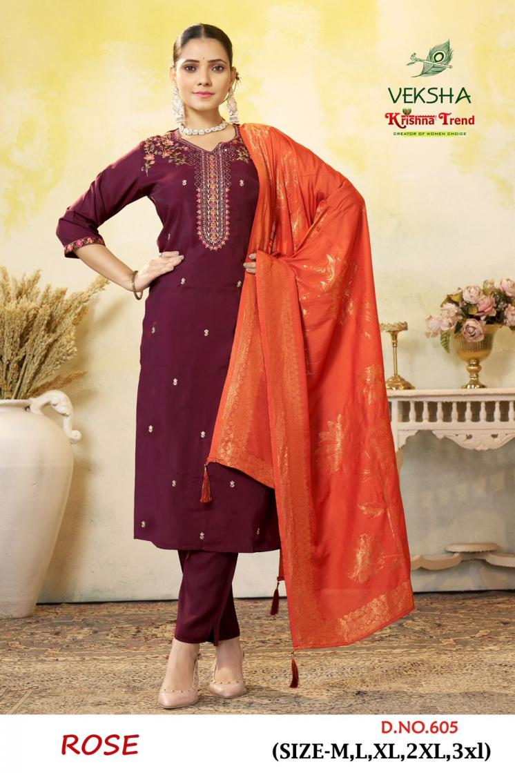 Looking for ROSE BY VEKSHA KRISHNA TREND UNIQUE ROMAN DIED FULL STITCH SUITS Full Catalouge at Best Price? Buy Now ROSE BY VEKSHA KRISHNA TREND UNIQUE ROMAN DIED FULL STITCH SUITS at Wholesale Rate of Rs 6120 with Total 6 Pcs from authroized dealer and supplier of KRISHNA TRENDZ Brand. Cost of Each piece is just only Rs 1020 which is very low and affordable price to resale the product in your retail store. rrgandhi is Surat based Wholesale Supplier & Dealer of KRISHNA TRENDZ Brand. Click on Brand name to Know more about Brand's products.