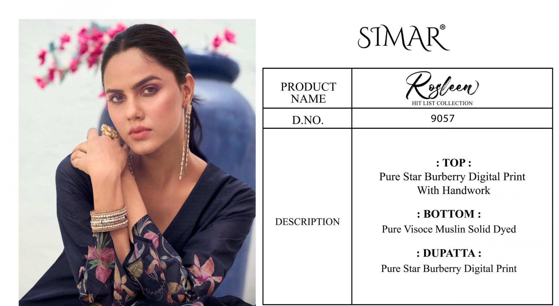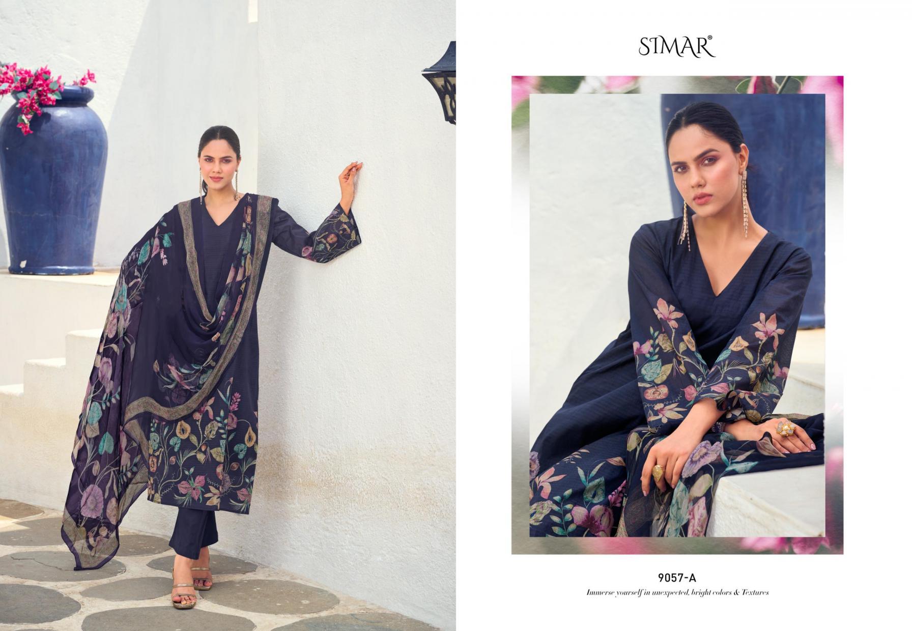 Looking for ROSLEEN HITLIST SIMAR GLOSSY DIGITAL PRINT UNSTITCH SUIT COLLECTION Full Catalouge at Best Price? Buy Now ROSLEEN HITLIST SIMAR GLOSSY DIGITAL PRINT UNSTITCH SUIT COLLECTION at Wholesale Rate of Rs 6780 with Total 4 Pcs from authroized dealer and supplier of Simar Brand. Cost of Each piece is just only Rs 1695 which is very low and affordable price to resale the product in your retail store. rrgandhi is Surat based Wholesale Supplier & Dealer of Simar Brand. Click on Brand name to Know more about Brand's products.