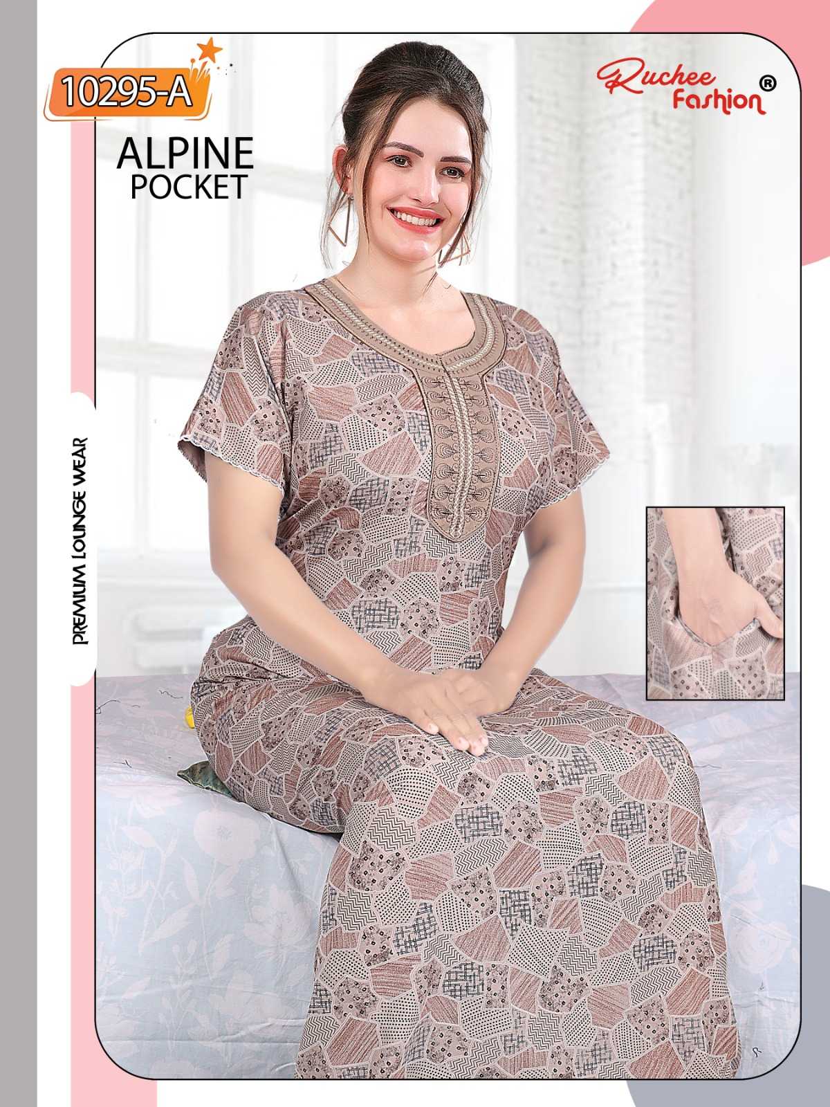 Looking for ruchee fashion alpine pocket readymade regular wear women nighty Full Catalouge at Best Price? Buy Now ruchee fashion alpine pocket readymade regular wear women nighty at Wholesale Rate of Rs 17220 with Total 42 Pcs from authroized dealer and supplier of Brand. Cost of Each piece is just only Rs 410 which is very low and affordable price to resale the product in your retail store. rrgandhi is Surat based Wholesale Supplier & Dealer of Brand. Click on Brand name to Know more about Brand's products.