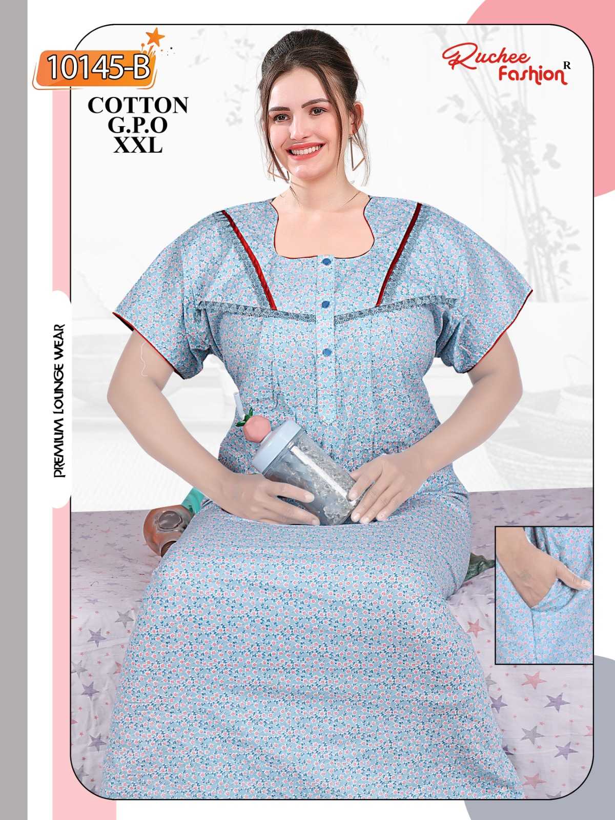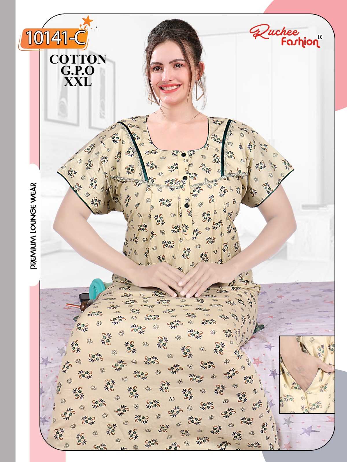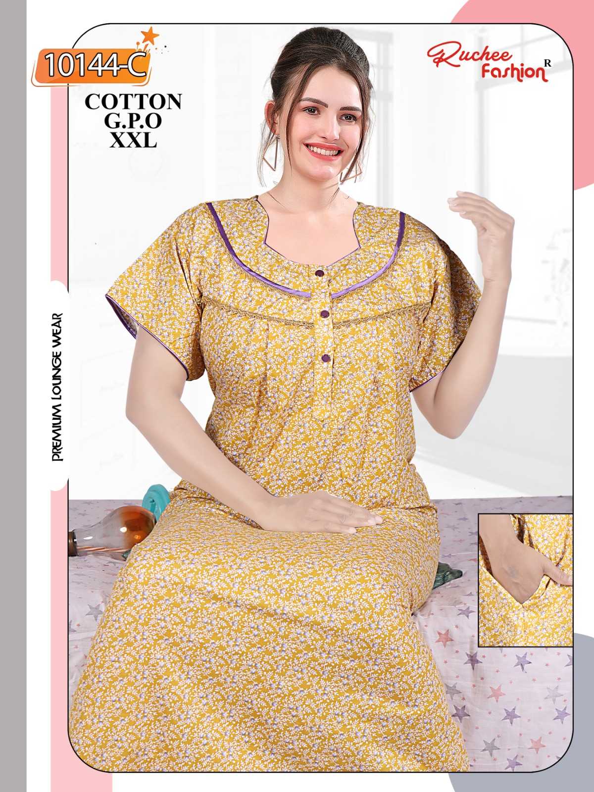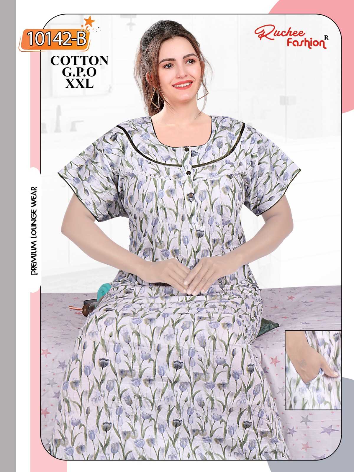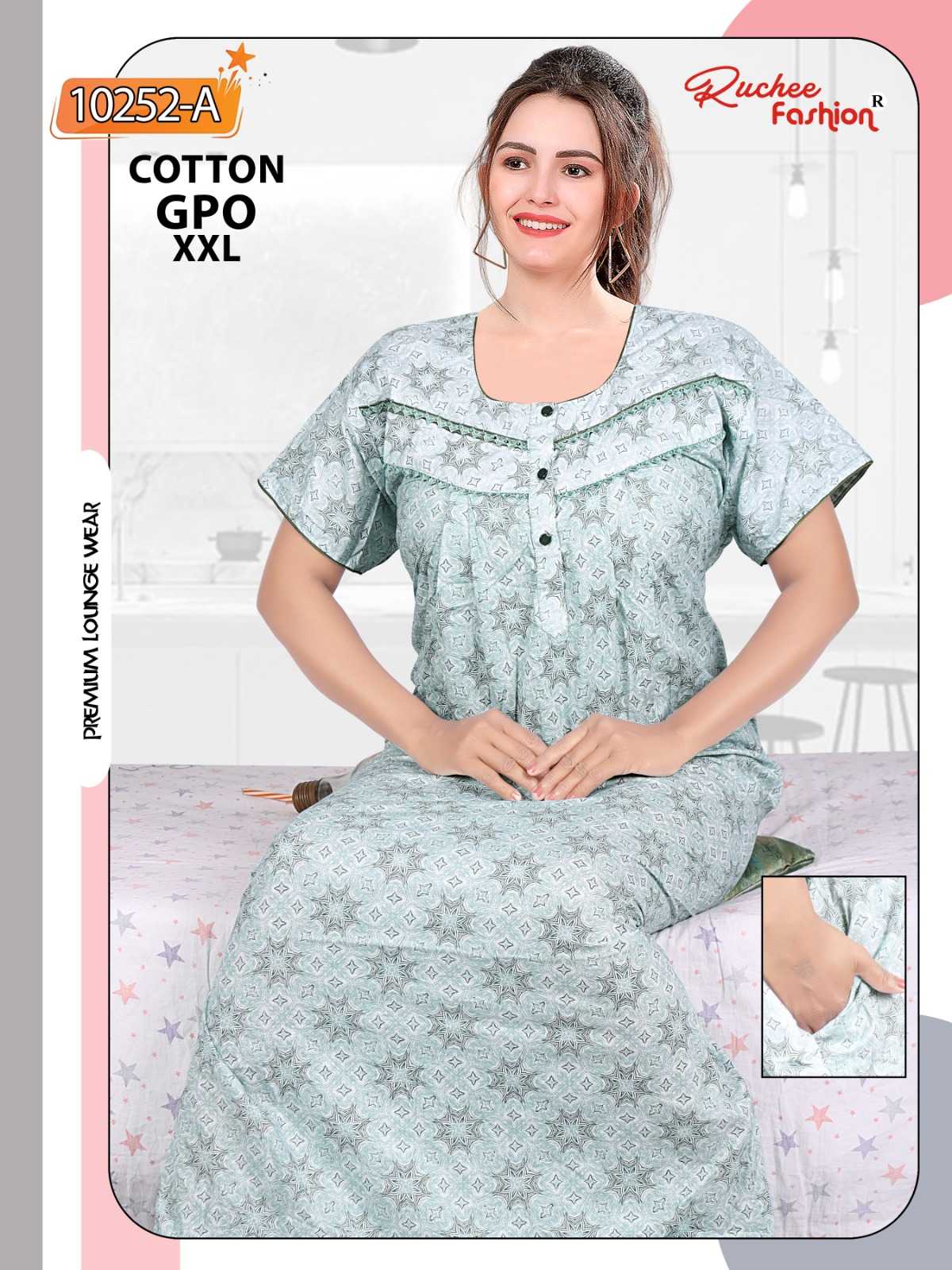 Looking for ruchee fashion cotton gpo fully stitch women night exports Full Catalouge at Best Price? Buy Now ruchee fashion cotton gpo fully stitch women night exports at Wholesale Rate of Rs 12960 with Total 32 Pcs from authroized dealer and supplier of Brand. Cost of Each piece is just only Rs 405 which is very low and affordable price to resale the product in your retail store. rrgandhi is Surat based Wholesale Supplier & Dealer of Brand. Click on Brand name to Know more about Brand's products.