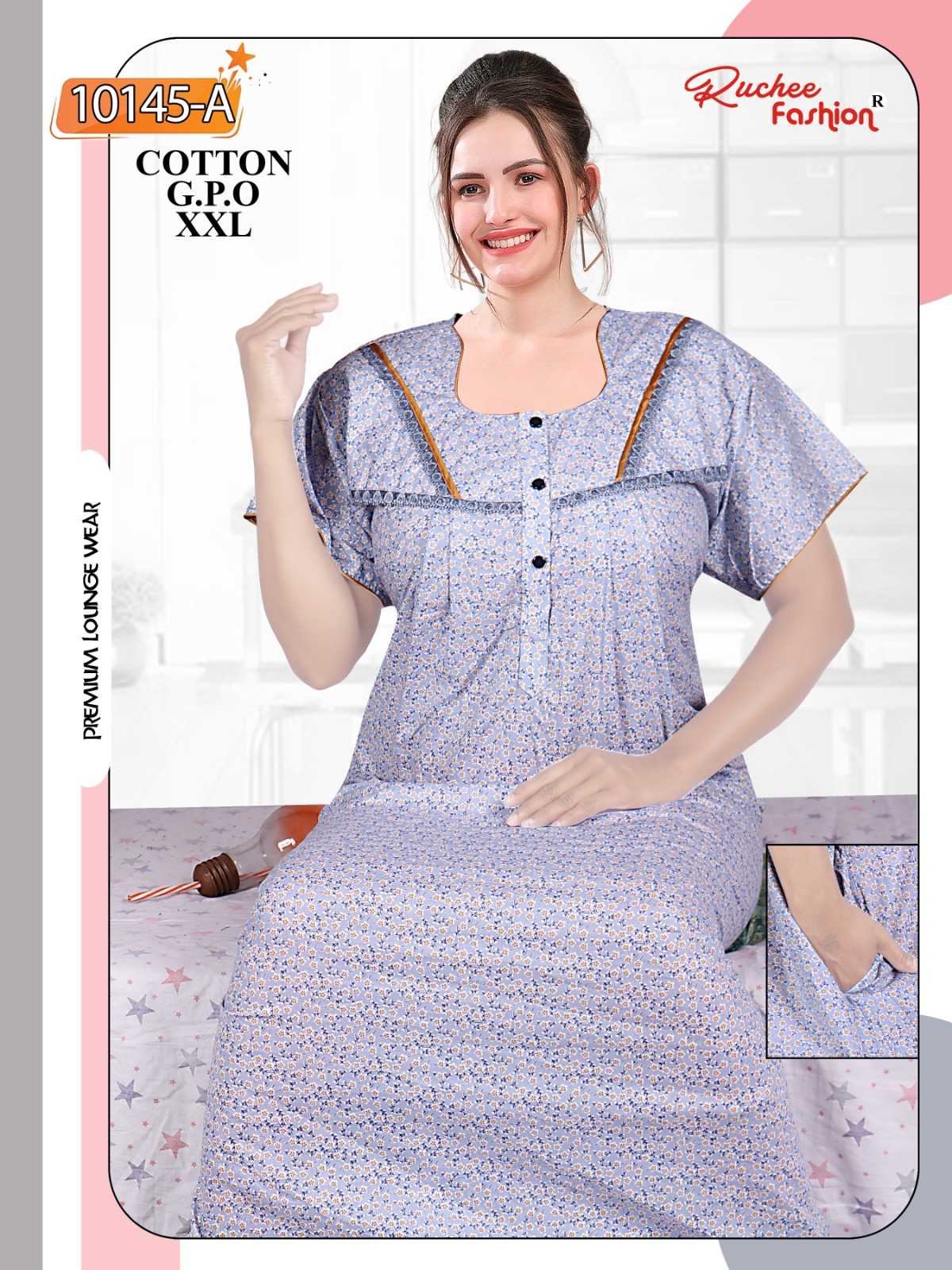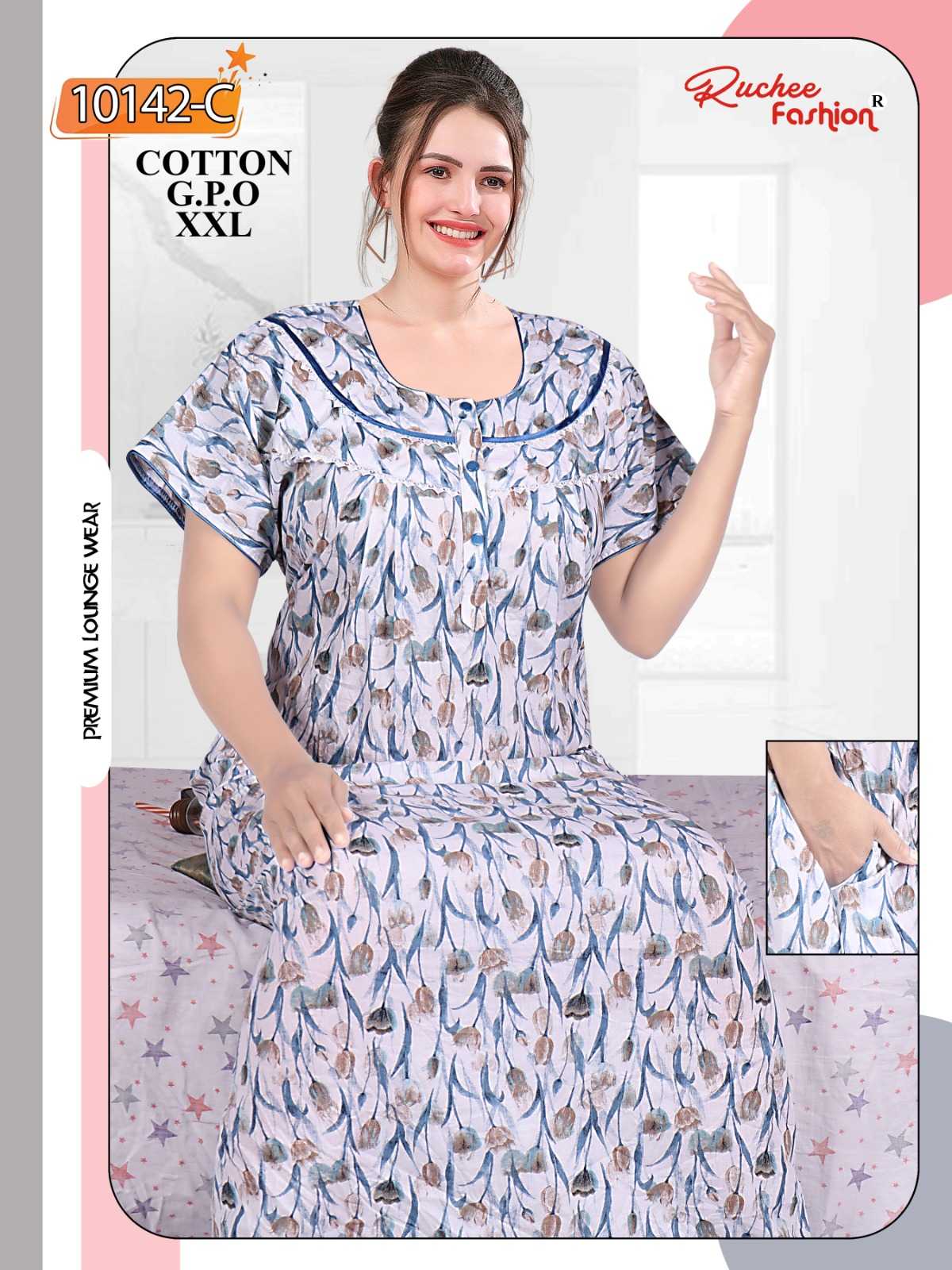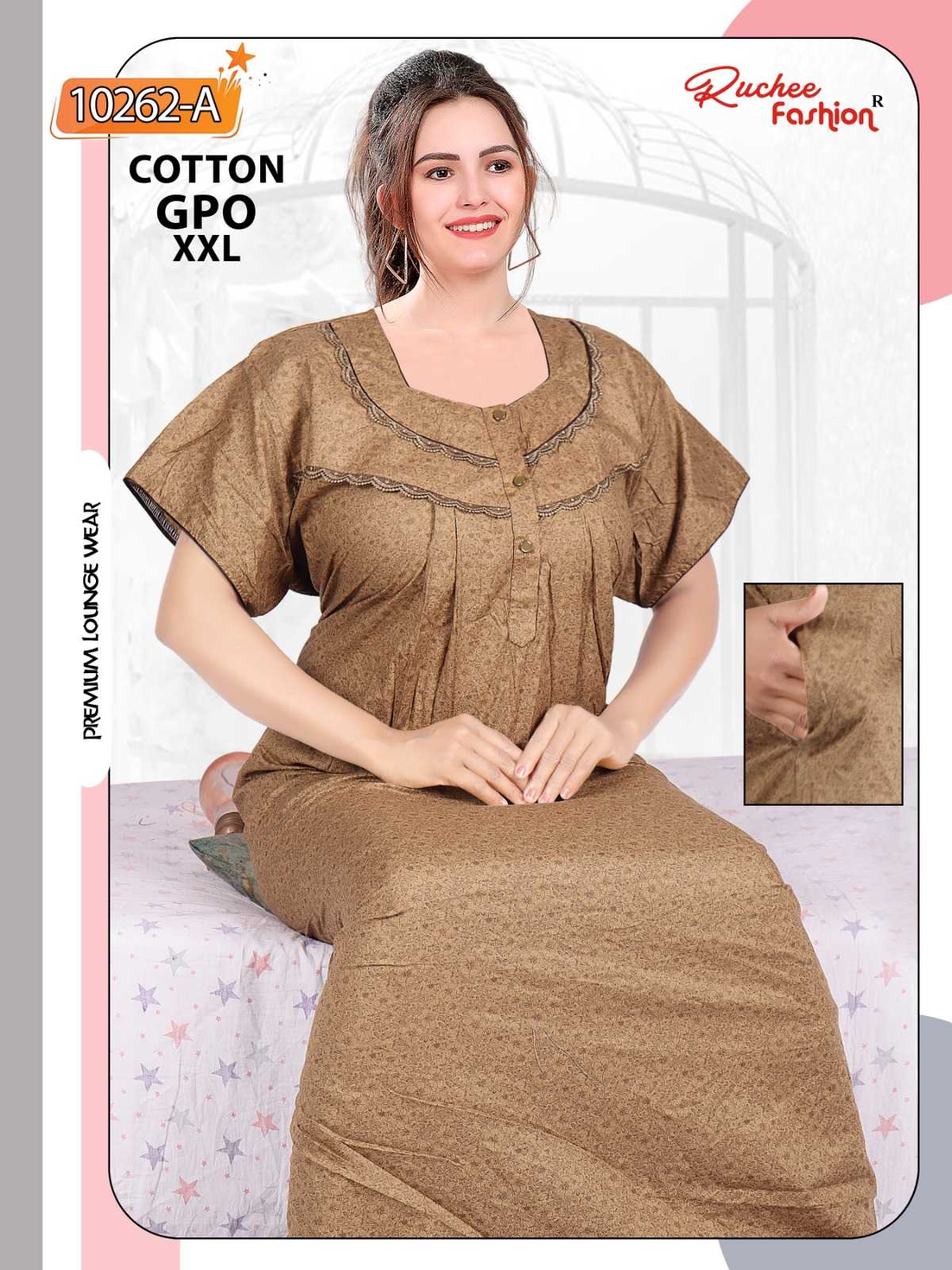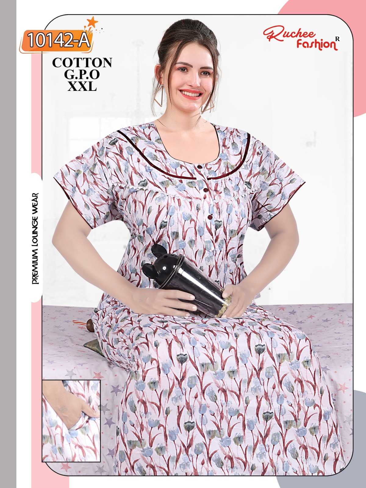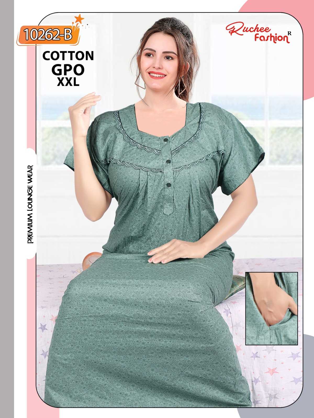 Looking for ruchee fashion cotton gpo fully stitch women night exports Full Catalouge at Best Price? Buy Now ruchee fashion cotton gpo fully stitch women night exports at Wholesale Rate of Rs 12960 with Total 32 Pcs from authroized dealer and supplier of Brand. Cost of Each piece is just only Rs 405 which is very low and affordable price to resale the product in your retail store. rrgandhi is Surat based Wholesale Supplier & Dealer of Brand. Click on Brand name to Know more about Brand's products.