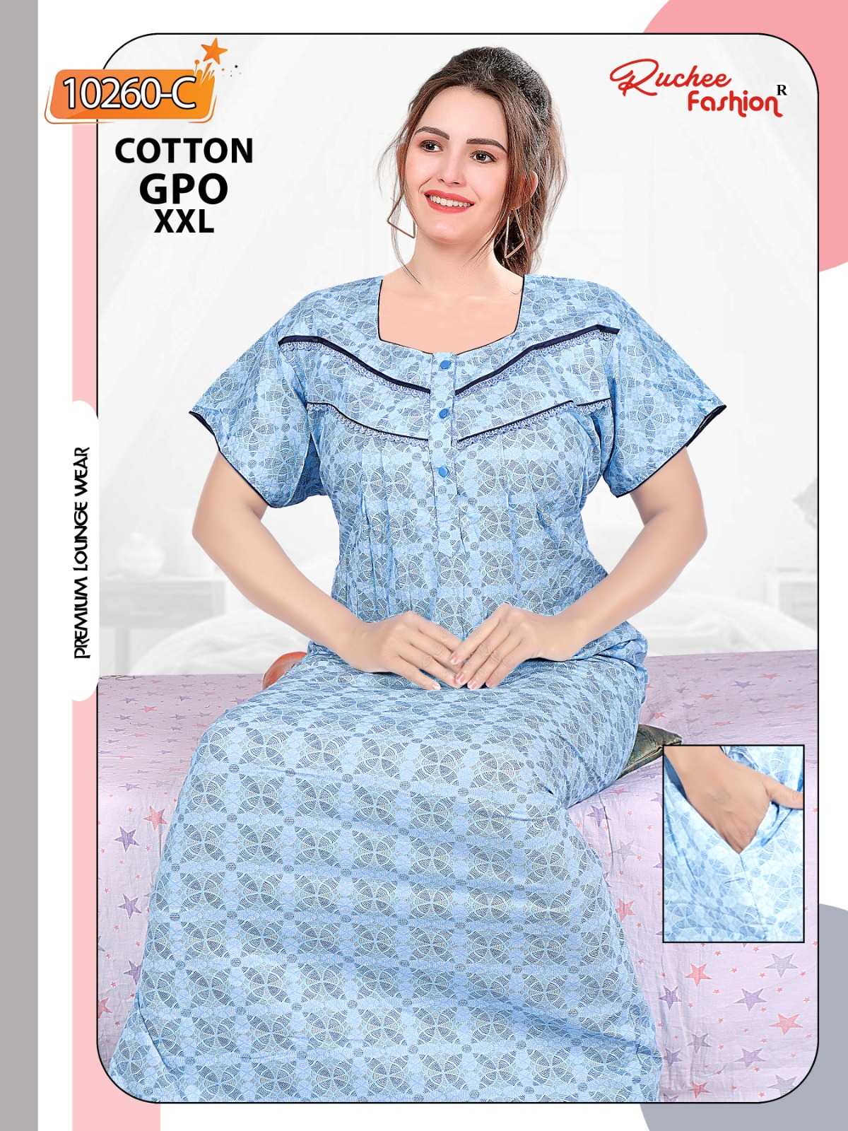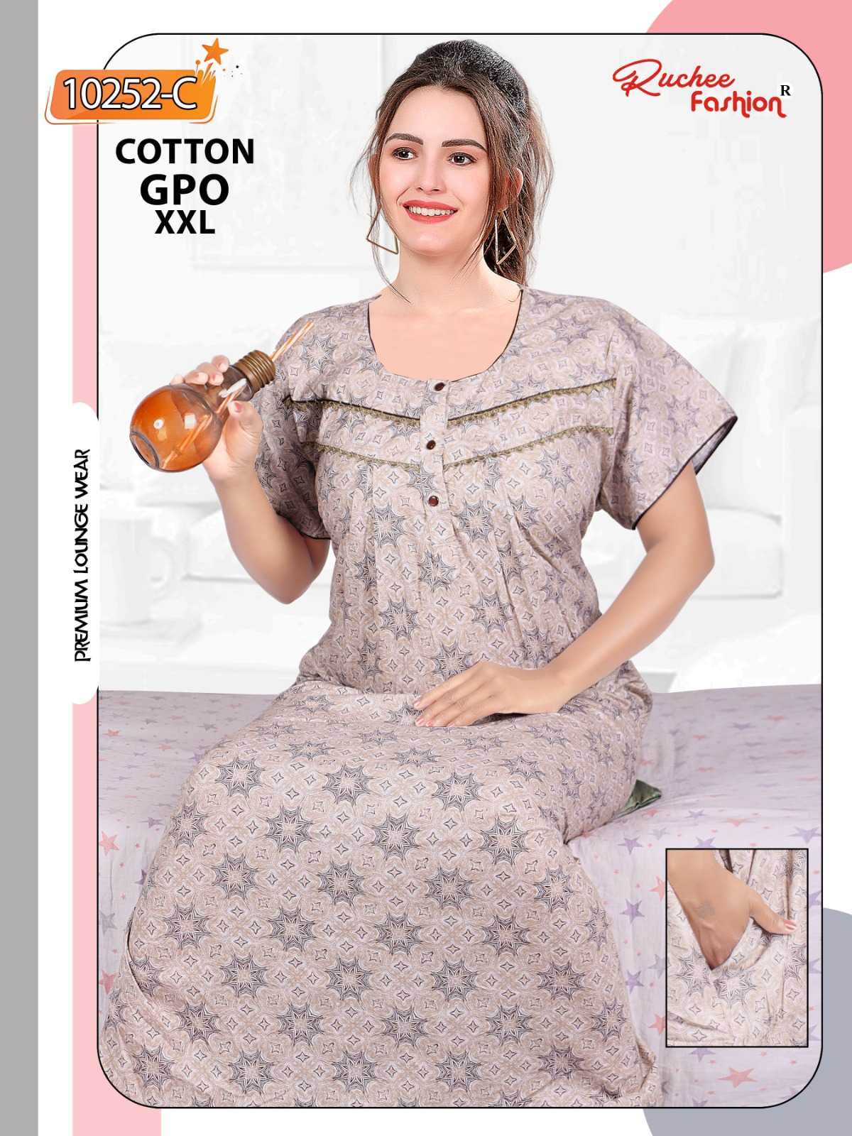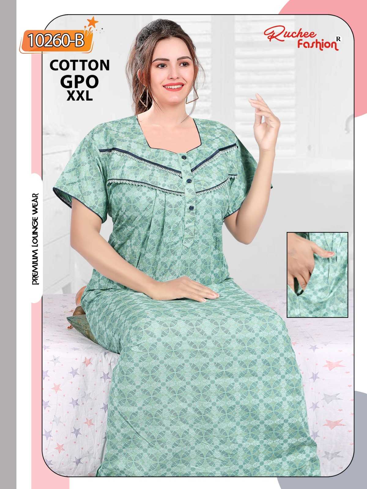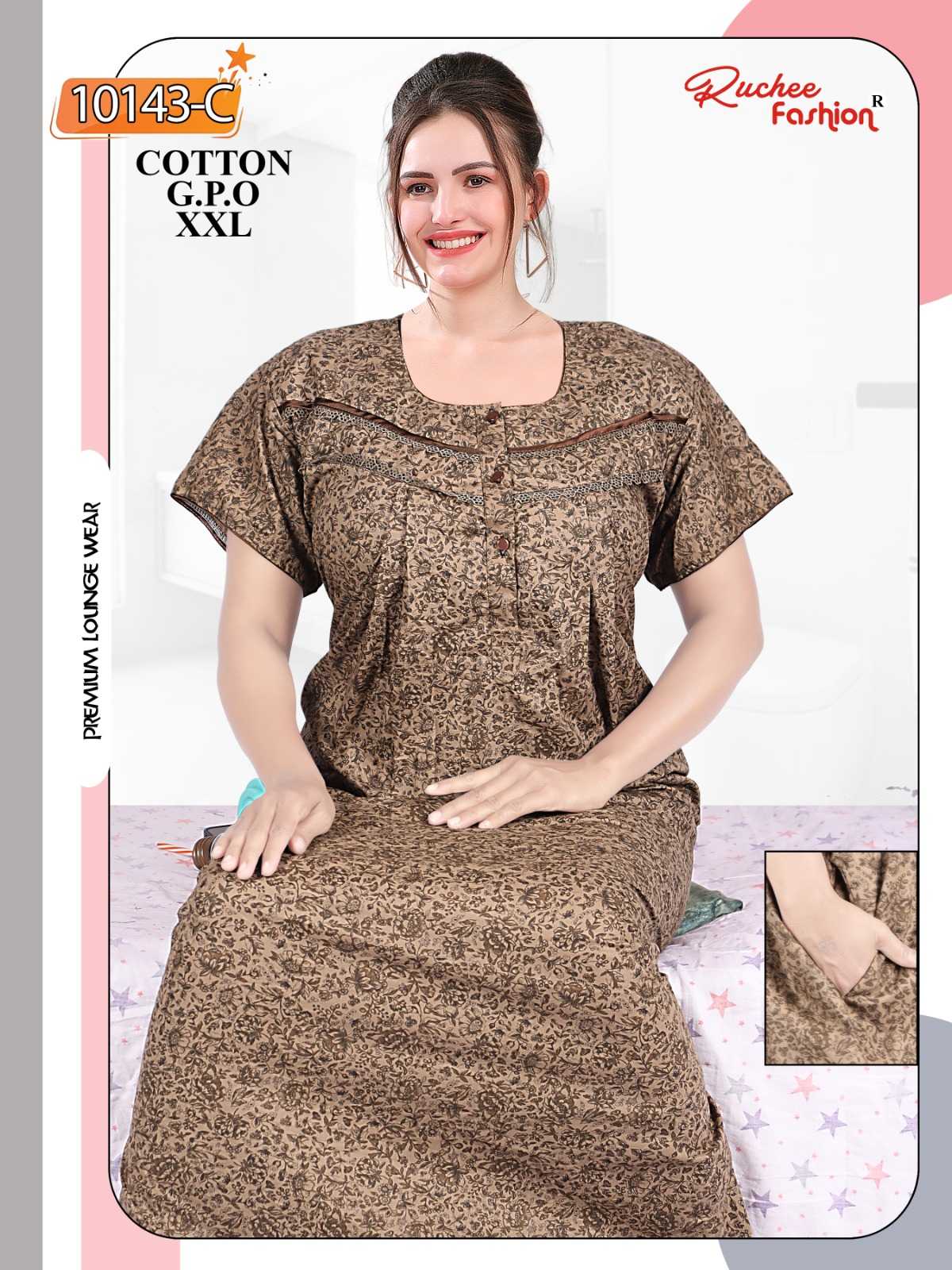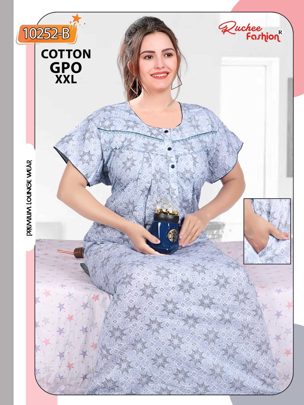 Looking for ruchee fashion cotton gpo fully stitch women night exports Full Catalouge at Best Price? Buy Now ruchee fashion cotton gpo fully stitch women night exports at Wholesale Rate of Rs 12960 with Total 32 Pcs from authroized dealer and supplier of Brand. Cost of Each piece is just only Rs 405 which is very low and affordable price to resale the product in your retail store. rrgandhi is Surat based Wholesale Supplier & Dealer of Brand. Click on Brand name to Know more about Brand's products.