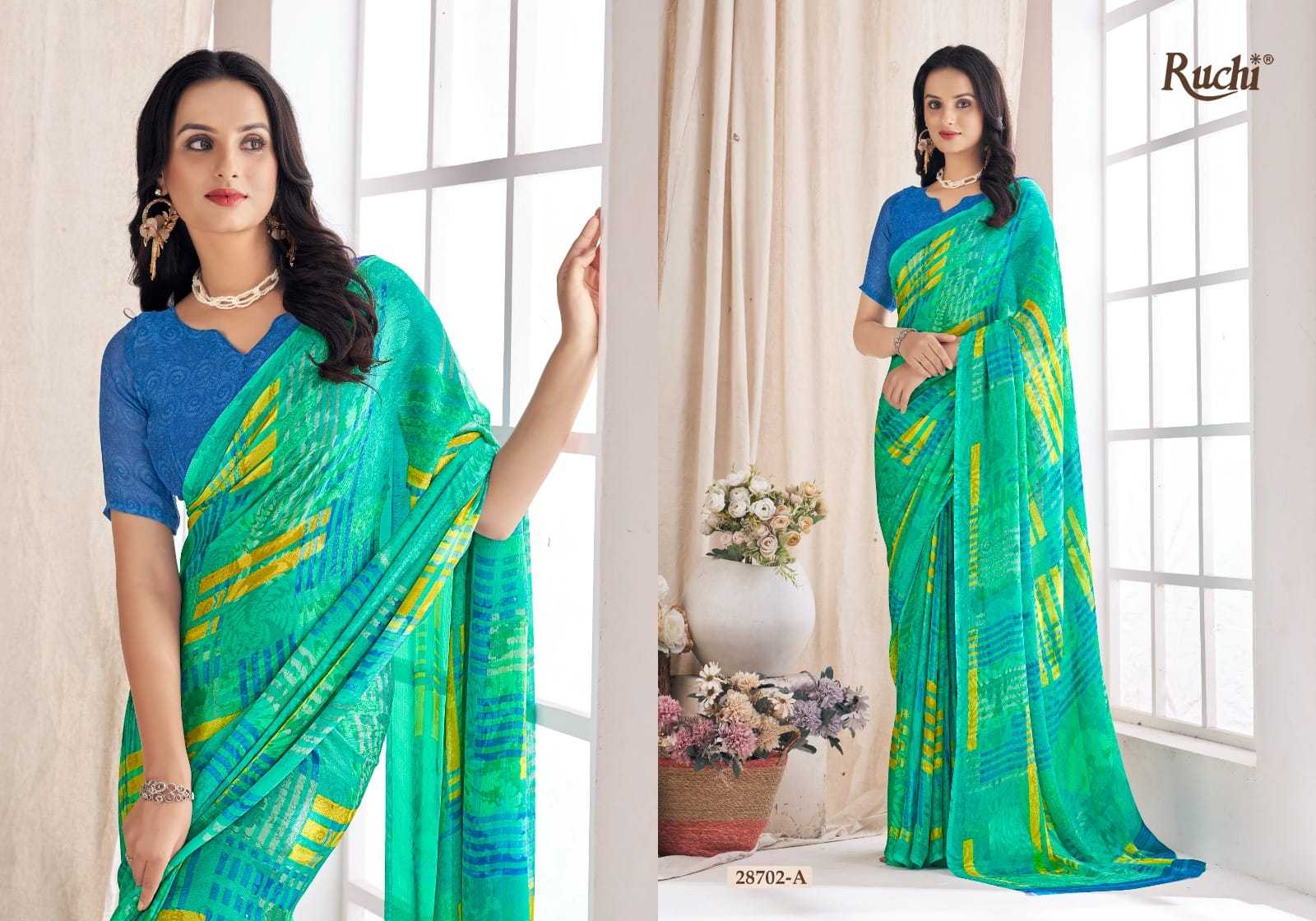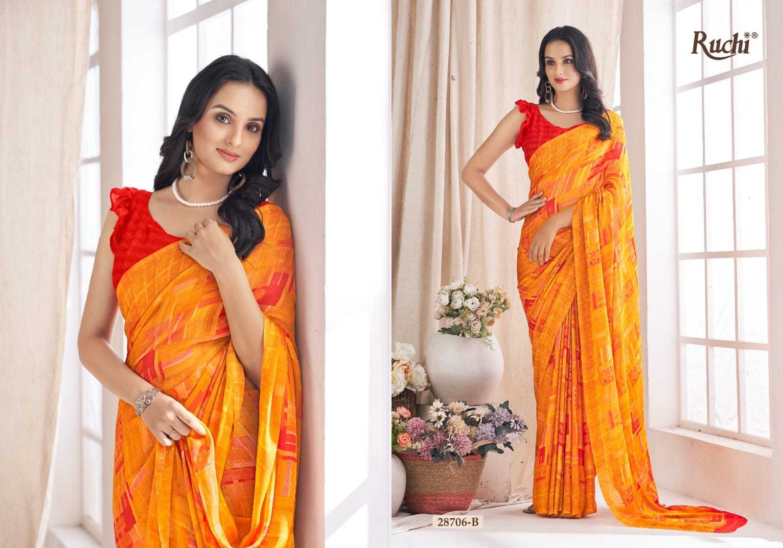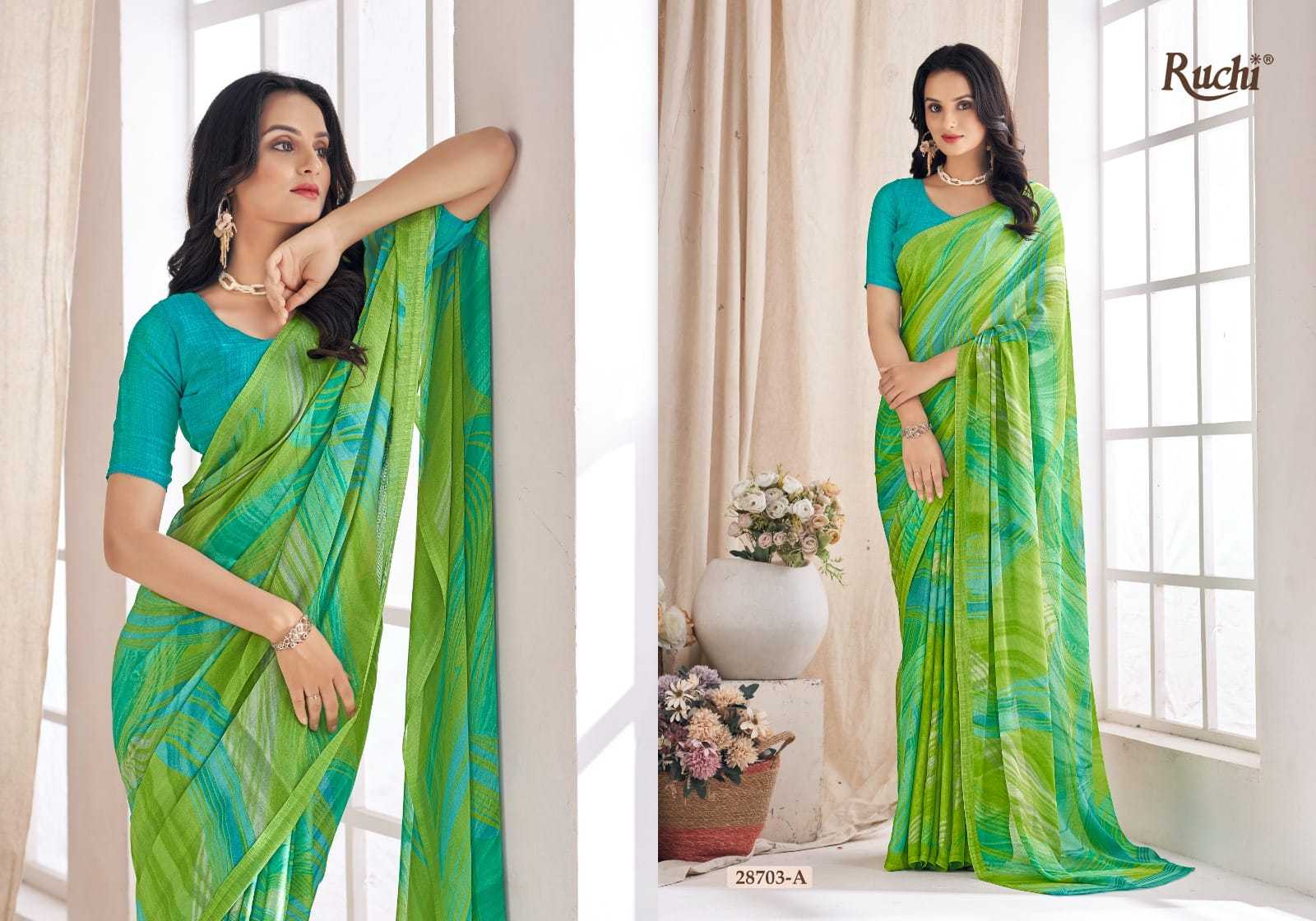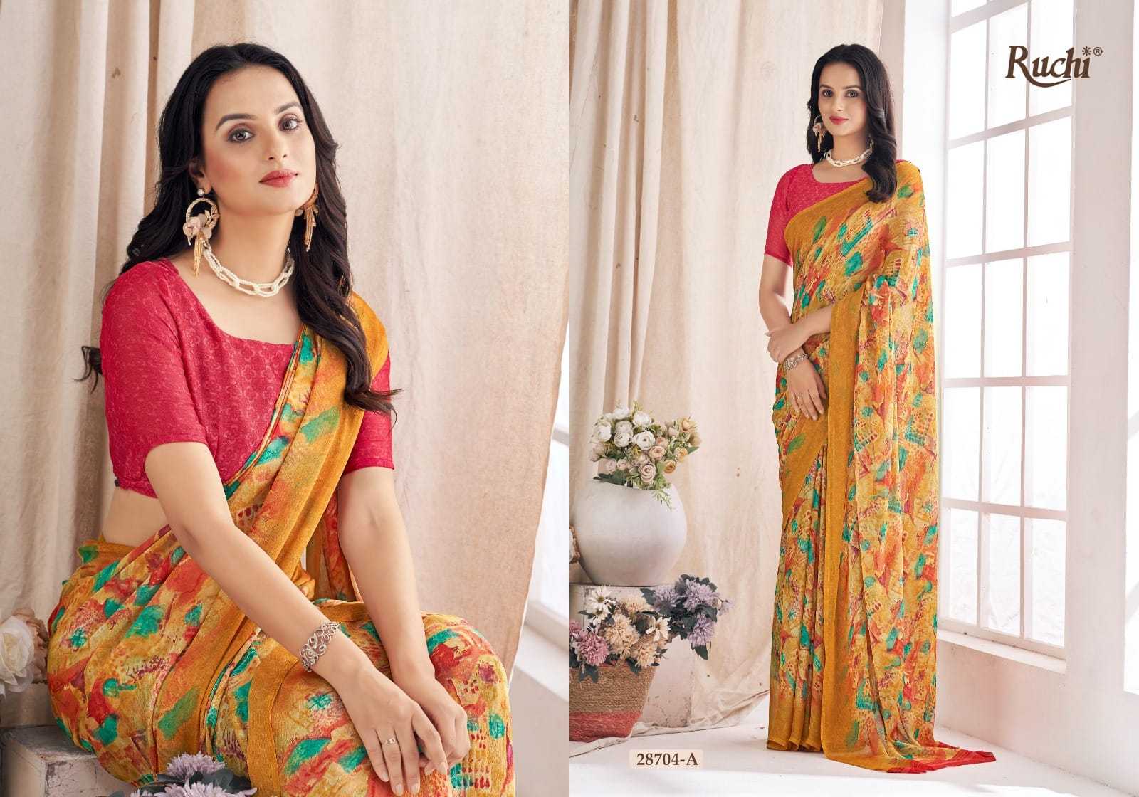 Looking for ruchi aahana vol 03 28701 a to 28706 b comfortable daily wear saree wholesaler Full Catalouge at Best Price? Buy Now ruchi aahana vol 03 28701 a to 28706 b comfortable daily wear saree wholesaler at Wholesale Rate of Rs 6600 with Total 12 Pcs from authroized dealer and supplier of Ruchi Brand. Cost of Each piece is just only Rs 550 which is very low and affordable price to resale the product in your retail store. rrgandhi is Surat based Wholesale Supplier & Dealer of Ruchi Brand. Click on Brand name to Know more about Brand's products.