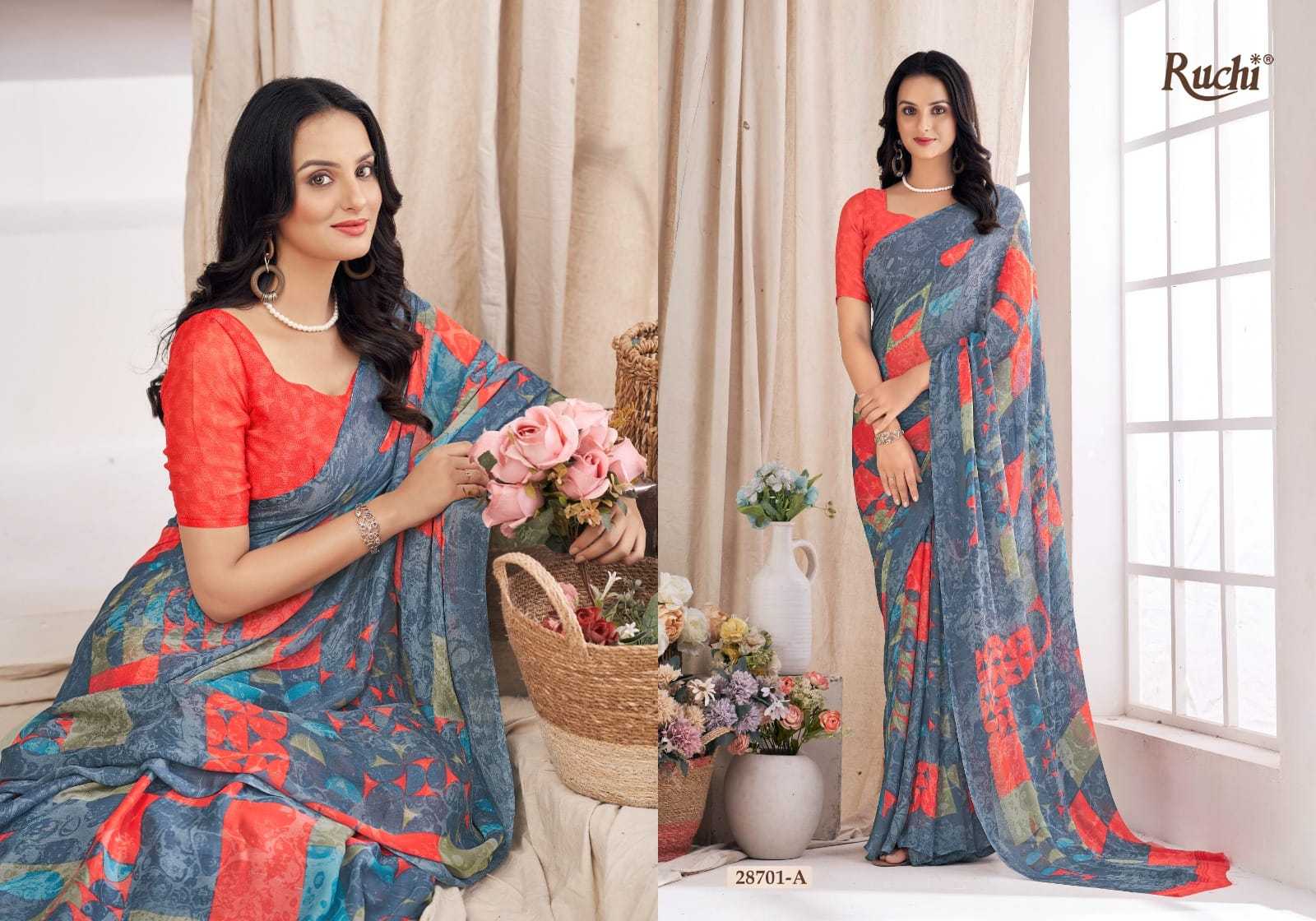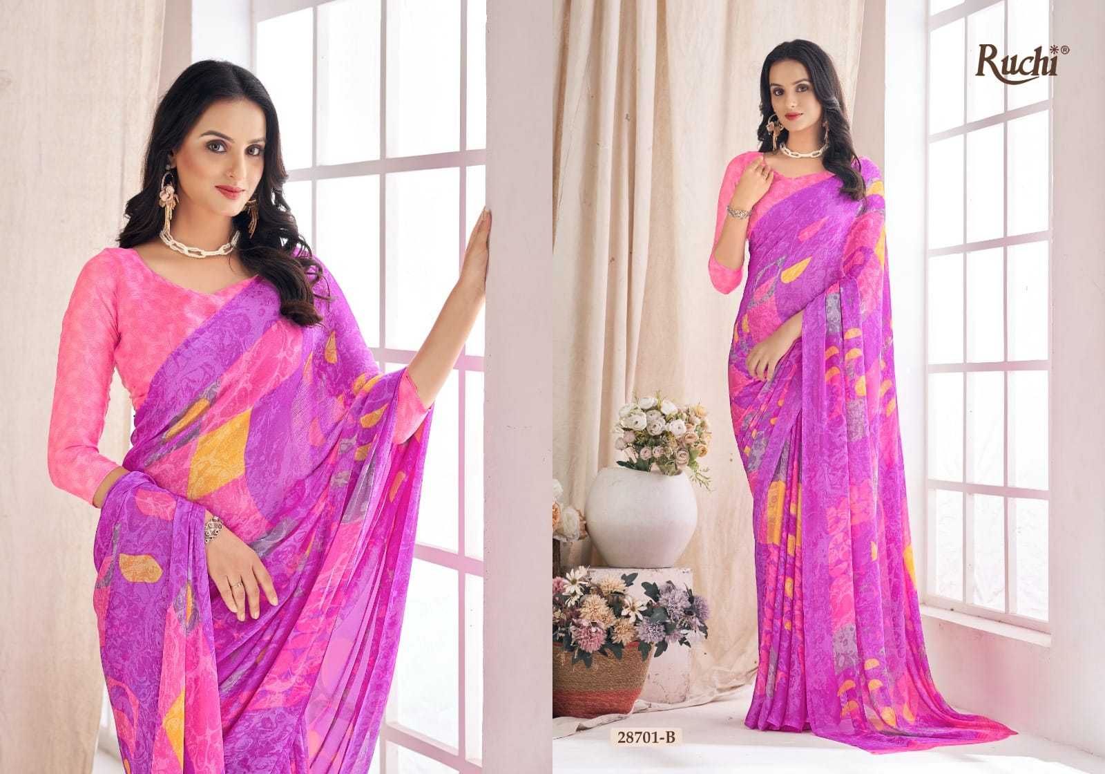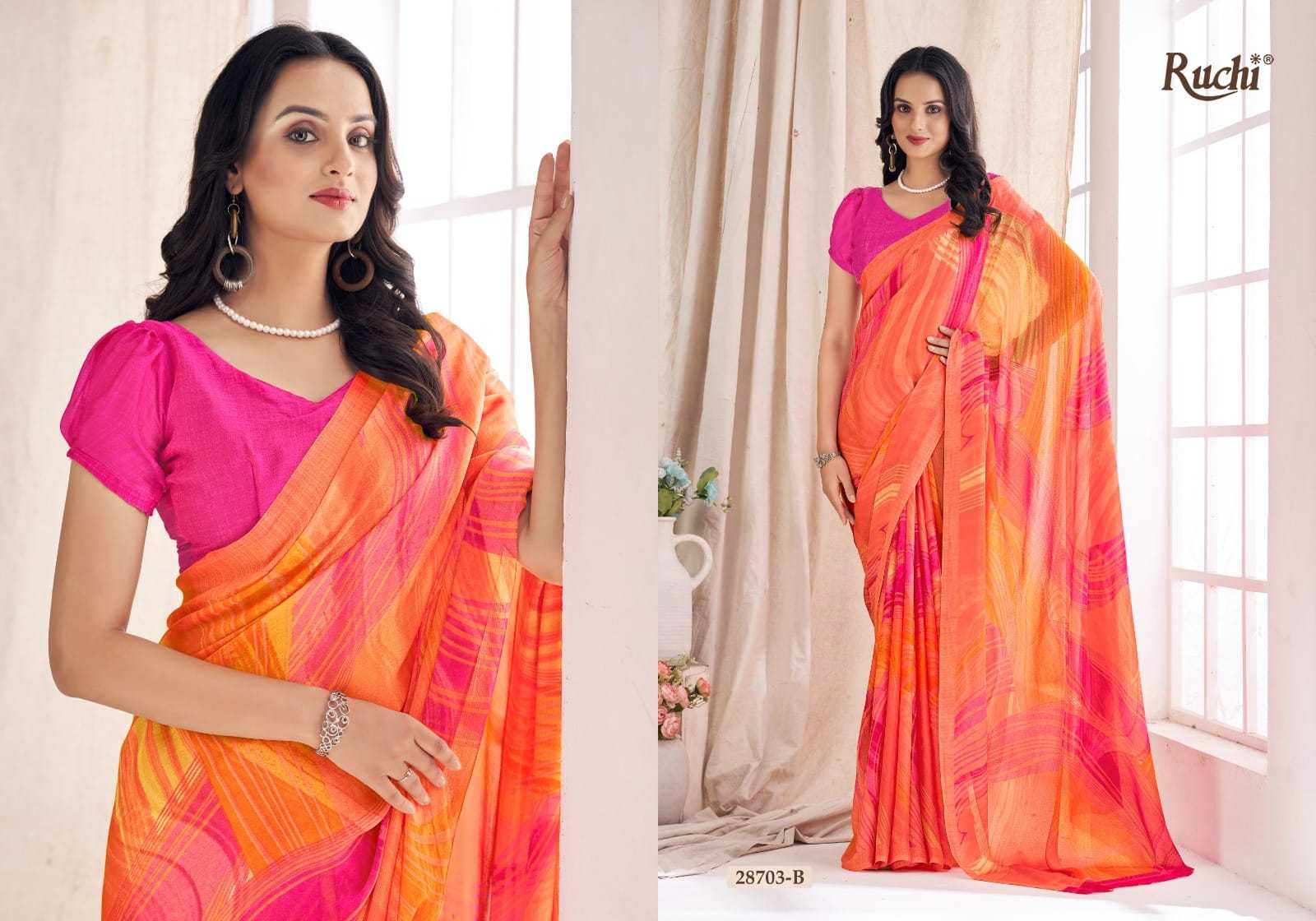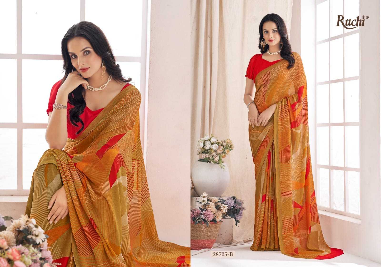 Looking for ruchi aahana vol 03 28701 a to 28706 b comfortable daily wear saree wholesaler Full Catalouge at Best Price? Buy Now ruchi aahana vol 03 28701 a to 28706 b comfortable daily wear saree wholesaler at Wholesale Rate of Rs 6600 with Total 12 Pcs from authroized dealer and supplier of Ruchi Brand. Cost of Each piece is just only Rs 550 which is very low and affordable price to resale the product in your retail store. rrgandhi is Surat based Wholesale Supplier & Dealer of Ruchi Brand. Click on Brand name to Know more about Brand's products.