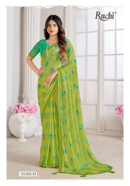 Looking for ruchi vanilla vol 5 beautiful digital print chiffon saree Full Catalouge at Best Price? Buy Now ruchi vanilla vol 5 beautiful digital print chiffon saree at Wholesale Rate of Rs 5720 with Total 10 Pcs from authroized dealer and supplier of Ruchi Brand. Cost of Each piece is just only Rs 572 which is very low and affordable price to resale the product in your retail store. rrgandhi is Surat based Wholesale Supplier & Dealer of Ruchi Brand. Click on Brand name to Know more about Brand's products.