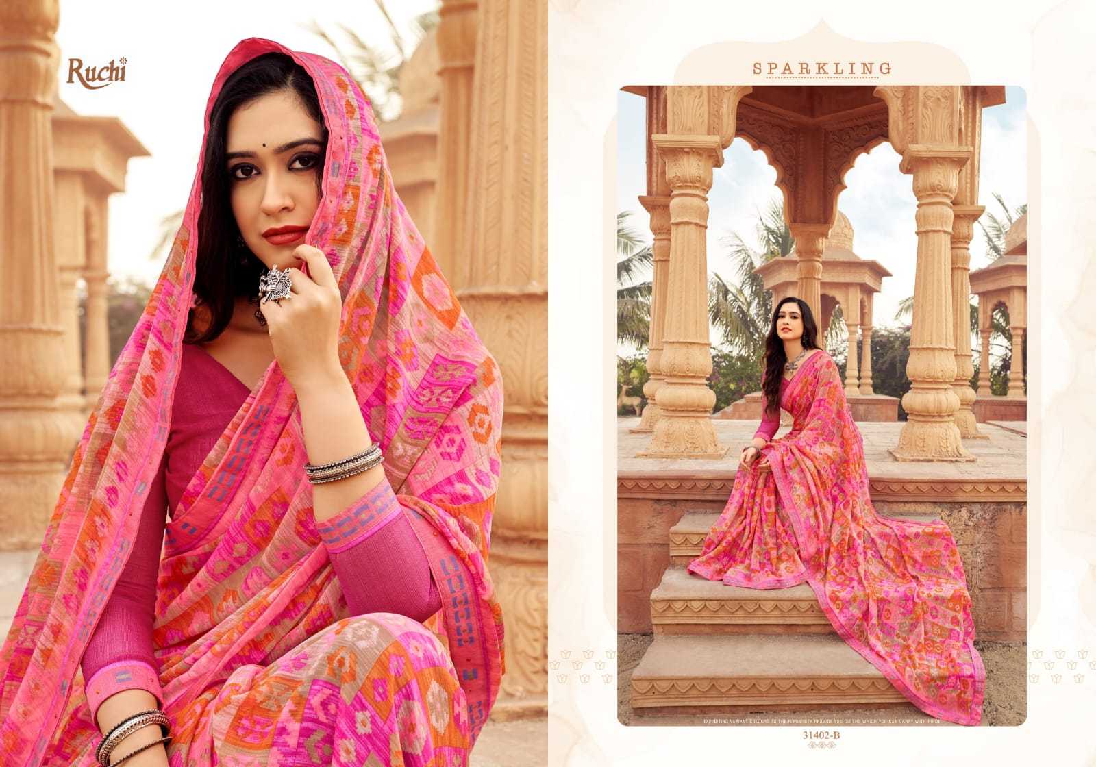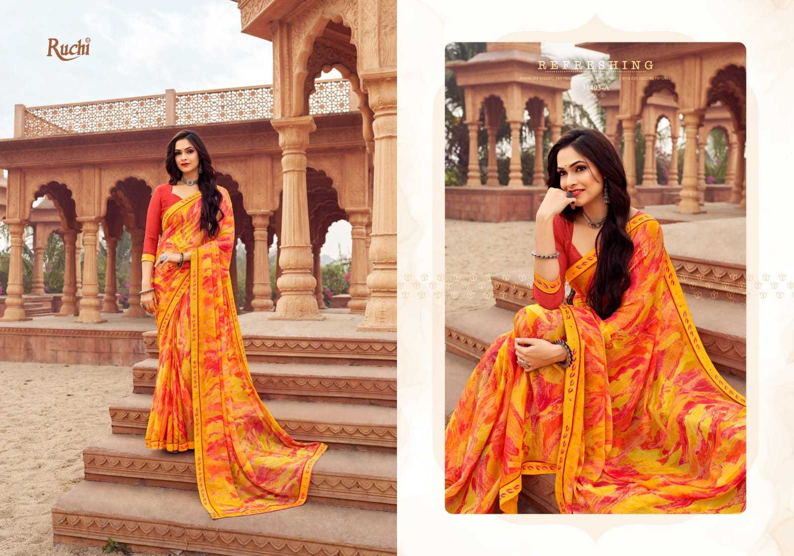 Looking for ruchi vanilla vol 6 printed fancy chiffon saree exporter Full Catalouge at Best Price? Buy Now ruchi vanilla vol 6 printed fancy chiffon saree exporter at Wholesale Rate of Rs 6864 with Total 12 Pcs from authroized dealer and supplier of Ruchi Brand. Cost of Each piece is just only Rs 572 which is very low and affordable price to resale the product in your retail store. rrgandhi is Surat based Wholesale Supplier & Dealer of Ruchi Brand. Click on Brand name to Know more about Brand's products.