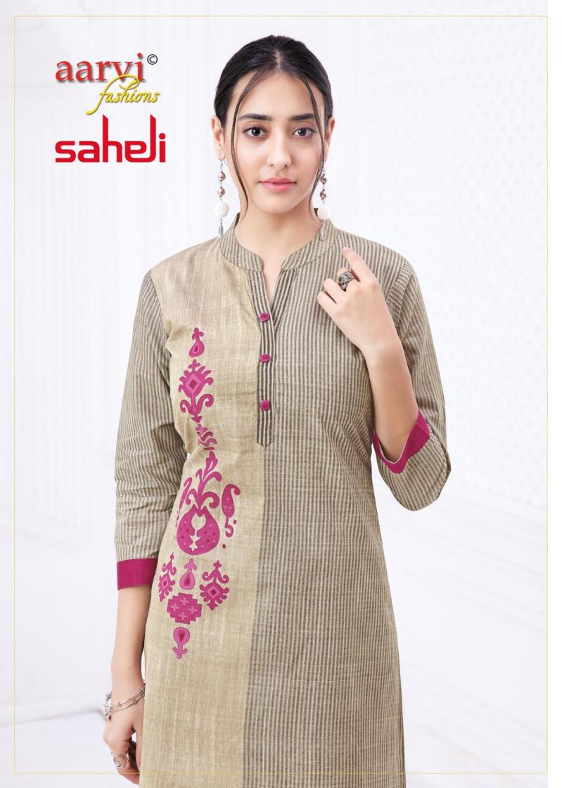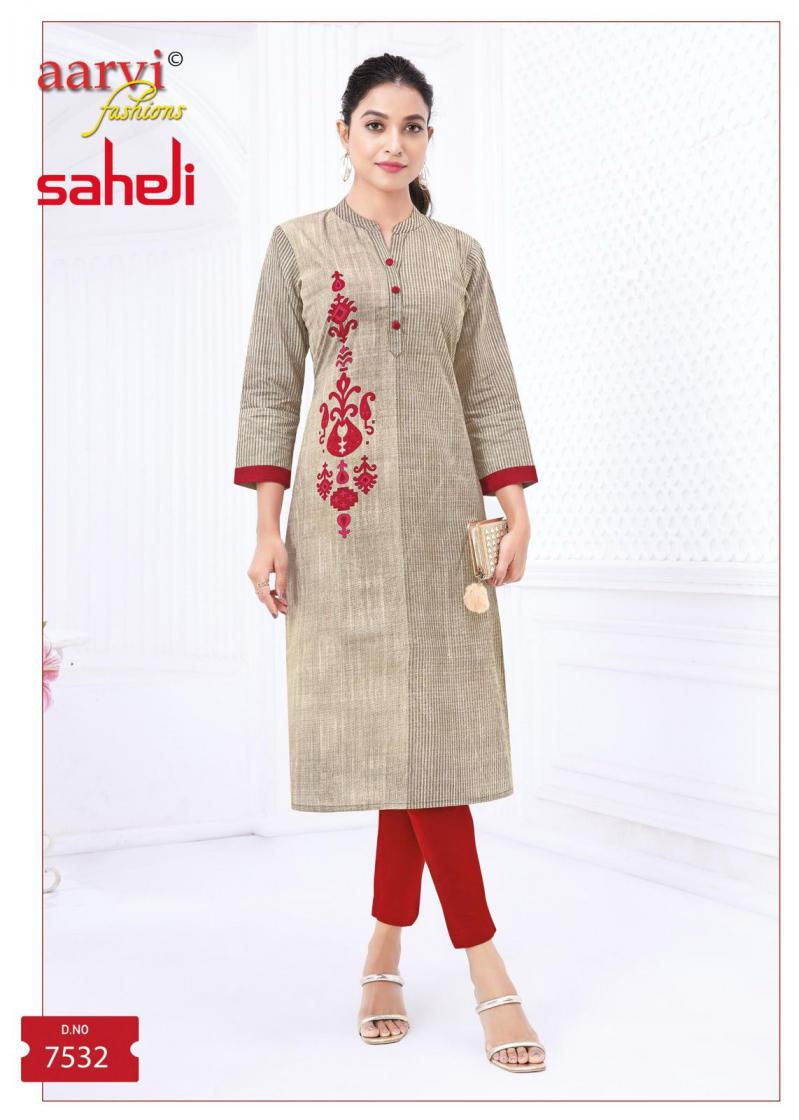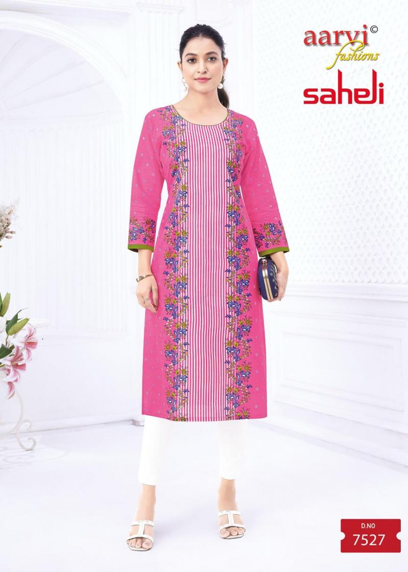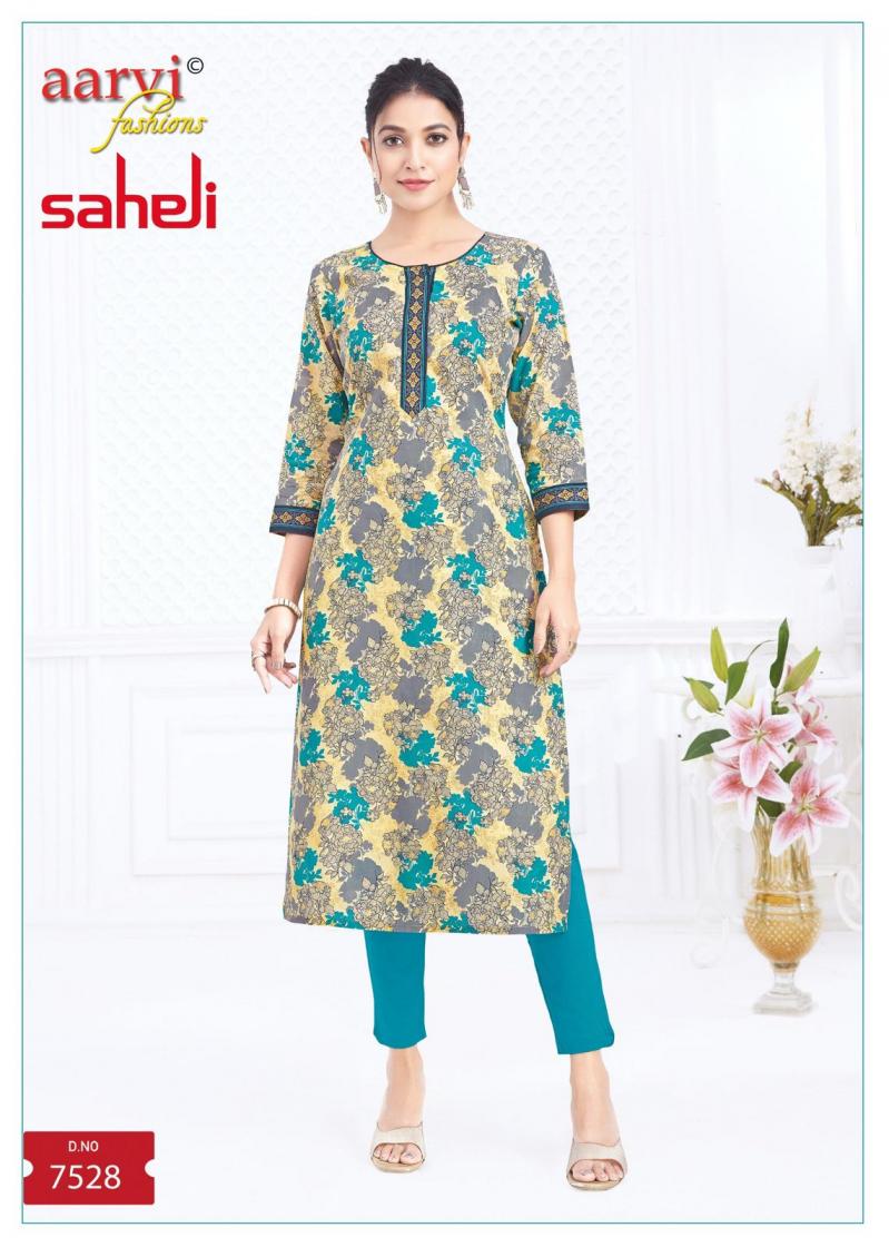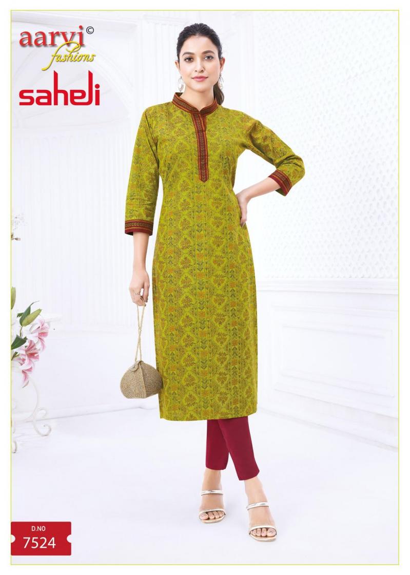 Looking for SAHELI VOL 17 BY AARVI FASHION AMAZING COTTON FULL STITCH KURTI Full Catalouge at Best Price? Buy Now SAHELI VOL 17 BY AARVI FASHION AMAZING COTTON FULL STITCH KURTI at Wholesale Rate of Rs 7560 with Total 24 Pcs from authroized dealer and supplier of Aarvi Fashions Brand. Cost of Each piece is just only Rs 315 which is very low and affordable price to resale the product in your retail store. rrgandhi is Surat based Wholesale Supplier & Dealer of Aarvi Fashions Brand. Click on Brand name to Know more about Brand's products.