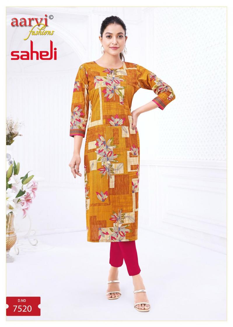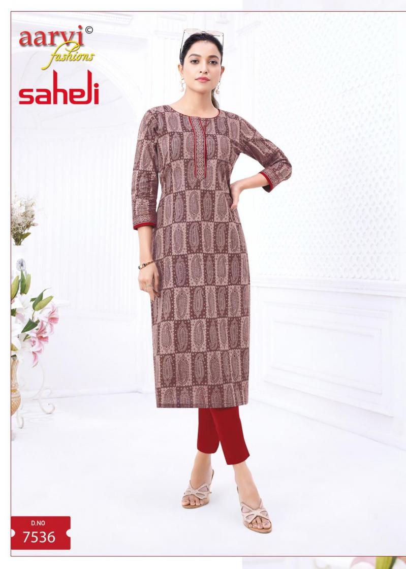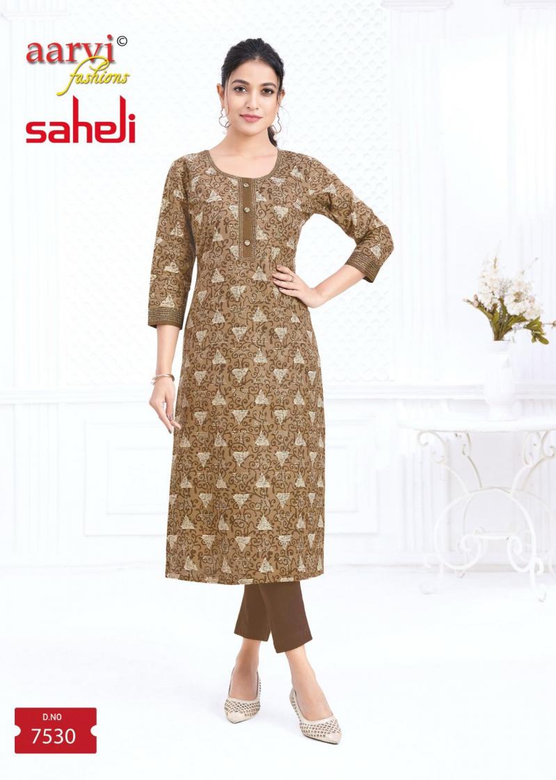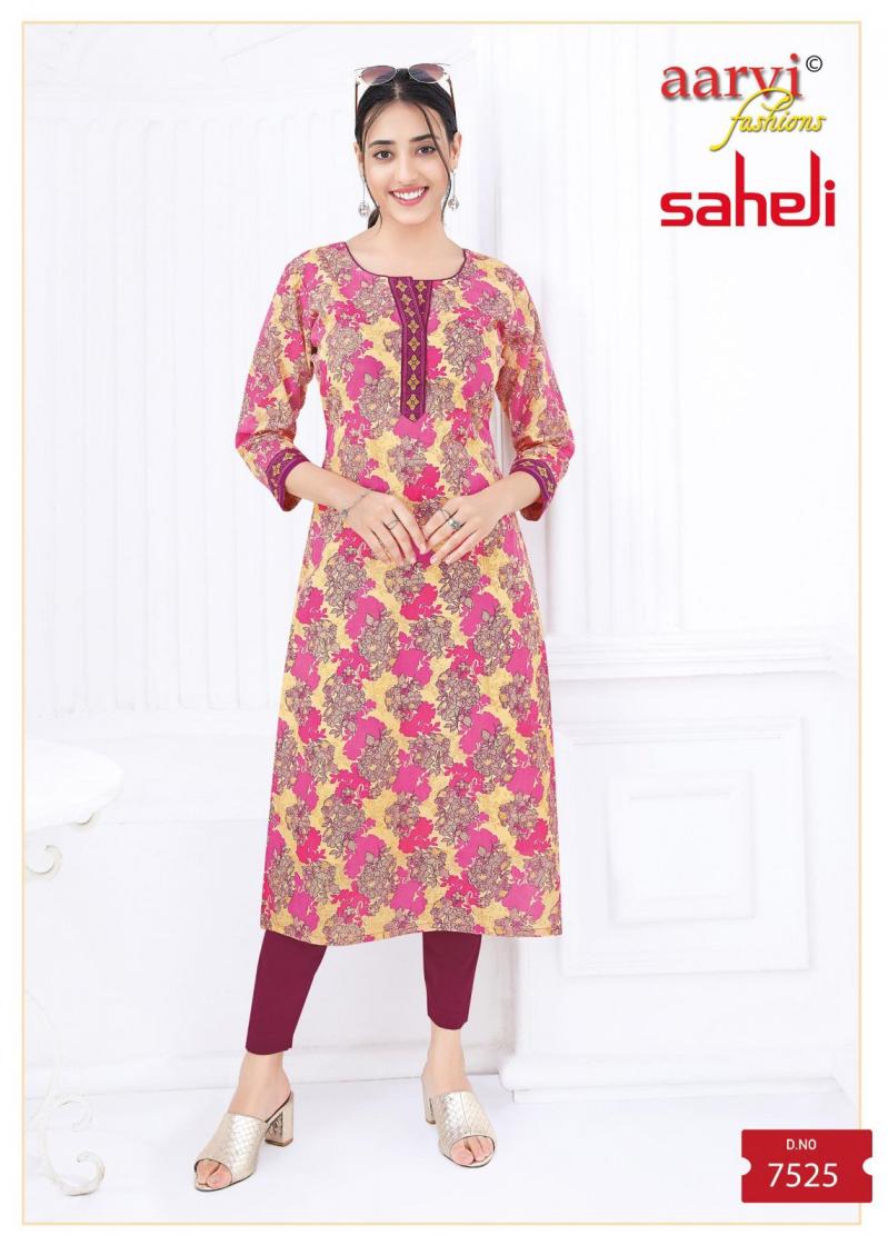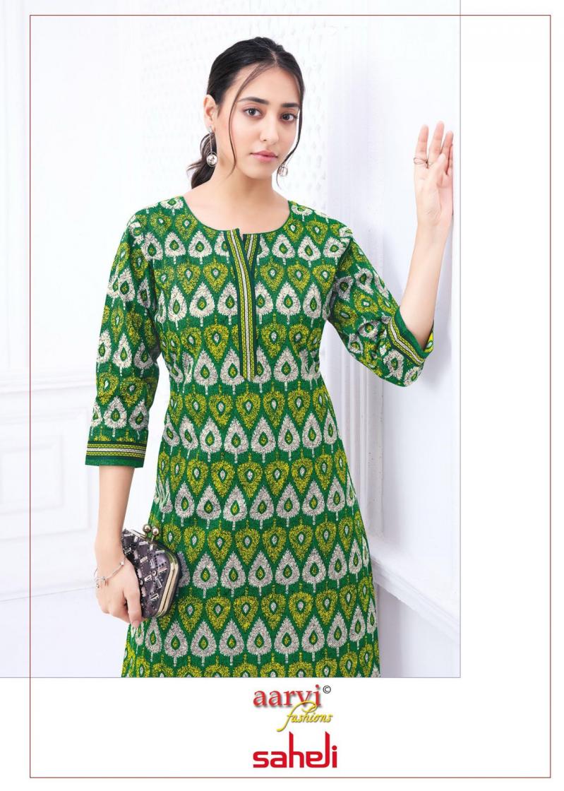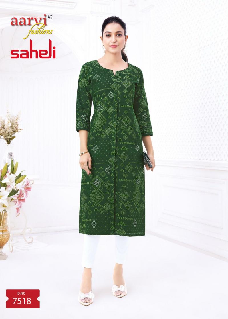 Looking for SAHELI VOL 17 BY AARVI FASHION AMAZING COTTON FULL STITCH KURTI Full Catalouge at Best Price? Buy Now SAHELI VOL 17 BY AARVI FASHION AMAZING COTTON FULL STITCH KURTI at Wholesale Rate of Rs 7560 with Total 24 Pcs from authroized dealer and supplier of Aarvi Fashions Brand. Cost of Each piece is just only Rs 315 which is very low and affordable price to resale the product in your retail store. rrgandhi is Surat based Wholesale Supplier & Dealer of Aarvi Fashions Brand. Click on Brand name to Know more about Brand's products.