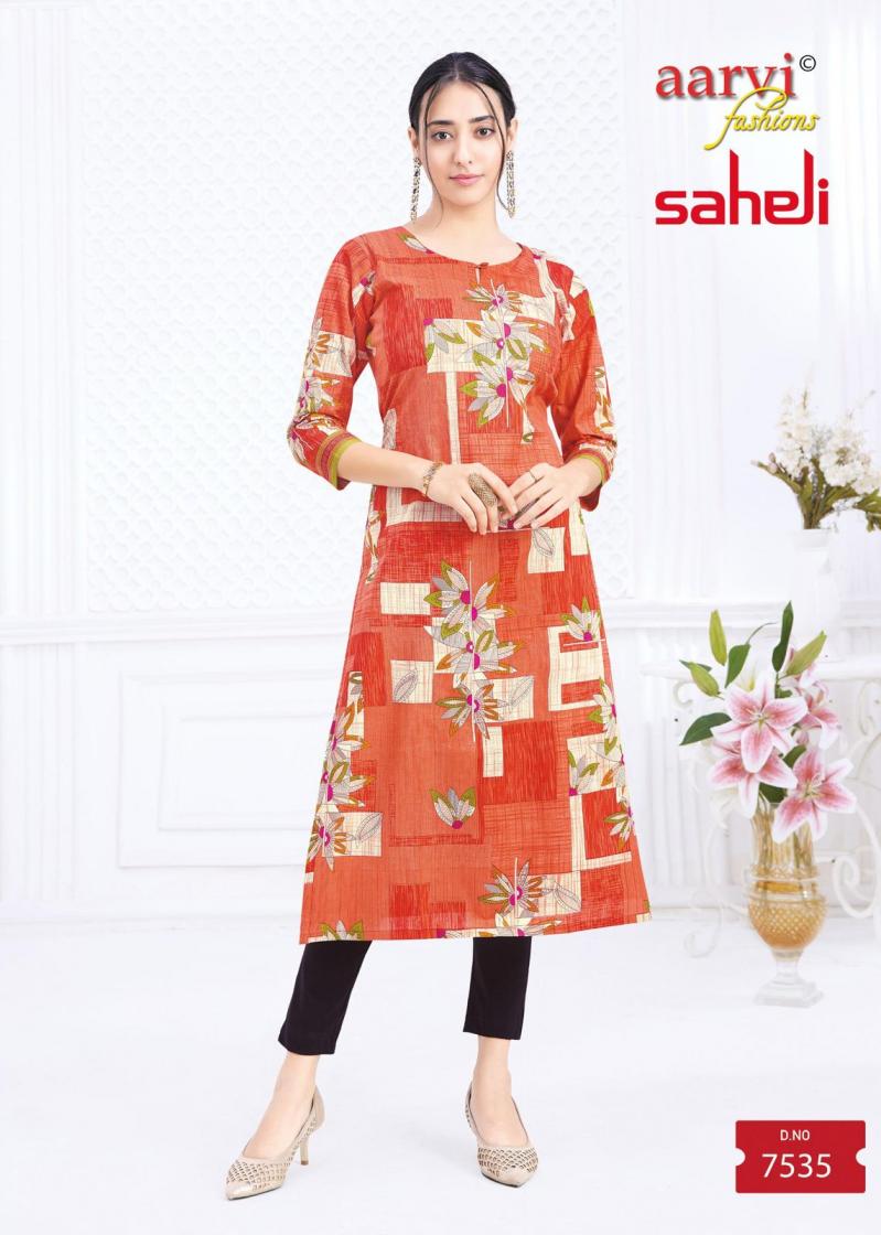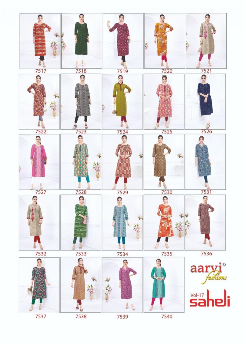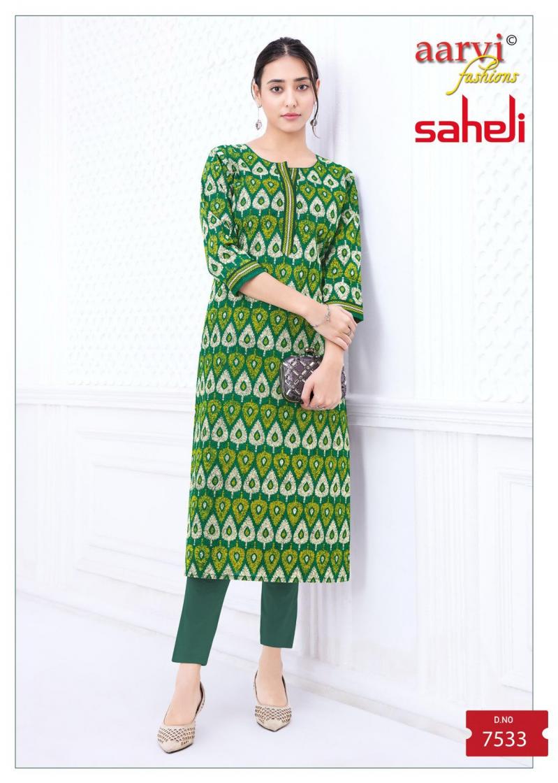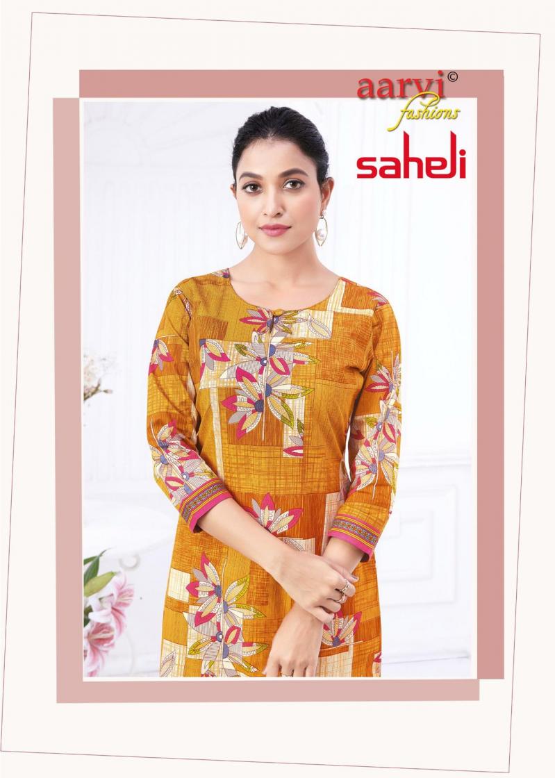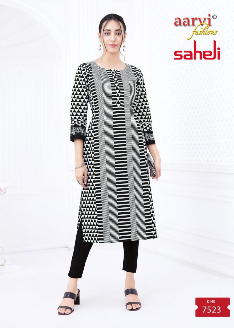 Looking for SAHELI VOL 17 BY AARVI FASHION AMAZING COTTON FULL STITCH KURTI Full Catalouge at Best Price? Buy Now SAHELI VOL 17 BY AARVI FASHION AMAZING COTTON FULL STITCH KURTI at Wholesale Rate of Rs 7560 with Total 24 Pcs from authroized dealer and supplier of Aarvi Fashions Brand. Cost of Each piece is just only Rs 315 which is very low and affordable price to resale the product in your retail store. rrgandhi is Surat based Wholesale Supplier & Dealer of Aarvi Fashions Brand. Click on Brand name to Know more about Brand's products.