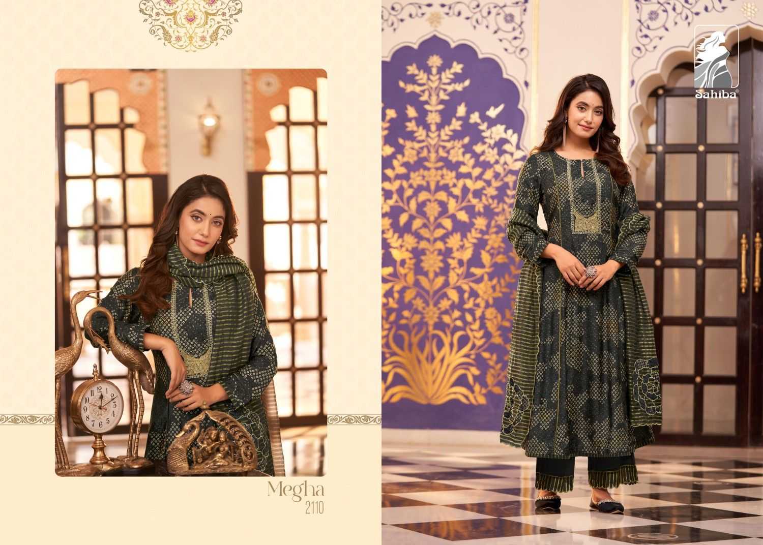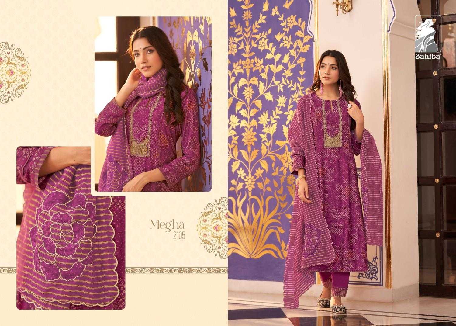 Looking for sahiba megha popular design muslin silk digital print hand work salwar suit Full Catalouge at Best Price? Buy Now sahiba megha popular design muslin silk digital print hand work salwar suit at Wholesale Rate of Rs 4790 with Total 2 Pcs from authroized dealer and supplier of Sahiba Brand. Cost of Each piece is just only Rs 2395 which is very low and affordable price to resale the product in your retail store. rrgandhi is Surat based Wholesale Supplier & Dealer of Sahiba Brand. Click on Brand name to Know more about Brand's products.