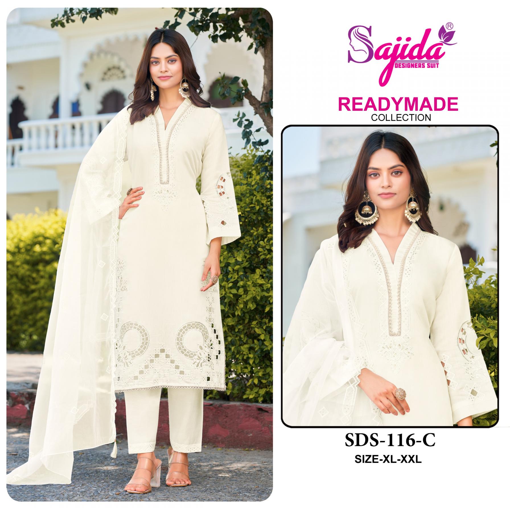 Looking for SAJIDA DESIGNER ALK 116 ROMAN SILK FULL STITCH PAKISTANI SUIT FOR WOMENS Full Catalouge at Best Price? Buy Now SAJIDA DESIGNER ALK 116 ROMAN SILK FULL STITCH PAKISTANI SUIT FOR WOMENS at Wholesale Rate of Rs 5596 with Total 4 Pcs from authroized dealer and supplier of Sajida designers Brand. Cost of Each piece is just only Rs 1399 which is very low and affordable price to resale the product in your retail store. rrgandhi is Surat based Wholesale Supplier & Dealer of Sajida designers Brand. Click on Brand name to Know more about Brand's products.