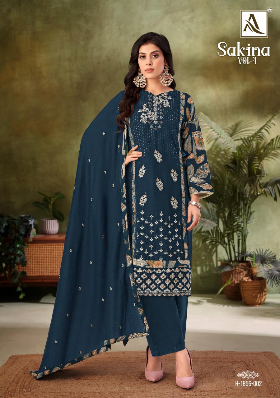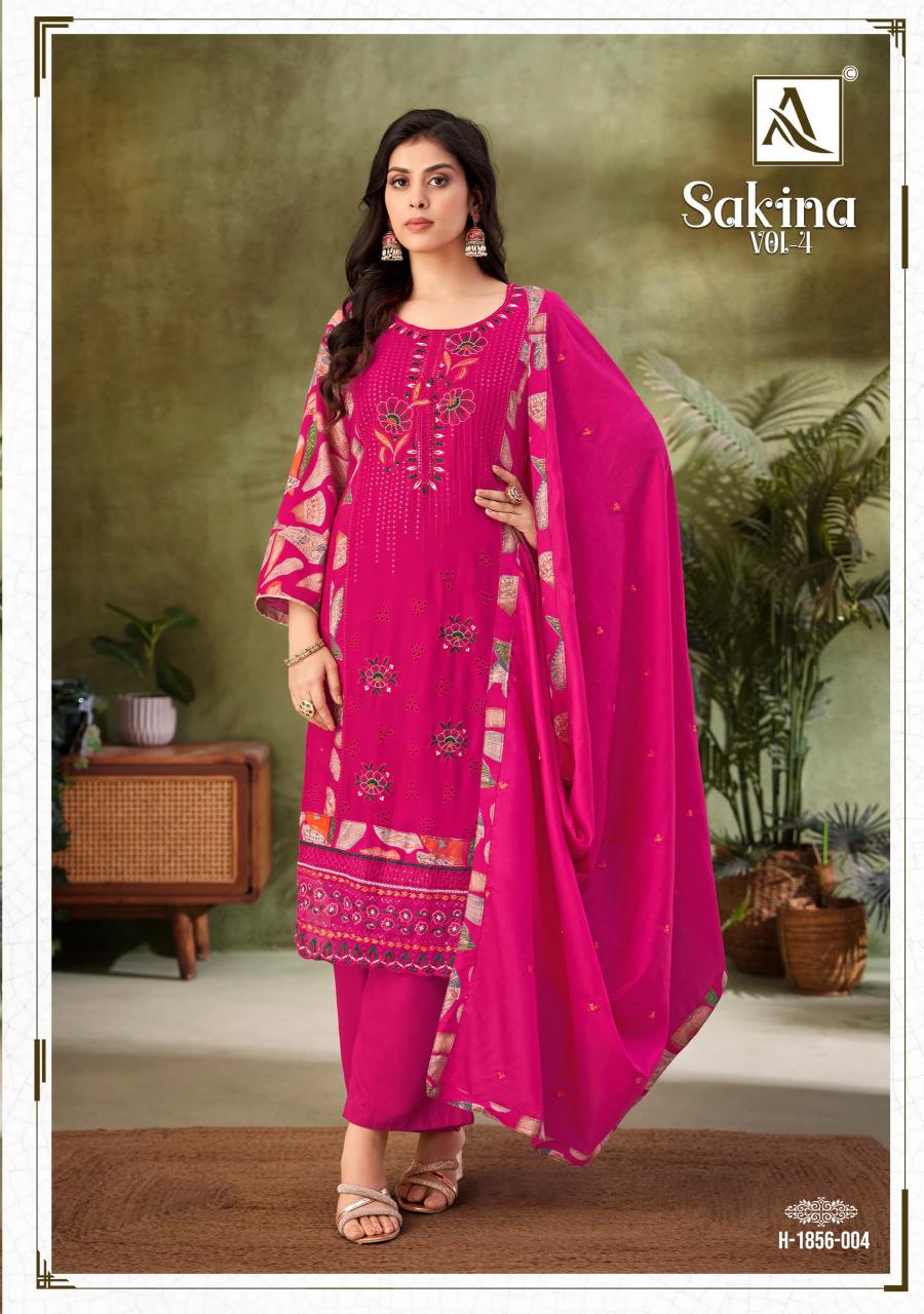 Looking for SAKINA VOL 4 BY ALOK SUMMER WEAR UNSTITCH DRESS MATERIALS Full Catalouge at Best Price? Buy Now SAKINA VOL 4 BY ALOK SUMMER WEAR UNSTITCH DRESS MATERIALS at Wholesale Rate of Rs 3840 with Total 4 Pcs from authroized dealer and supplier of Alok Suit Brand. Cost of Each piece is just only Rs 960 which is very low and affordable price to resale the product in your retail store. rrgandhi is Surat based Wholesale Supplier & Dealer of Alok Suit Brand. Click on Brand name to Know more about Brand's products.