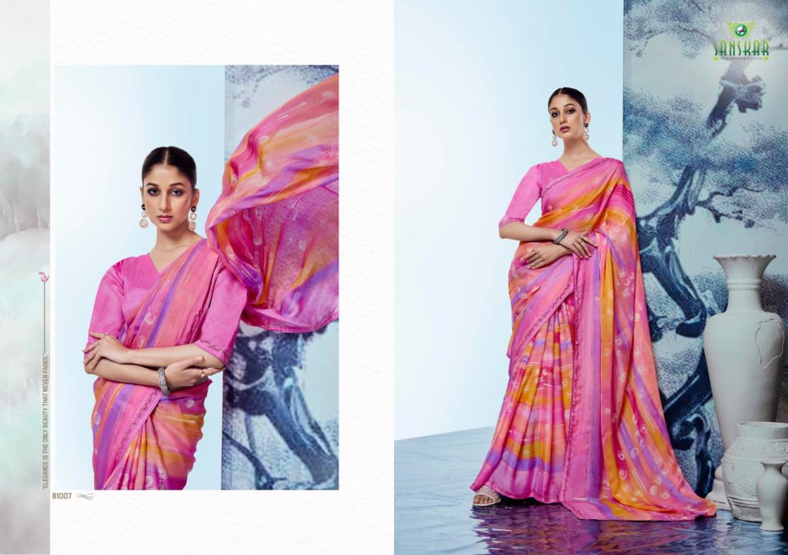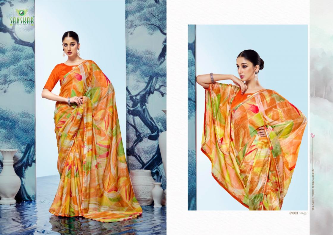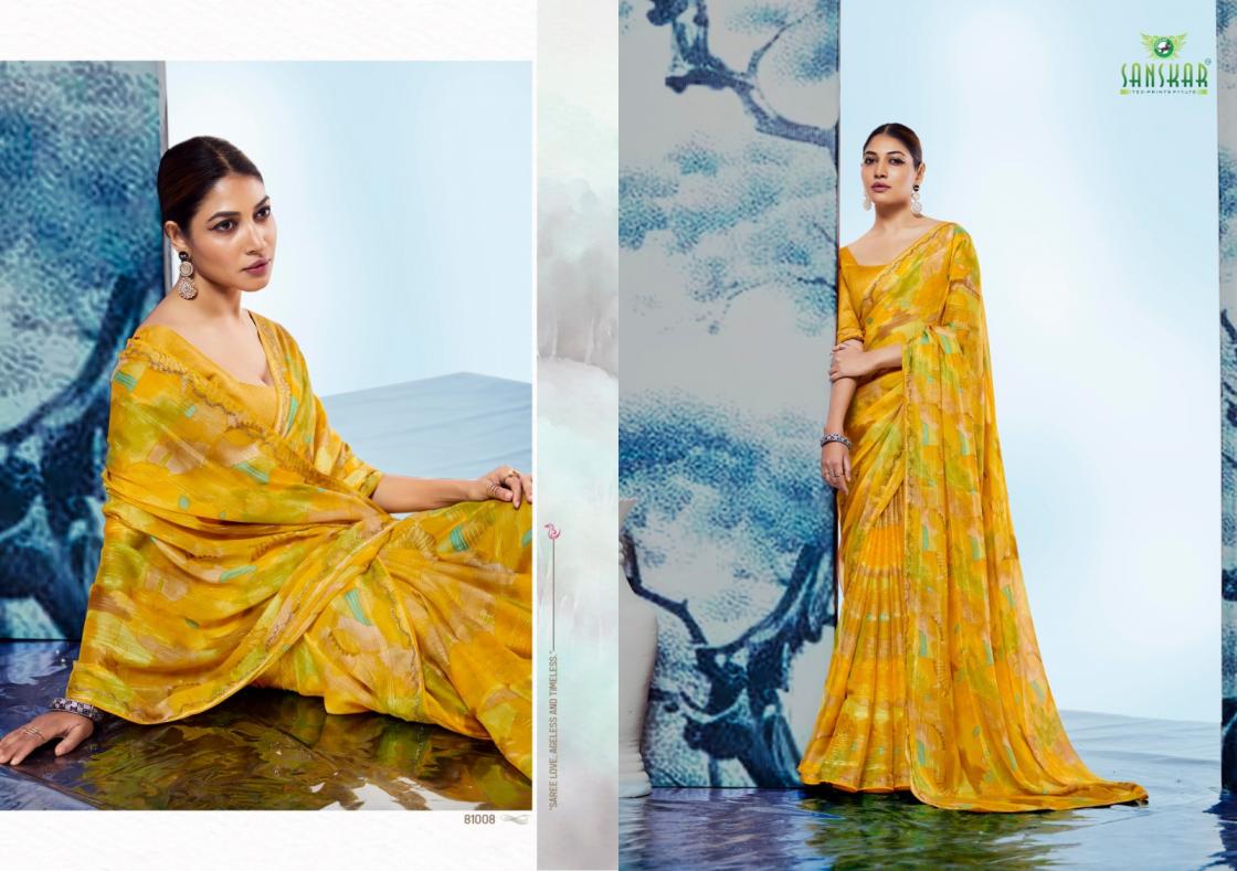 Looking for SALINI BY SANSKAR TEX PRINTS HIT DESIGN CHIFFON VISCOSE SAREES Full Catalouge at Best Price? Buy Now SALINI BY SANSKAR TEX PRINTS HIT DESIGN CHIFFON VISCOSE SAREES at Wholesale Rate of Rs 4760 with Total 8 Pcs from authroized dealer and supplier of Sanskar Tex Prints Brand. Cost of Each piece is just only Rs 595 which is very low and affordable price to resale the product in your retail store. rrgandhi is Surat based Wholesale Supplier & Dealer of Sanskar Tex Prints Brand. Click on Brand name to Know more about Brand's products.