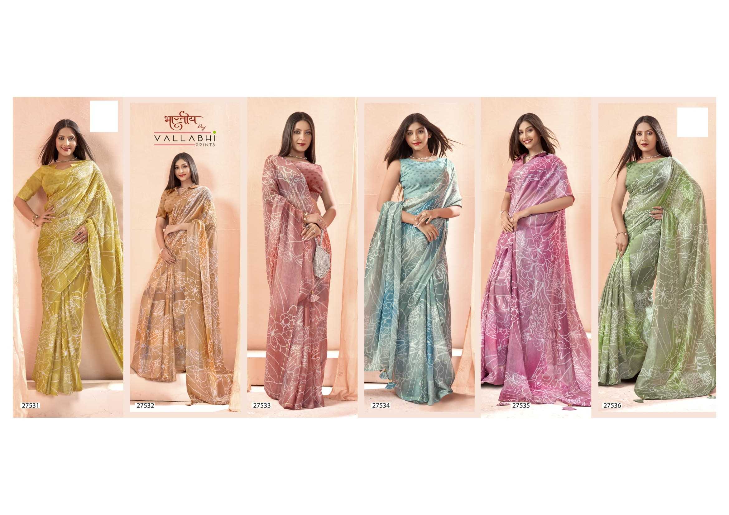Looking for sanchali by vallabhi prints georgette ethnic design saree exports Full Catalouge at Best Price? Buy Now sanchali by vallabhi prints georgette ethnic design saree exports at Wholesale Rate of Rs 3780 with Total 6 Pcs from authroized dealer and supplier of Vallabhi Prints Brand. Cost of Each piece is just only Rs 630 which is very low and affordable price to resale the product in your retail store. rrgandhi is Surat based Wholesale Supplier & Dealer of Vallabhi Prints Brand. Click on Brand name to Know more about Brand's products.